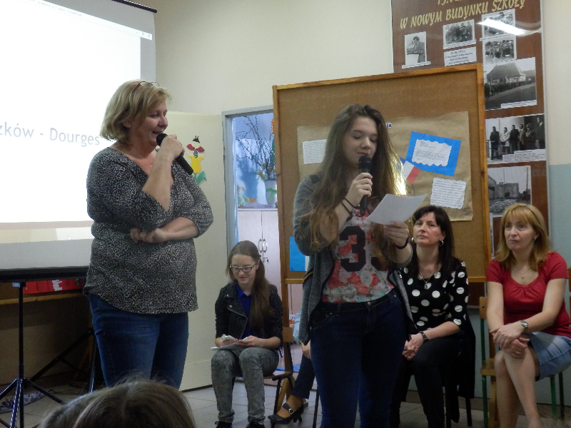 Następnie pani Iwona Bieniek omówiła prezentację multimedialną, dotyczącą współpracy naszej szkoły ze szkołą w Dourges. Poprzez ciekawe zestawienia Raszkowa i Dourges , prezentację regionu, tradycji i oświaty uczniowie pogłębili swoją wiedzę na temat Francji.