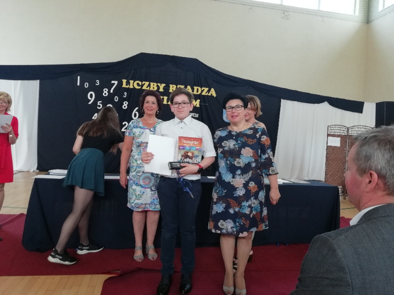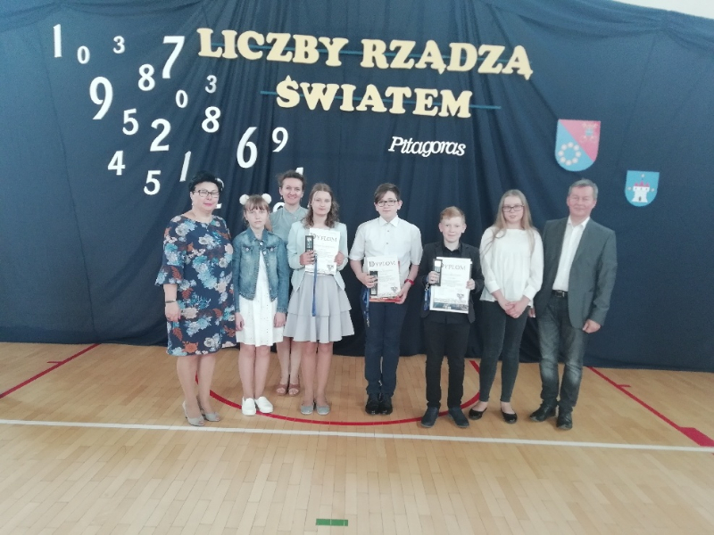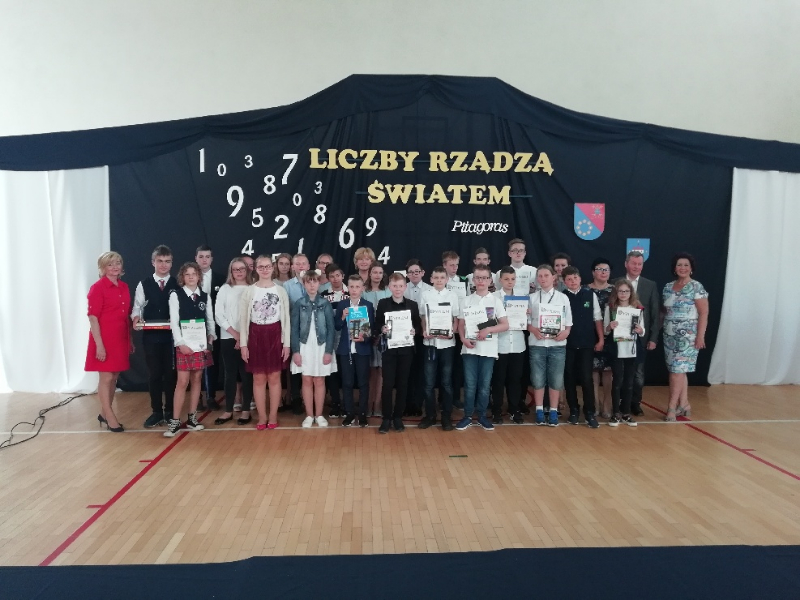 10 maja 2018 roku odbył się finał Powiatowego Konkursu Matematycznego dla uczniów szkół podstawowych w Zespole Szkół im. Orła Białego w Korytach .Mottem tegorocznego konkursu były słowa Pitagorasa „Liczby rządzą światem”. Był to drugi etap konkursu, w którym wzięło udział 23 uczniów z powiatu ostrowskiego. Uczniowie rozwiązywali test zawierający 15 zadań, w tym 10 zadań zamkniętych i 5 zadań otwartych. Z naszej szkoły do II etapu Powiatowego Konkursu Matematycznego zakwalifikowało się aż 3 uczniów i tak: z klasy VI a – Paweł Obsadny i Wiktoria Denkiewicz oraz z klasy VI b – Michał Szczęsny .Cała trójka napisała bardzo dobrze test konkursowy, jednak najlepiej Paweł otrzymując 21 punktów na 25 możliwych i zdobył 4 miejsce(do zdobycia tytułu mistrza zabrakło 2 punktów), Wiktoria otrzymała 17 punktów zdobywając 11 miejsce i Michał otrzymał 16 punktów zdobywając 12 miejsce w finale XI Powiatowego Konkursu Matematycznego dla uczniów szkół podstawowych.