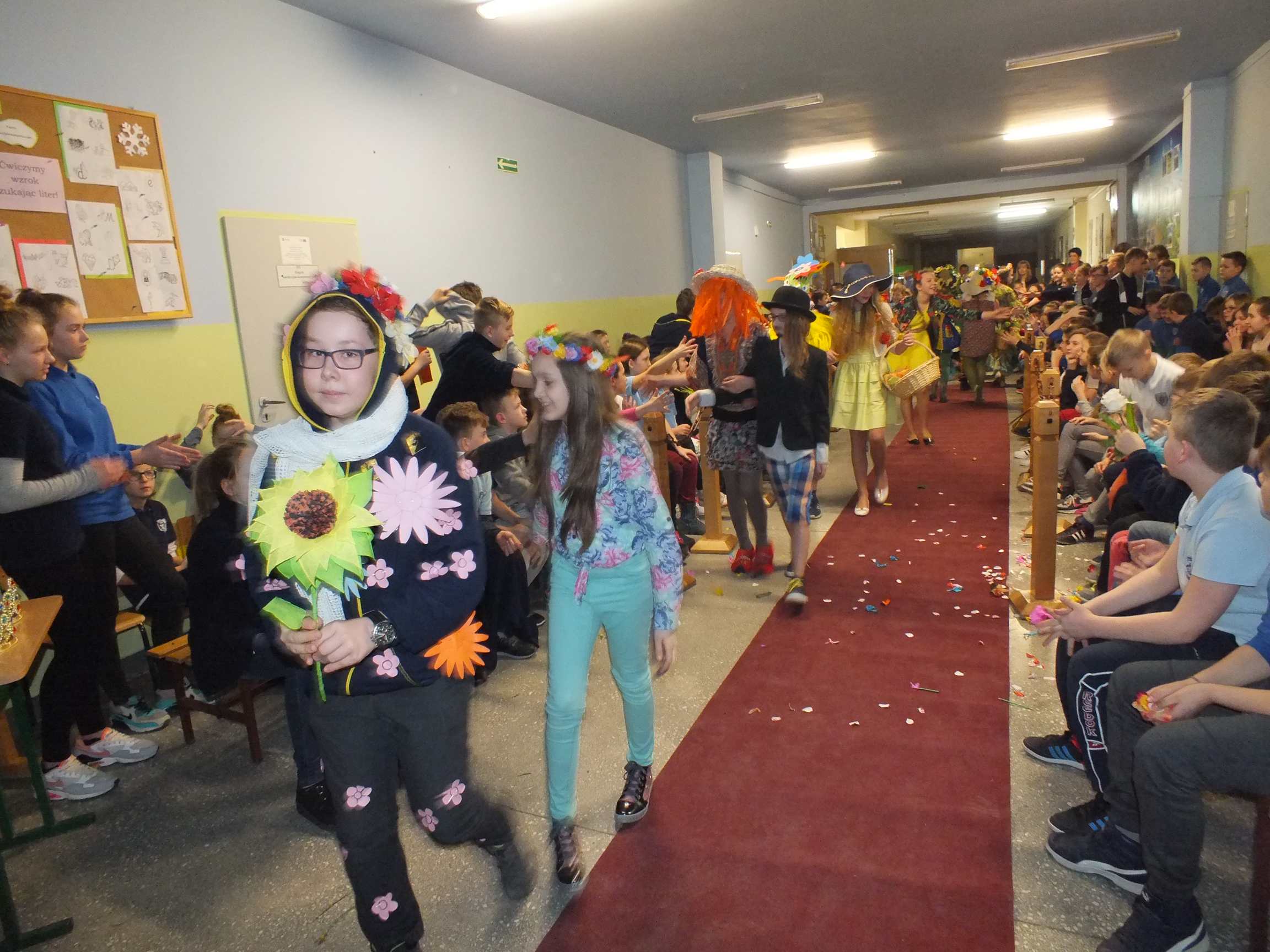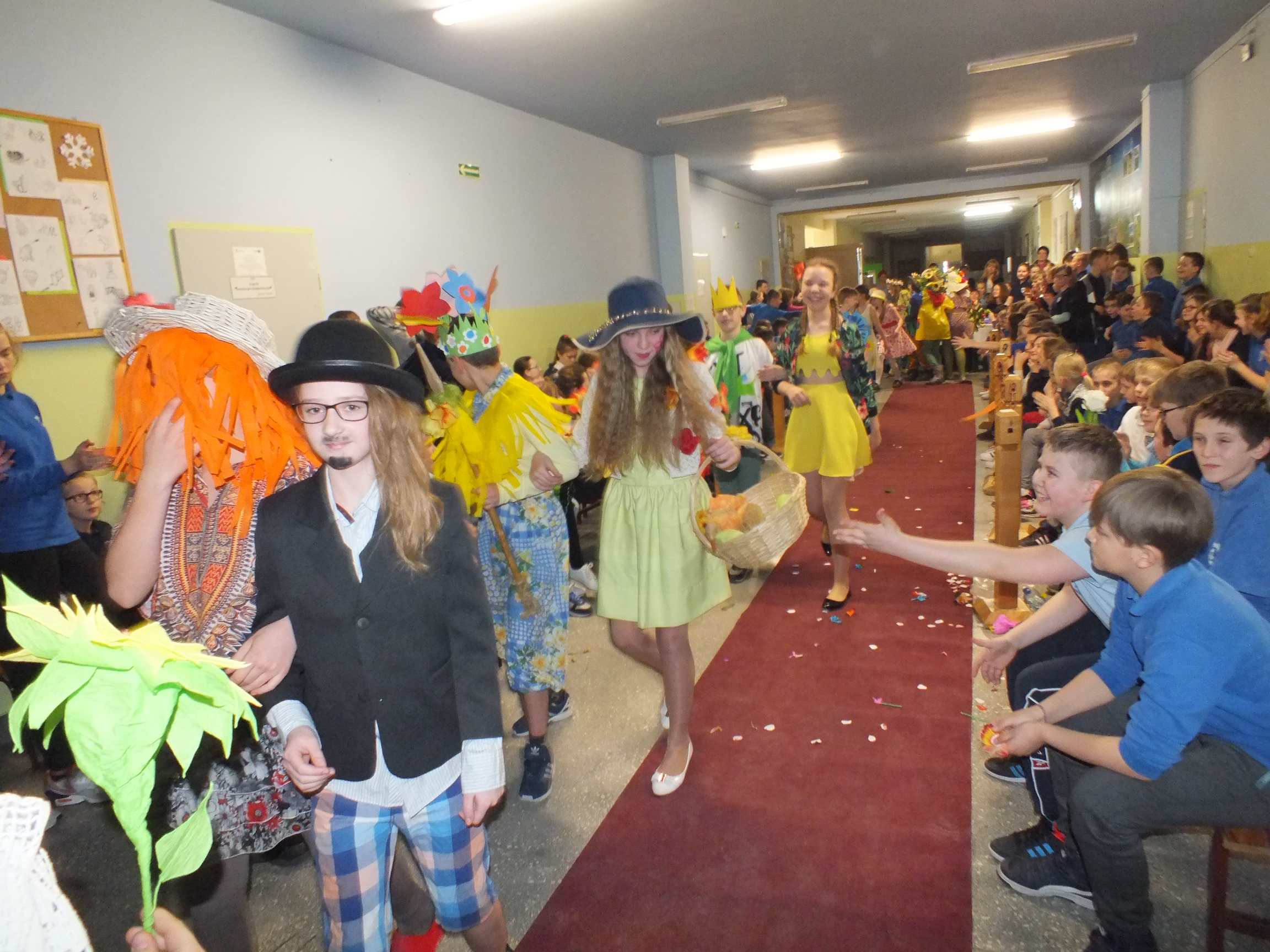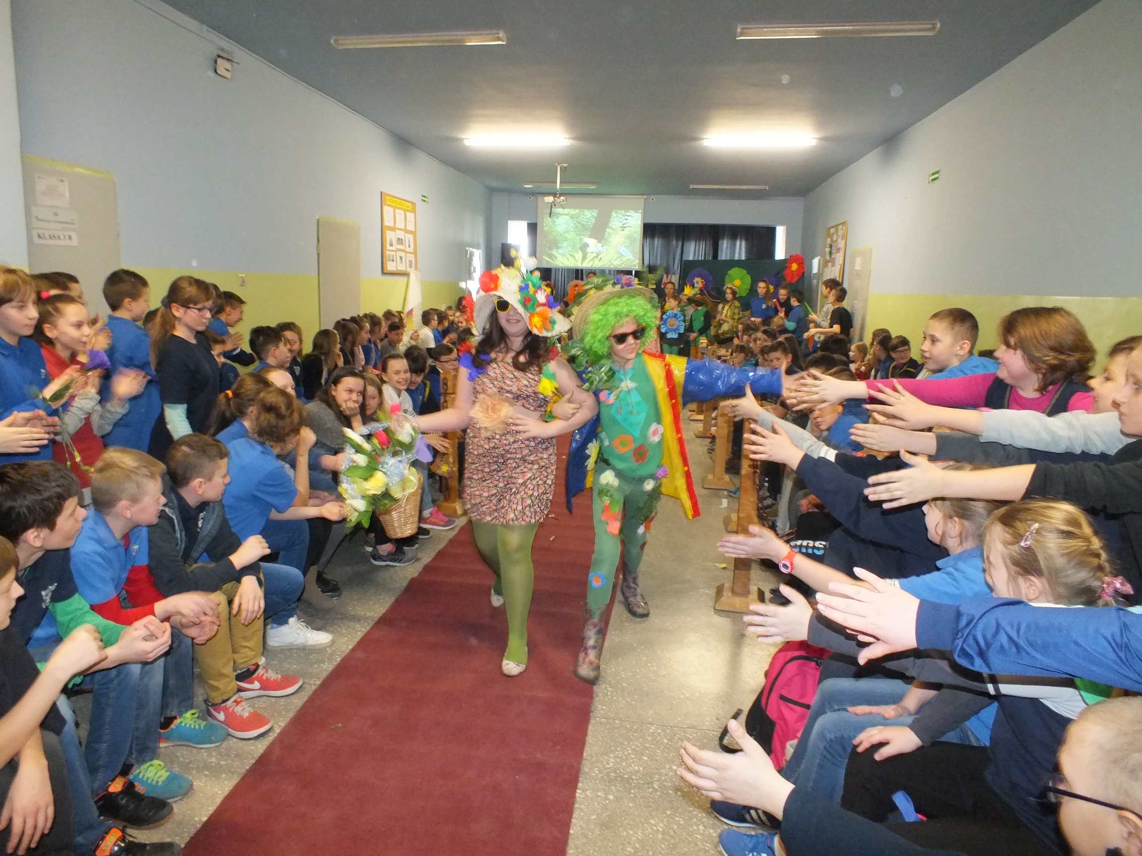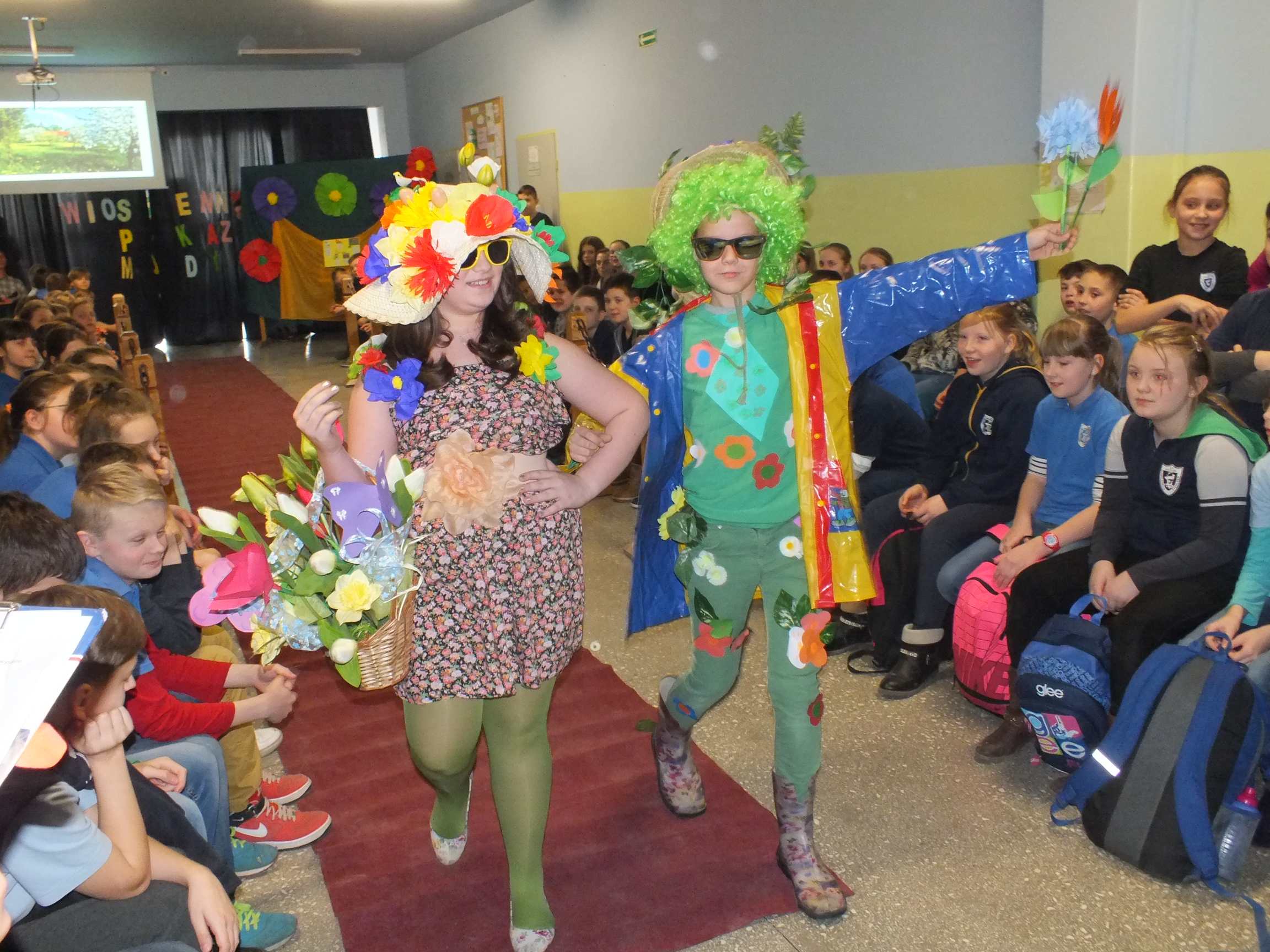 Po długiej i mroźnej zimie zawsze przychodzi wiosna. Bowiem wiosna, to dla uczniów najpiękniejszy okres w roku. Kojarzy się z przylotem bocianów, śpiewem ptaków, kwitnieniem bazi i pojawieniem się przebiśniegów oraz krokusów. Pierwszym kalendarzowym dniem wiosny jest 21 marca i z tej okazji już po raz drugi Samorząd Uczniowski wraz z opiekunem panem Karolem Marciszewskim zorganizował show dla społeczności szkolnej. Klasy miały za zadanie wybrać parę i przygotować strój wiosenny. Ubiór miał ukazywać wiosnę w całej jej okazałości. Pokaz mody zachwycił wszystkich. Stroje były pomysłowe, wesołe, wyszukane, oryginale, i co najważniejsze, wykonane samodzielnie przez uczniów. Prócz strojów pary musiał umieć zaprezentować się, odpowiednia gestykulacja i wydźwięk podnosiły ocenę. Na końcu wybiegu każdej z par zadawano serię pytań o wiośnie a odpowiedzi były zliczane do klasyfikacji łącznej. Za występy uczestnicy otrzymali gromkie brawa od publiczności. Pierwsze miejsce zdobyła klasa 6B.