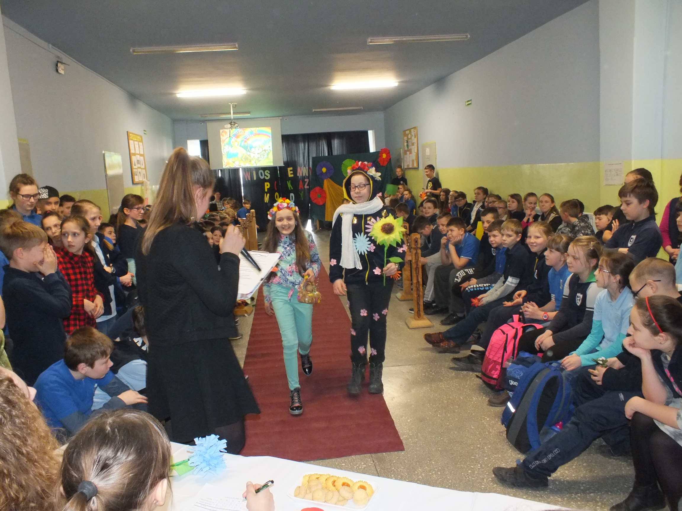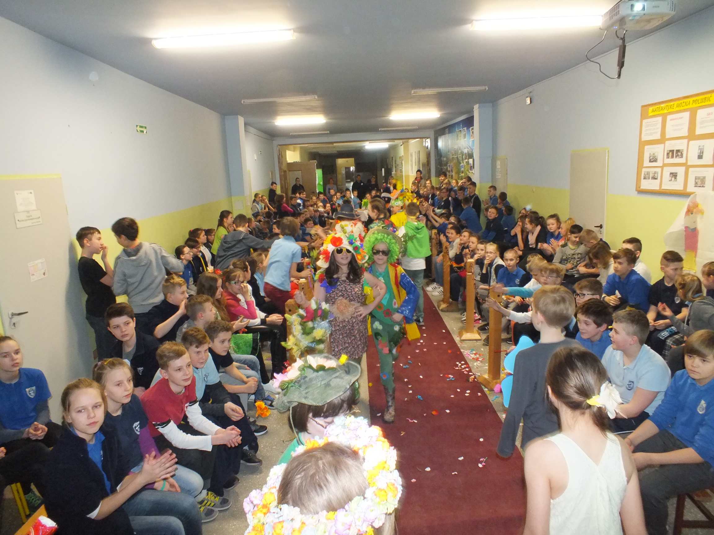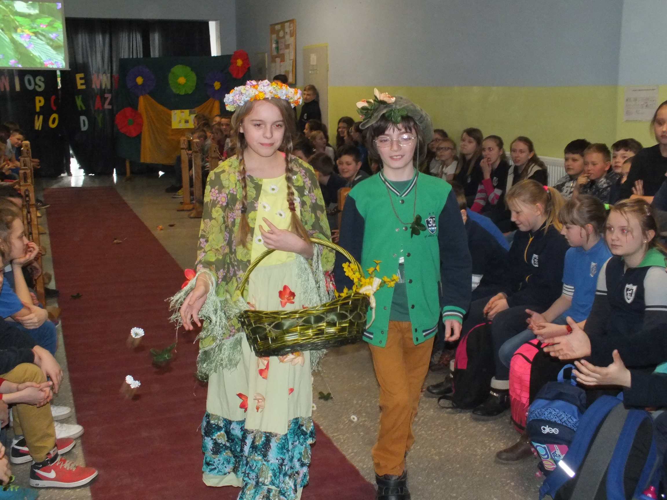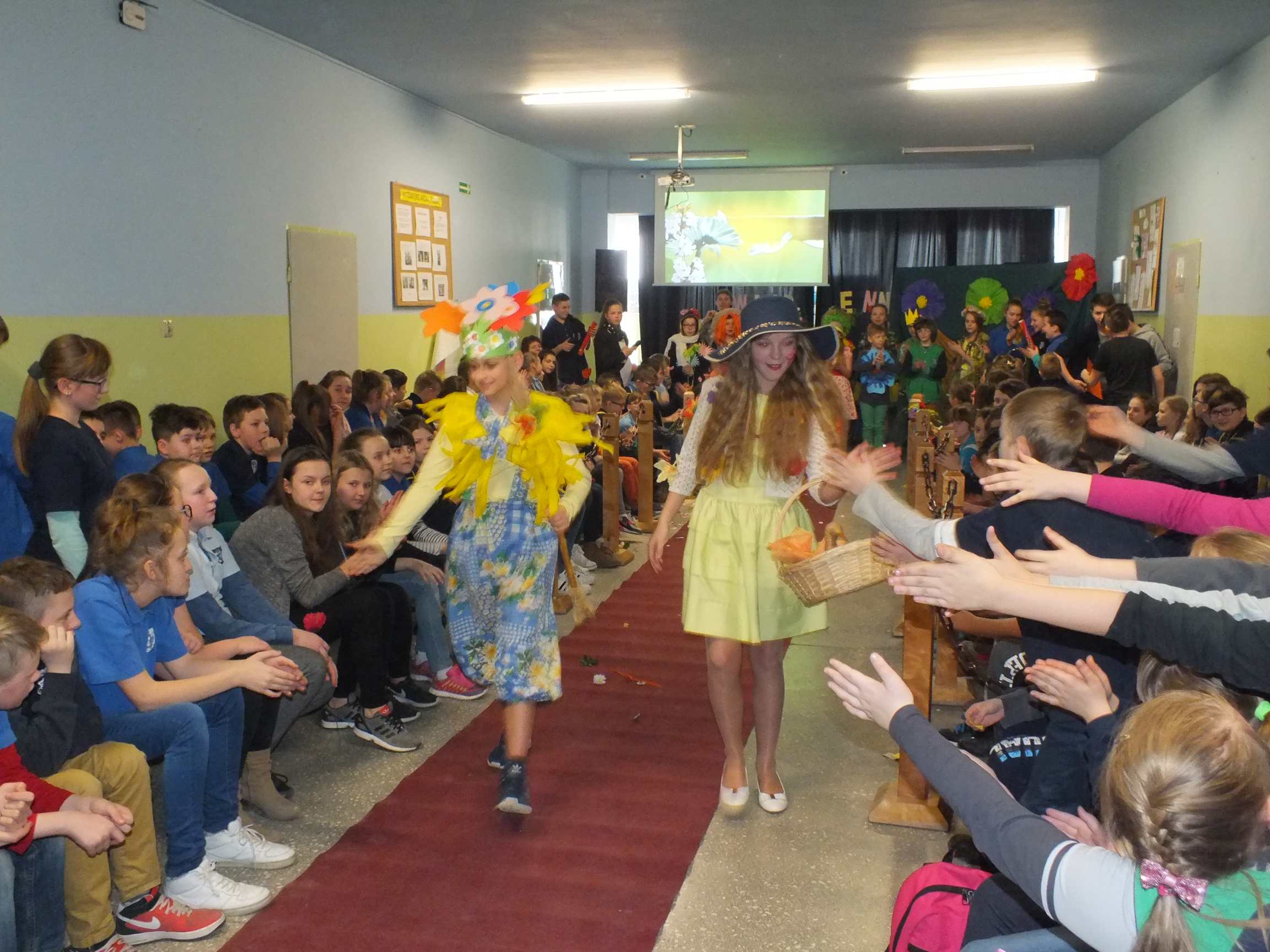 Po długiej i mroźnej zimie zawsze przychodzi wiosna. Bowiem wiosna, to dla uczniów najpiękniejszy okres w roku. Kojarzy się z przylotem bocianów, śpiewem ptaków, kwitnieniem bazi i pojawieniem się przebiśniegów oraz krokusów. Pierwszym kalendarzowym dniem wiosny jest 21 marca i z tej okazji już po raz drugi Samorząd Uczniowski wraz z opiekunem panem Karolem Marciszewskim zorganizował show dla społeczności szkolnej. Klasy miały za zadanie wybrać parę i przygotować strój wiosenny. Ubiór miał ukazywać wiosnę w całej jej okazałości. Pokaz mody zachwycił wszystkich. Stroje były pomysłowe, wesołe, wyszukane, oryginale, i co najważniejsze, wykonane samodzielnie przez uczniów. Prócz strojów pary musiał umieć zaprezentować się, odpowiednia gestykulacja i wydźwięk podnosiły ocenę. Na końcu wybiegu każdej z par zadawano serię pytań o wiośnie a odpowiedzi były zliczane do klasyfikacji łącznej. Za występy uczestnicy otrzymali gromkie brawa od publiczności. Pierwsze miejsce zdobyła klasa 6B.