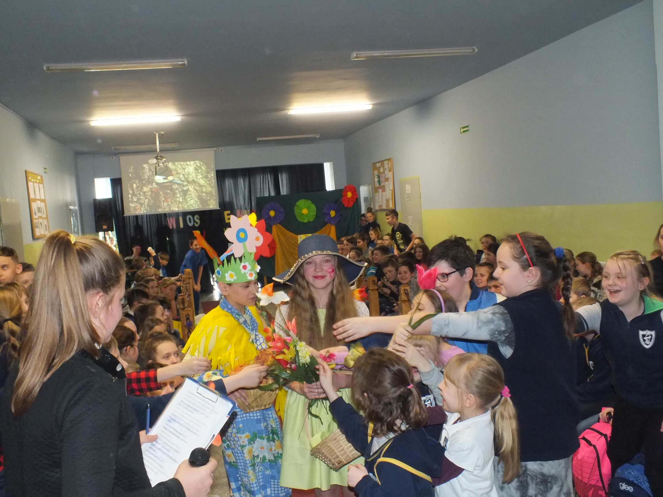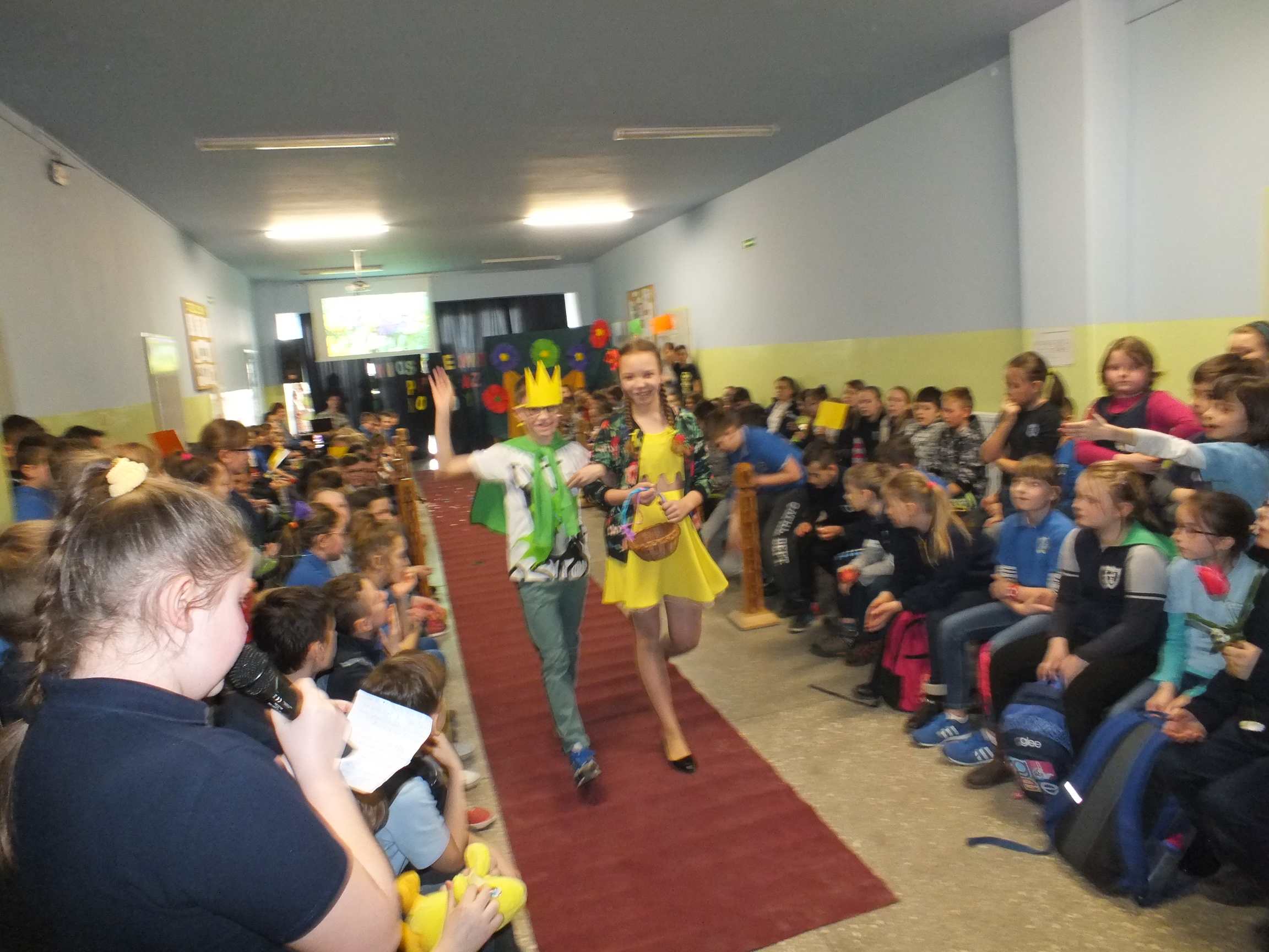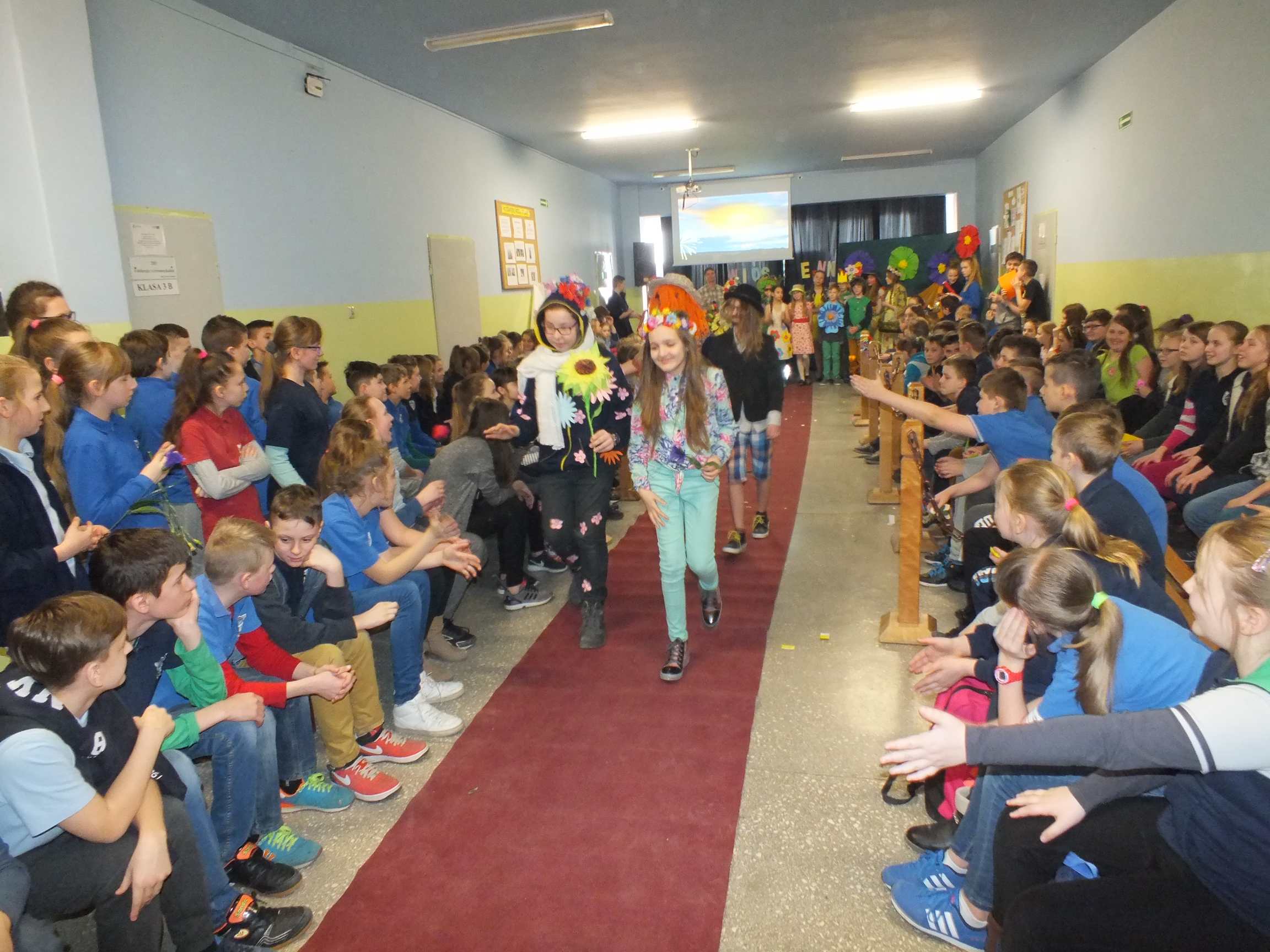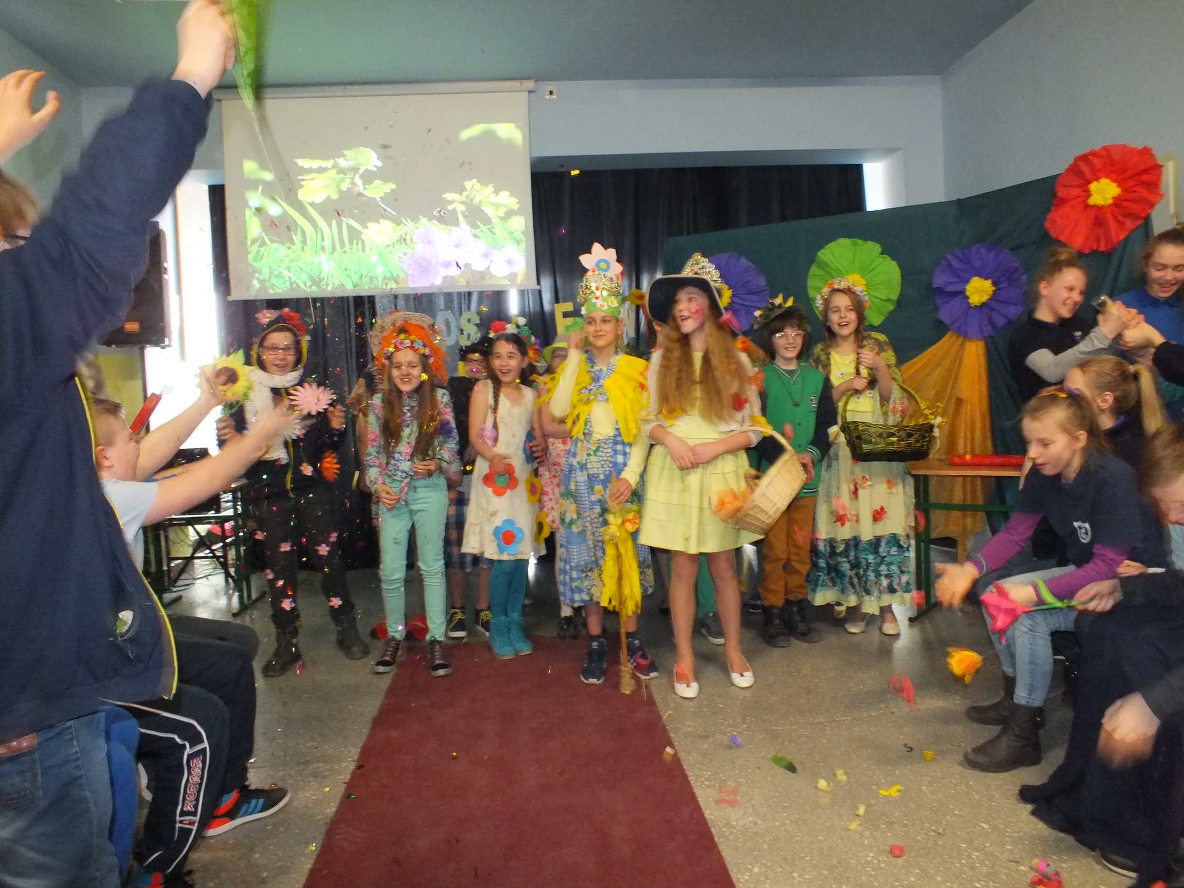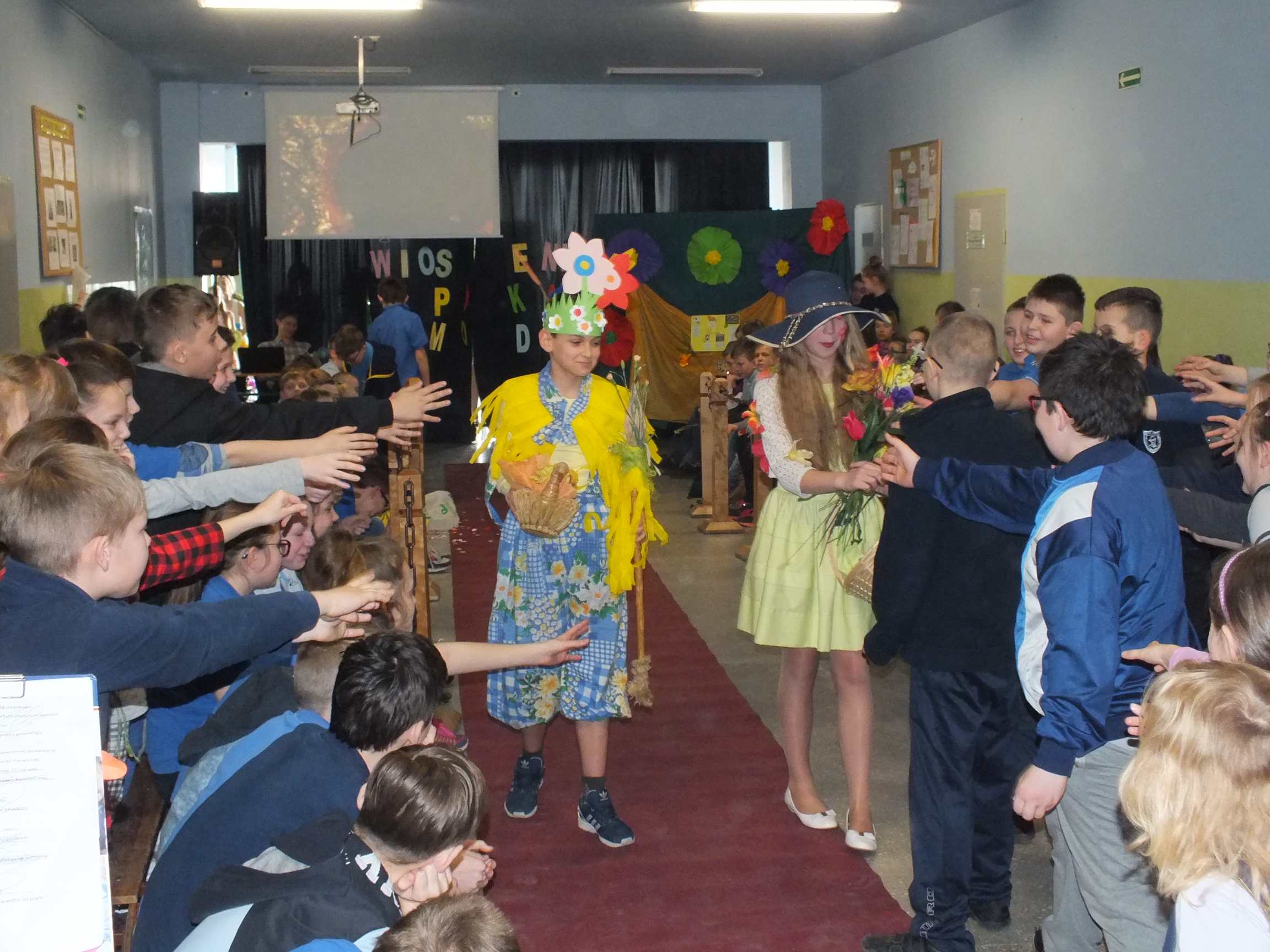 Po długiej i mroźnej zimie zawsze przychodzi wiosna. Bowiem wiosna, to dla uczniów najpiękniejszy okres w roku. Kojarzy się z przylotem bocianów, śpiewem ptaków, kwitnieniem bazi i pojawieniem się przebiśniegów oraz krokusów. Pierwszym kalendarzowym dniem wiosny jest 21 marca i z tej okazji już po raz drugi Samorząd Uczniowski wraz z opiekunem panem Karolem Marciszewskim zorganizował show dla społeczności szkolnej. Klasy miały za zadanie wybrać parę i przygotować strój wiosenny. Ubiór miał ukazywać wiosnę w całej jej okazałości. Pokaz mody zachwycił wszystkich. Stroje były pomysłowe, wesołe, wyszukane, oryginale, i co najważniejsze, wykonane samodzielnie przez uczniów. Prócz strojów pary musiał umieć zaprezentować się, odpowiednia gestykulacja i wydźwięk podnosiły ocenę. Na końcu wybiegu każdej z par zadawano serię pytań o wiośnie a odpowiedzi były zliczane do klasyfikacji łącznej. Za występy uczestnicy otrzymali gromkie brawa od publiczności. Pierwsze miejsce zdobyła klasa 6B.