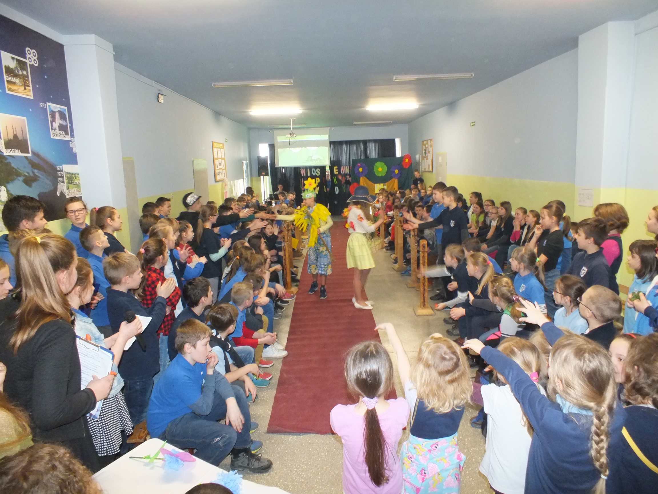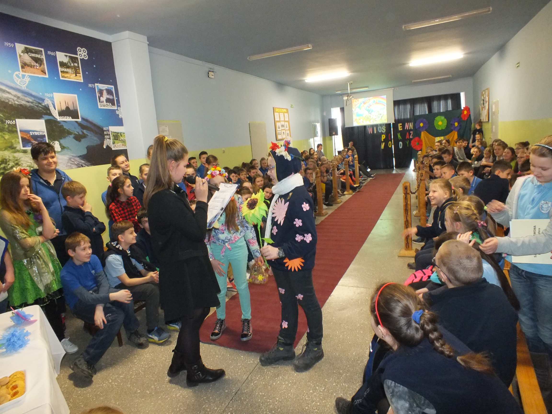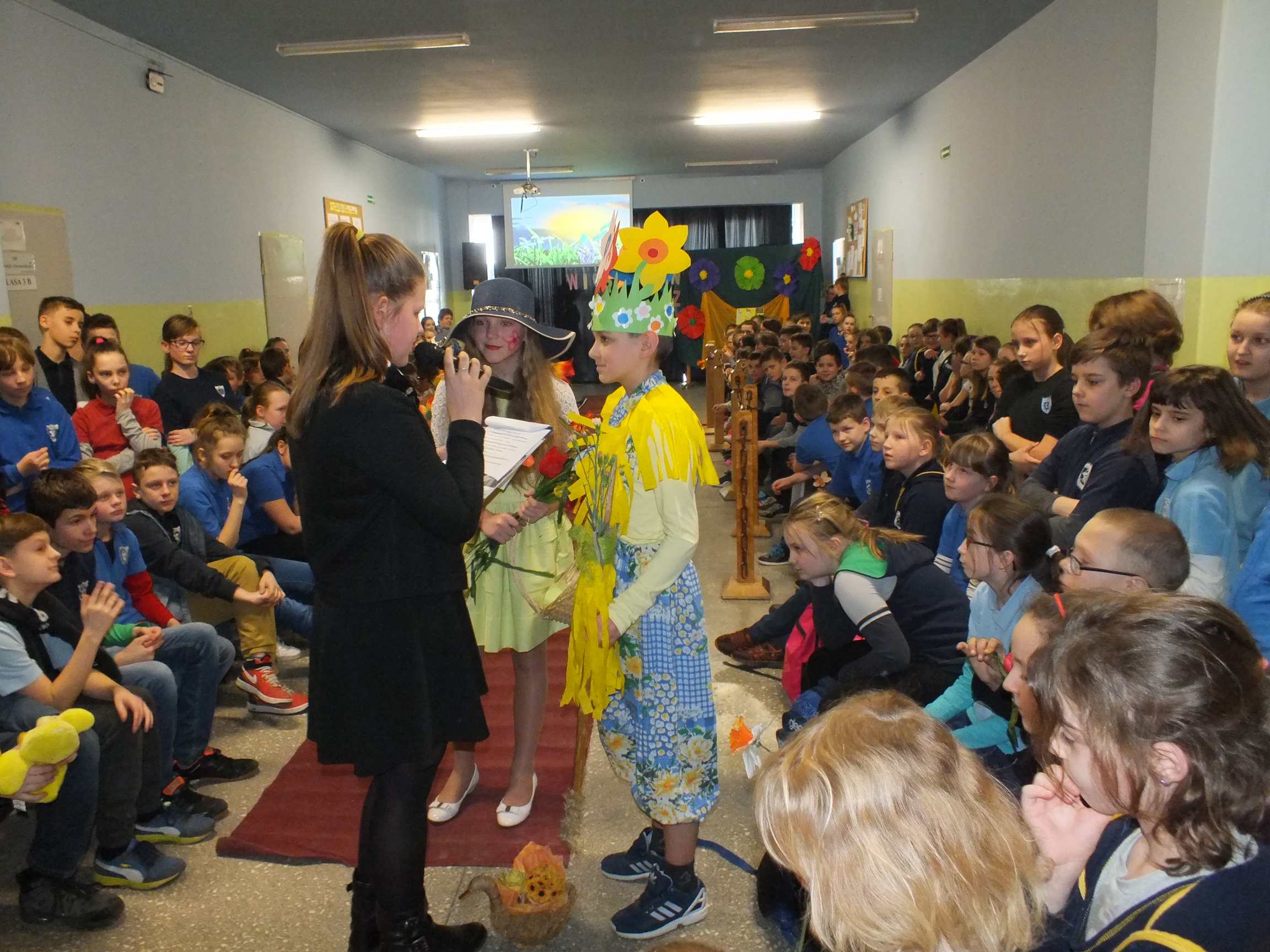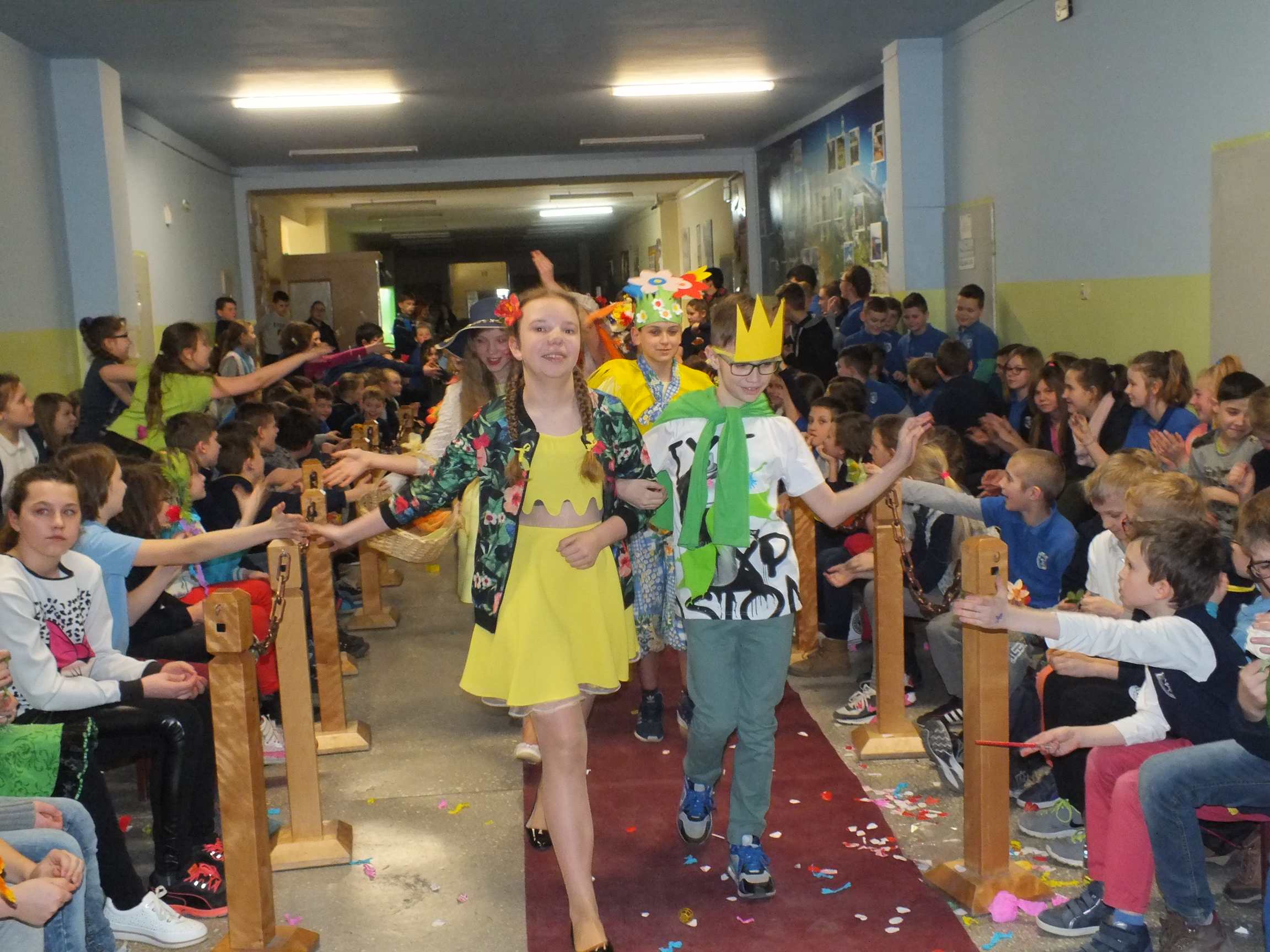 Po długiej i mroźnej zimie zawsze przychodzi wiosna. Bowiem wiosna, to dla uczniów najpiękniejszy okres w roku. Kojarzy się z przylotem bocianów, śpiewem ptaków, kwitnieniem bazi i pojawieniem się przebiśniegów oraz krokusów. Pierwszym kalendarzowym dniem wiosny jest 21 marca i z tej okazji już po raz drugi Samorząd Uczniowski wraz z opiekunem panem Karolem Marciszewskim zorganizował show dla społeczności szkolnej. Klasy miały za zadanie wybrać parę i przygotować strój wiosenny. Ubiór miał ukazywać wiosnę w całej jej okazałości. Pokaz mody zachwycił wszystkich. Stroje były pomysłowe, wesołe, wyszukane, oryginale, i co najważniejsze, wykonane samodzielnie przez uczniów. Prócz strojów pary musiał umieć zaprezentować się, odpowiednia gestykulacja i wydźwięk podnosiły ocenę. Na końcu wybiegu każdej z par zadawano serię pytań o wiośnie a odpowiedzi były zliczane do klasyfikacji łącznej. Za występy uczestnicy otrzymali gromkie brawa od publiczności. Pierwsze miejsce zdobyła klasa 6B.