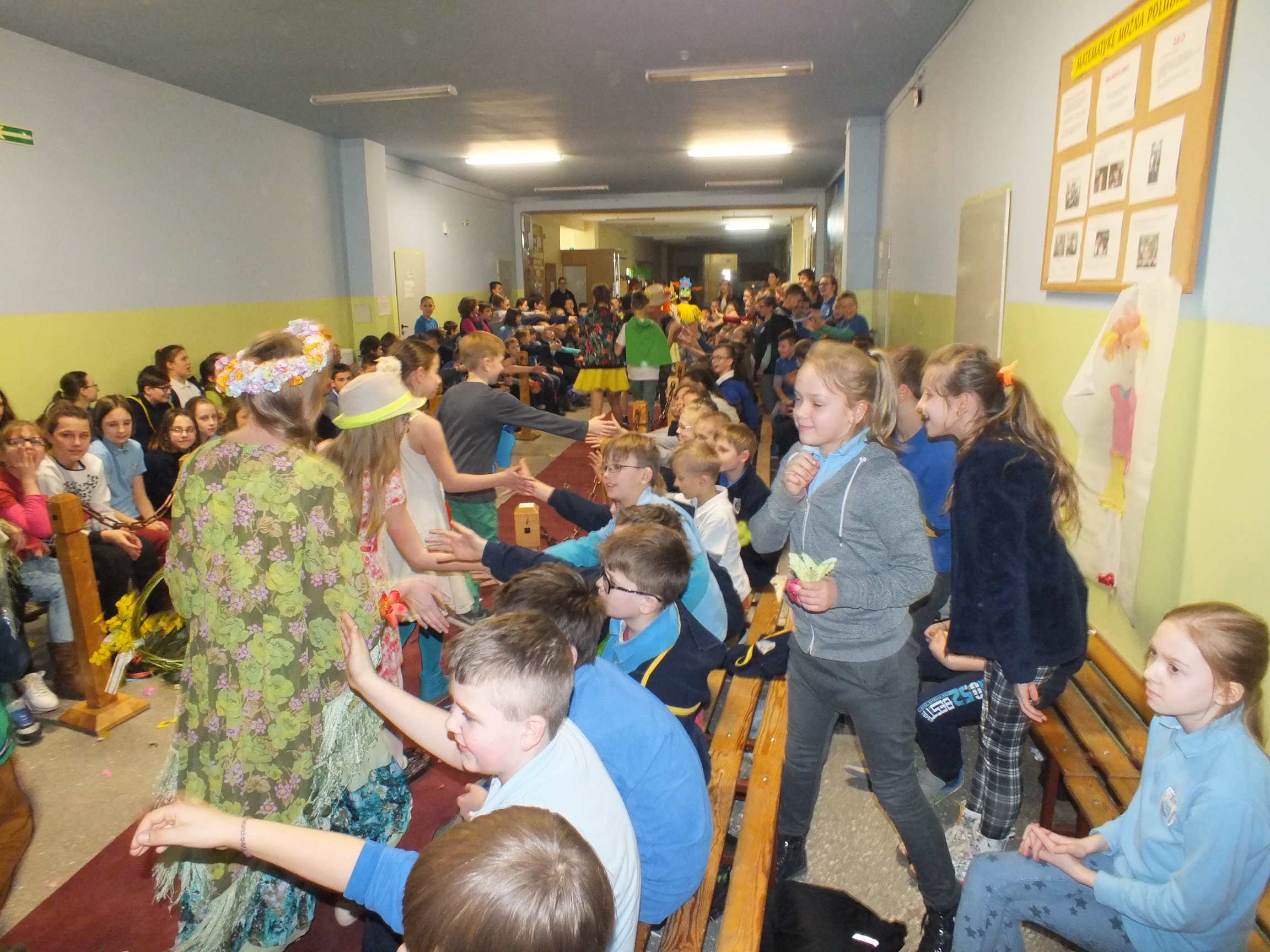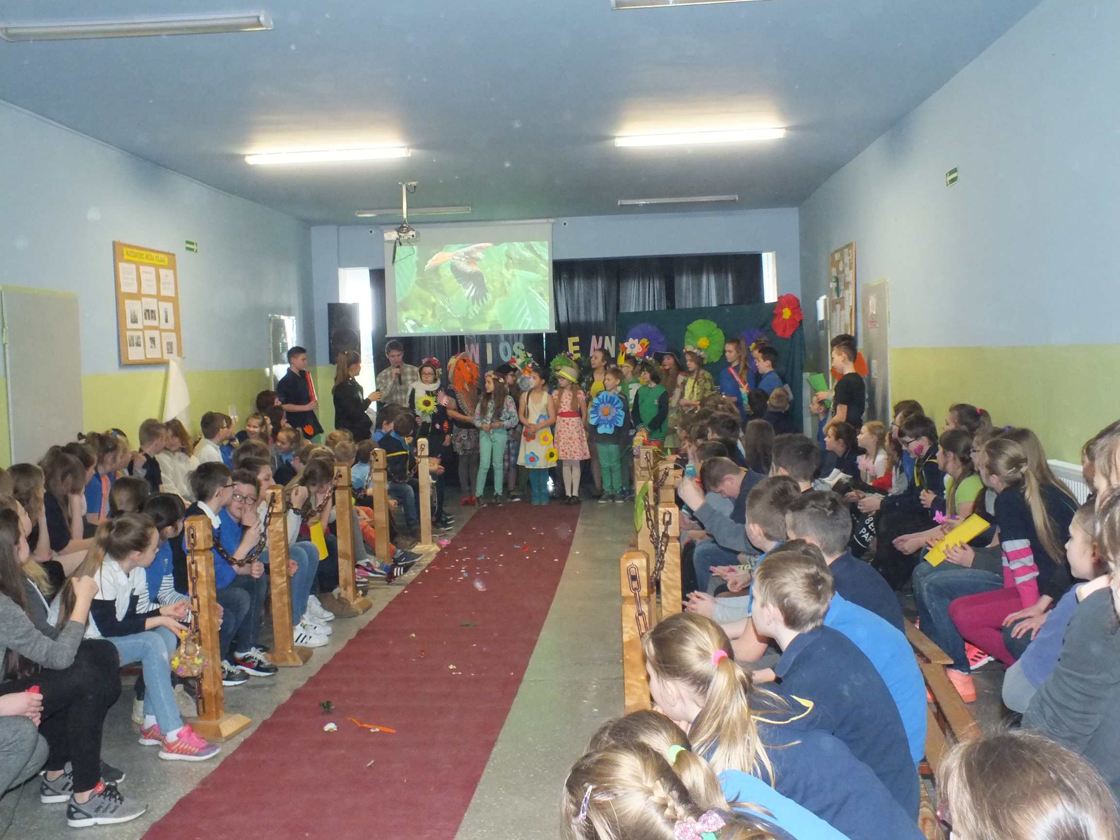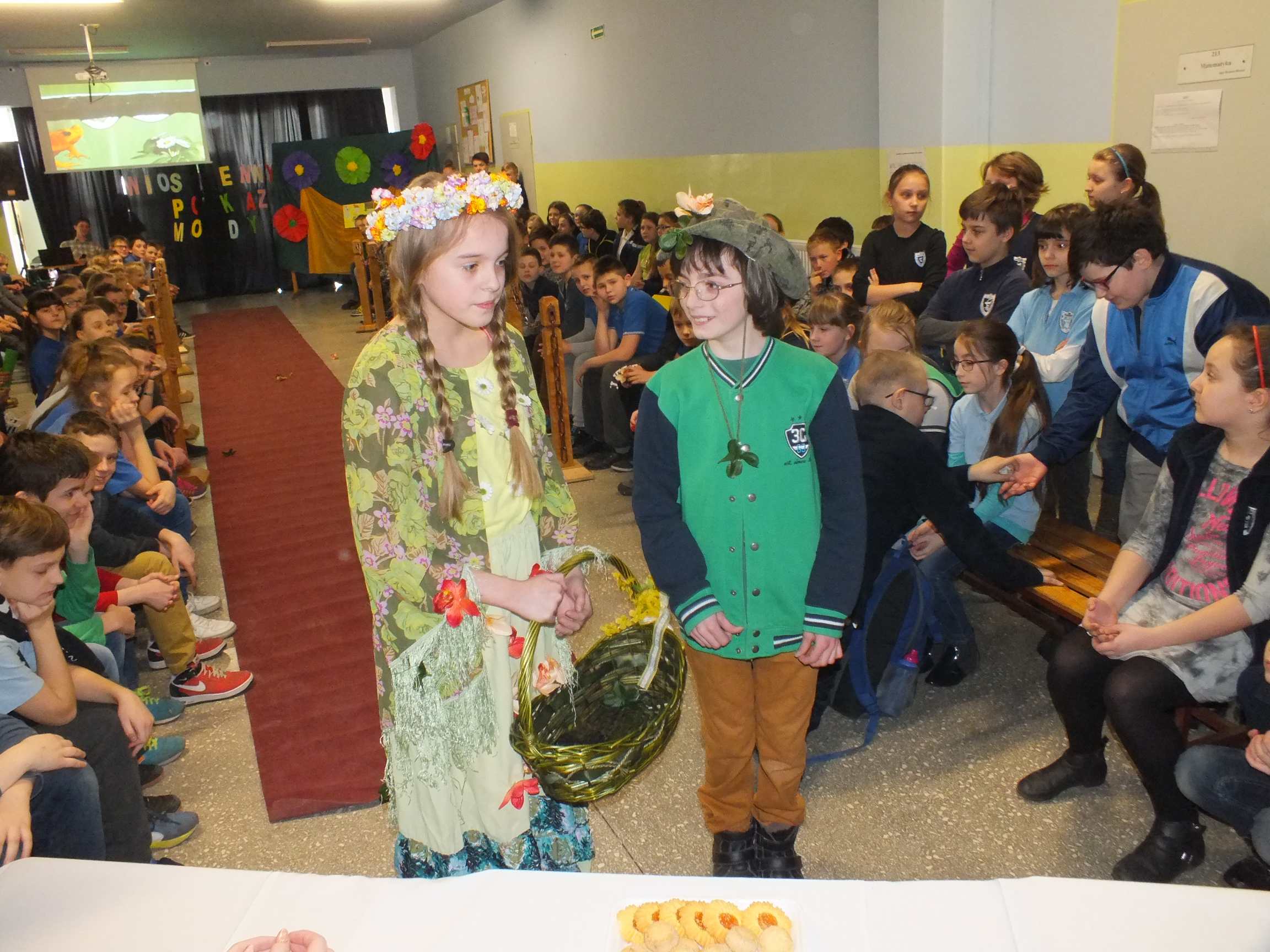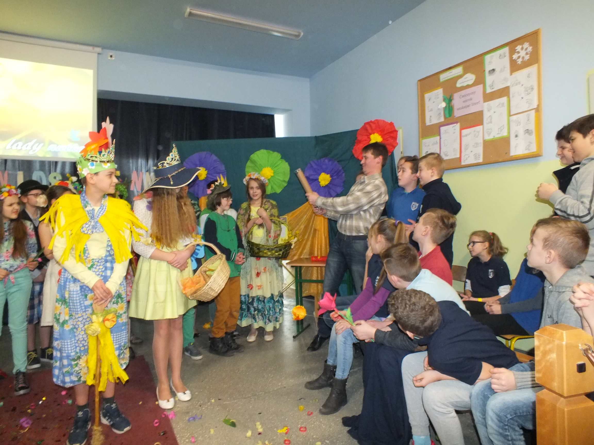 Po długiej i mroźnej zimie zawsze przychodzi wiosna. Bowiem wiosna, to dla uczniów najpiękniejszy okres w roku. Kojarzy się z przylotem bocianów, śpiewem ptaków, kwitnieniem bazi i pojawieniem się przebiśniegów oraz krokusów. Pierwszym kalendarzowym dniem wiosny jest 21 marca i z tej okazji już po raz drugi Samorząd Uczniowski wraz z opiekunem panem Karolem Marciszewskim zorganizował show dla społeczności szkolnej. Klasy miały za zadanie wybrać parę i przygotować strój wiosenny. Ubiór miał ukazywać wiosnę w całej jej okazałości. Pokaz mody zachwycił wszystkich. Stroje były pomysłowe, wesołe, wyszukane, oryginale, i co najważniejsze, wykonane samodzielnie przez uczniów. Prócz strojów pary musiał umieć zaprezentować się, odpowiednia gestykulacja i wydźwięk podnosiły ocenę. Na końcu wybiegu każdej z par zadawano serię pytań o wiośnie a odpowiedzi były zliczane do klasyfikacji łącznej. Za występy uczestnicy otrzymali gromkie brawa od publiczności. Pierwsze miejsce zdobyła klasa 6B.