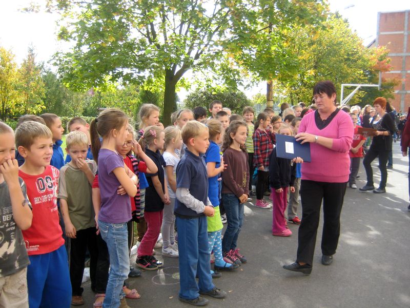 Dnia 4 października 2012 r. odbyła się próbna ewakuacja uczniów z budynku naszej szkoły. Ewakuacja została przeprowadzona zgodnie z wymaganiami bezpieczeństwa pożarowego i miała na celu sprawdzenie poprawnego postępowania uczniów i pracowników szkoły w razie prawdziwego zagrożenia. Po ogłoszonym alarmie (był to trzykrotnie powtórzony sygnał dźwiękowy) uczniowie podporządkowani poleceniom nauczycieli w zorganizowany sposób, bez paniki kierowali się do wskazanego wyjścia ewakuacyjnego. Pan konserwator odłączył dopływ prądu i gazu, natomiast szkolny społeczny inspektor pracy wraz z pracownikami sekretariatu sprawdził czy wszystkie osoby ewakuowały się z budynku oraz prawidłowość pozostawienia pomieszczeń. Po ewakuacji wszyscy zgromadzili się na boisku szkolnym w bezpiecznej odległości od miejsca zagrożenia, gdzie nauczyciele sprawdzili obecność uczniów. W ewakuacji uczestniczyli: dyrekcja, nauczyciele i pracownicy szkoły oraz uczniowie klas 0-6. Po zakończonej akcji wszyscy udali się z powrotem do sal.