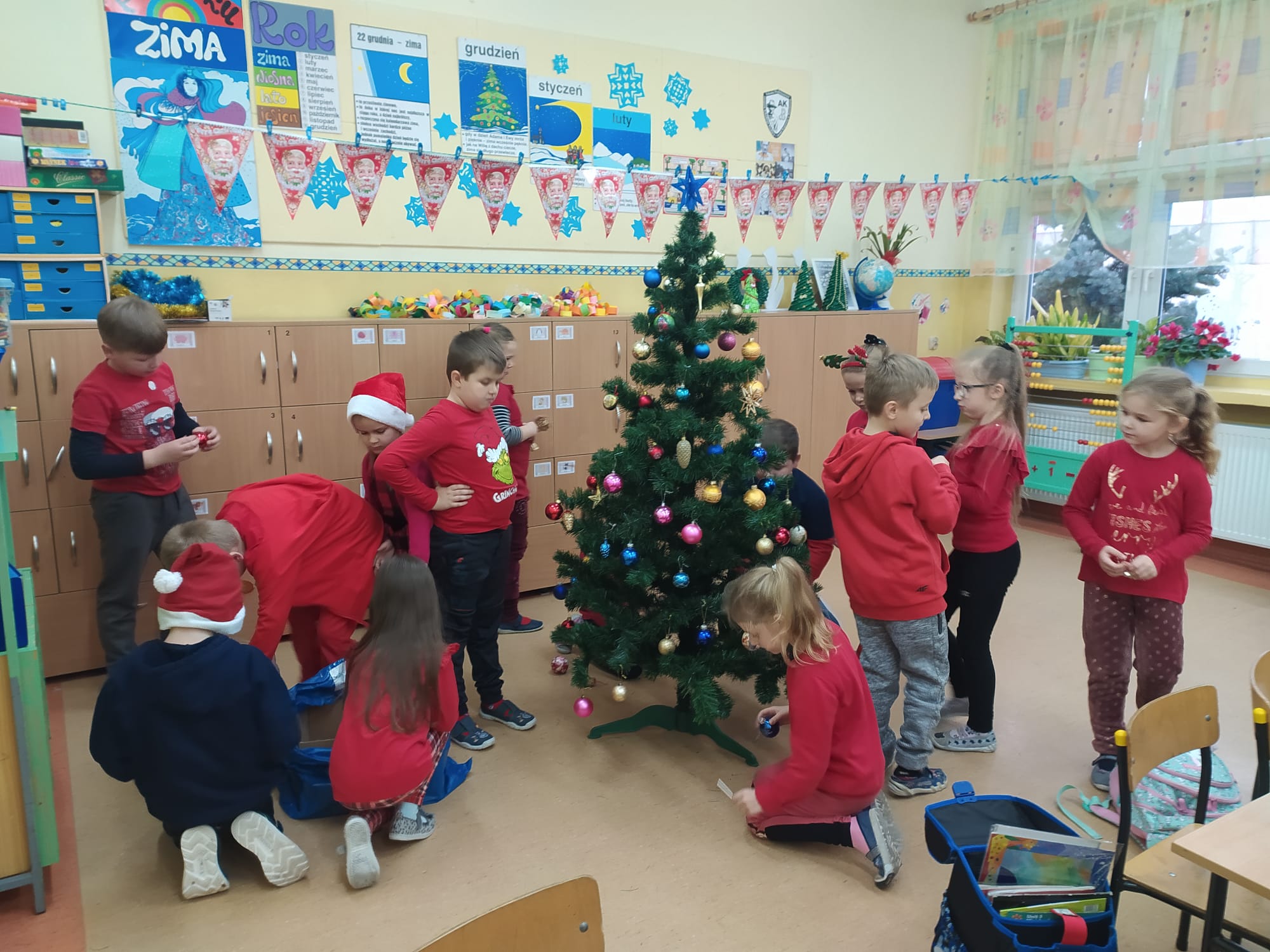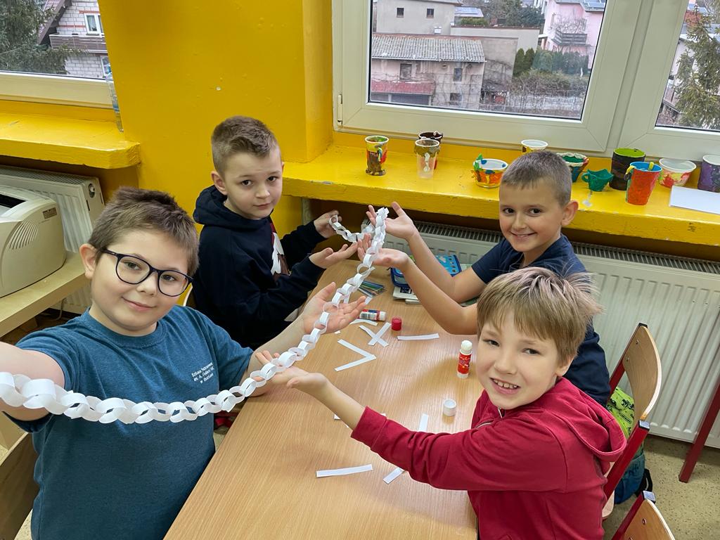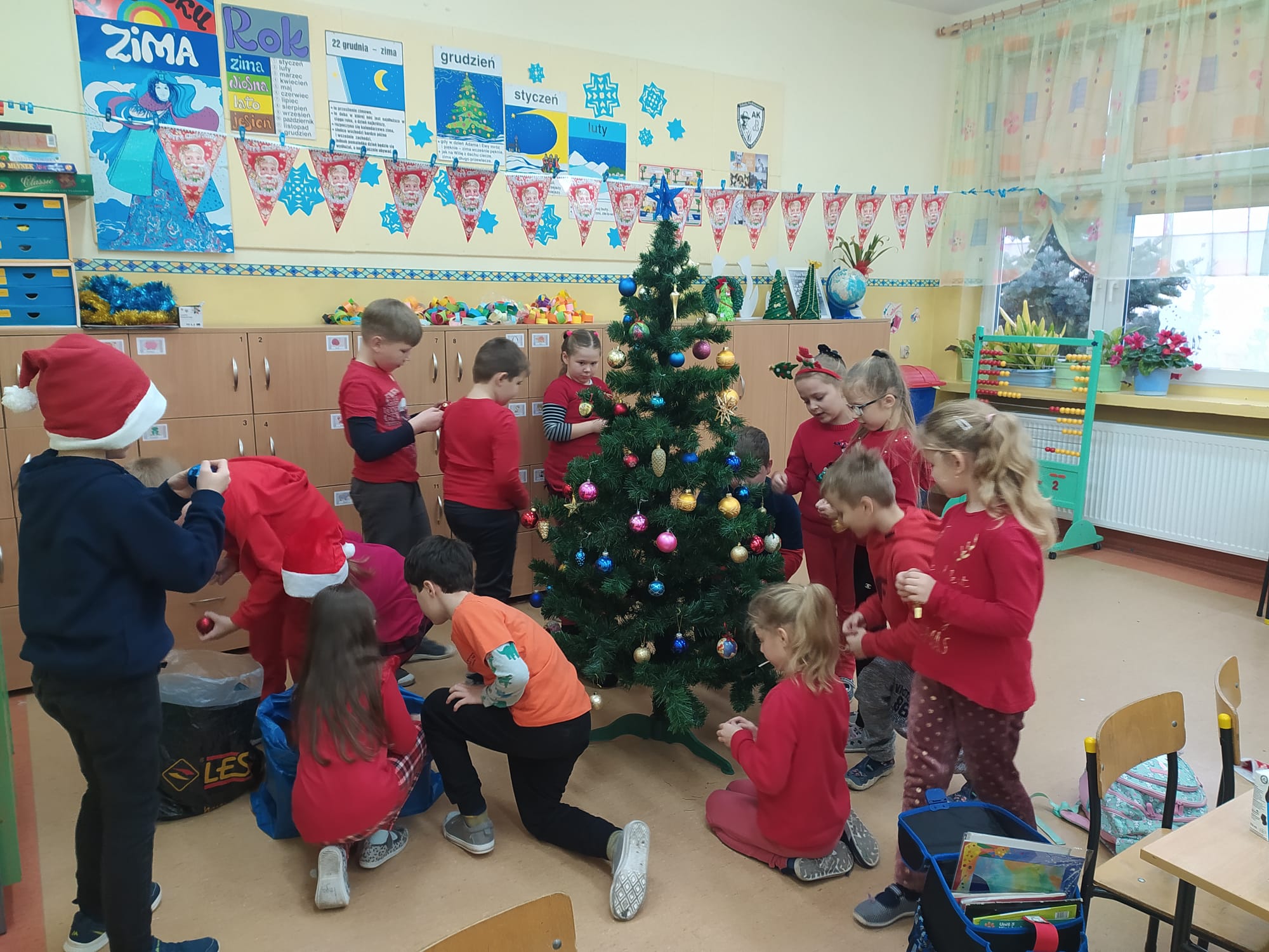 Święta Bożego Narodzenia to wyjątkowa pora. Od początku grudnia już czujemy ten magiczny czas. Jeszcze przed Mikołajkami uczniowie naszej szkoły zaczęli ozdabiać swoje klasy świątecznymi dekoracjami. Tworzyli własne łańcuchy, aniołki, renifery z papieru, którymi później ozdabiali choinki. W czasie zajęć słuchali kolęd i opowieści o tradycjach bożonarodzeniowych. Miła i ciepła atmosfera, która im towarzyszyła podczas przygotowań, sprawiła, że dzieci poczuły zbliżające się Święta.