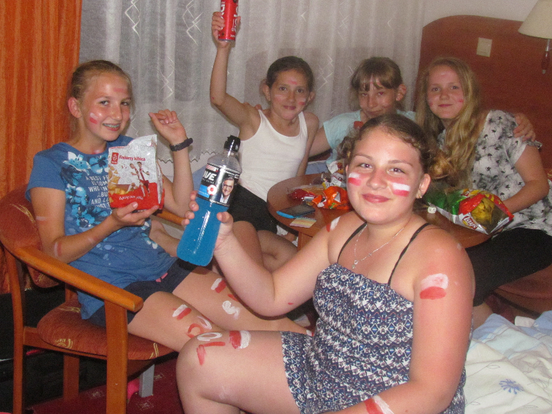 Następnego dnia spotkaliśmy się z panią Olgą Danko, przewodnikiem górskim po Karkonowskim Parku Narodowym. Zwiedzanie rozpoczęliśmy od Świątyni Wang. Oddychając świeżym powietrzem i podziwiając piękno przyrody dotarliśmy do schroniska Samotnia. Około południa byliśmy już w schronisku Strzecha Akademicka, które jest jednym z najstarszych i największych schronisk w Karkonoszach. Schodząc z górskiego szlaku kierowaliśmy się w stronę skoczni Orlinek. Wysoka temperatura oraz słońce sprawiły, że marzyliśmy juz tylko o kąpieli i dobrej kolacji. Wieczorem w kilku pokojach utworzone zostały strefy kibica, gdyż tego dnia na Mistrzostwach Europy we Francji Polska grała z Niemcami. Piątkowy poranek przywitał nas dżdżystym deszczem, dlatego nasze plany wycieczkowe musiały ulec zmianie. Udaliśmy się do przepięknego barokowego kościoła św. Jana Chrzciciela w Cieplicach. Potem dotarliśmy do Szklarskiej Poręby, aby zwiedzić Leśną Hutę Szkła .Pani Izabela Urbaniak stała się na chwilę rzemieślnikiem i wykonała dzieło swojego życia- szklany kwiat paproci. Ostatnim punktem naszej wycieczki był tego dnia wzburzony nocnymi opadami wodospad Szklarka. Do Raszkowa wróciliśmy pełni wrażeń i miłych wspomnień. Opiekunami na wycieczce byli: Mariola Janiak, Katarzyna Zaworska, Izabela Urbaniak i Dorota Mielcarek.
