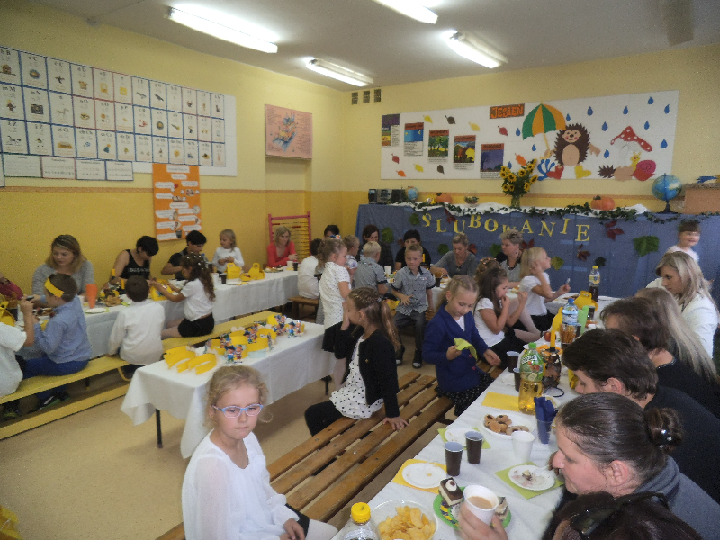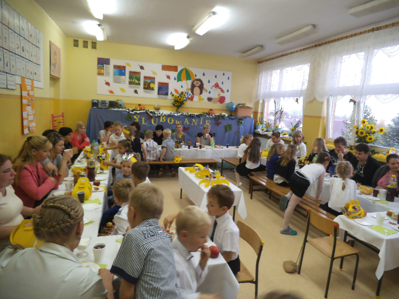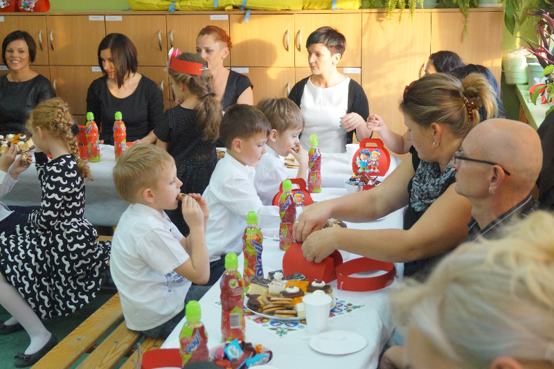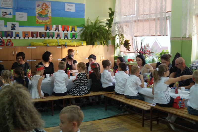 Wszyscy zaproszeni goście przybyli z prezentami. Dzieci otrzymały piłki, legitymacje szkolne, gry planszowe, słodkości, odblaski, książeczki SKO z wkładem 10 zł jako zachętę do oszczędzania. Uroczystość zakończyła się wspólnym poczęstunkiem przygotowanym przez rodziców klas I  oraz wspólną  fotografią klas.