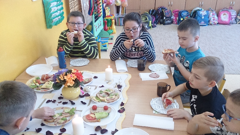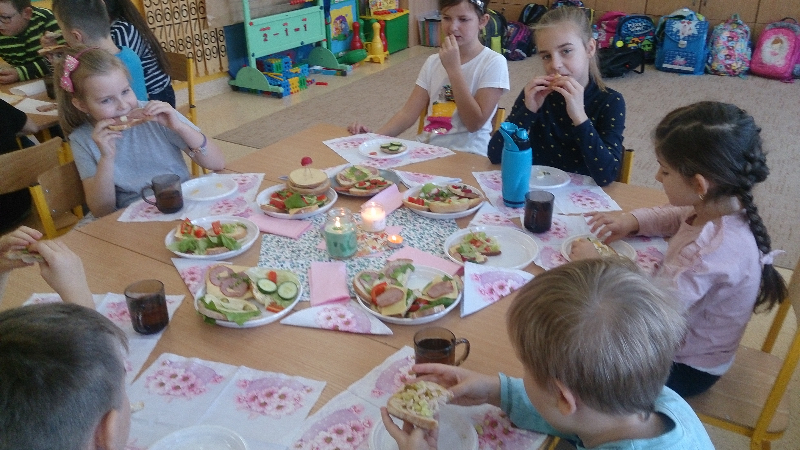 W Klubach Śniadanie Daje Moc, w czasie zajęć edukacyjnych, nauczyciele mają za zadanie przekazać najmłodszym cenne informacje, w oparciu o 12 zasad zdrowego odżywiania o roli prawidłowego żywienia oraz zorganizować w klasie wspólne drugie śniadanie ze zdrowych produktów przyniesionych z domu. Jest to świetna zabawa zarówno dla dzieci, jak  i dla nauczycieli oraz zaangażowanych rodziców, dzięki której najmłodsi nauczą się jak ważne jest codzienne, zdrowe śniadanie. Podczas tego dnia robione są zdjęcia, nakręcane filmiki  o tym, jak przebiegało zorganizowanie wspólnego śniadania.