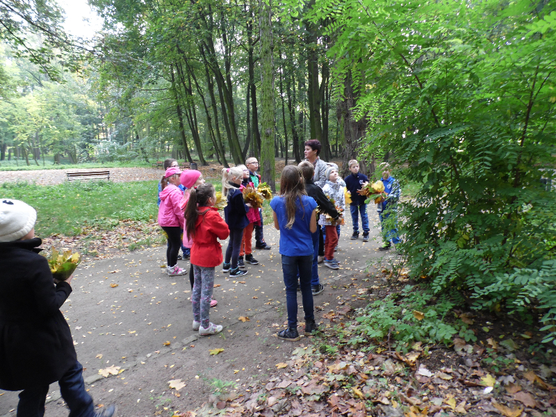W piątek 10.10.2014r. klasa III a wraz z panią Anną Sztok i rodzicem Magdą Młynarczyk wybrała się do parku by poszerzać wiedzę dzieci na temat zmieniającej się przyrody w trakcie jesieni. Uczniowie chłonęli wiedzę jaką przekazywała im pani Ania podczas wędrówki do parku w Przybysławicach.
