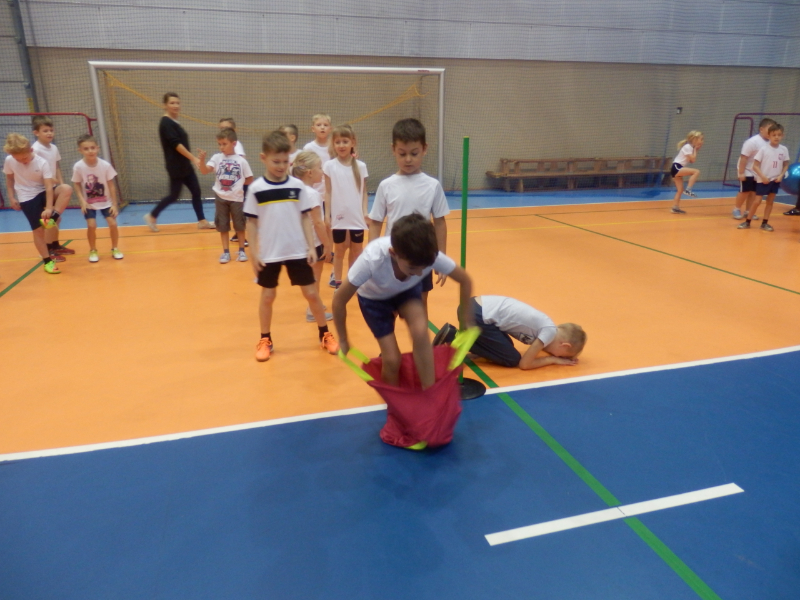 Dnia 19 października 2018 r. w nagrodę za pełne radości , ale i  powagi ślubowanie, uczniowie z klas 1b i 1c wraz z wychowawczyniami,  udali się na halę widowiskowo sportową. Dzieci  uczestniczyły  w różnych konkurencjach sportowych, które możliwe były do przeprowadzenia dzięki pomocy  rodziców i nauczyciela wychowania fizycznego pana Sławomira Krawczyka. Uczniowie  podczas pełnej emocji  zabawy  korzystali  z różnorodnego sprzętu sportowego.