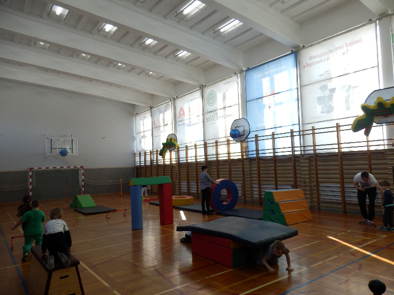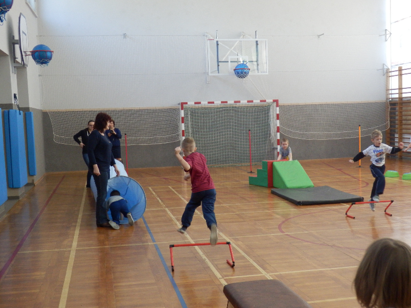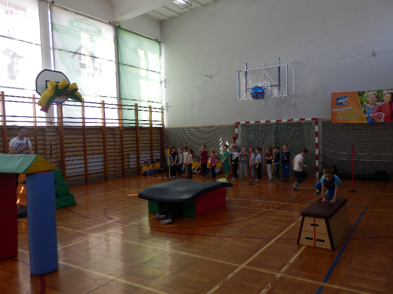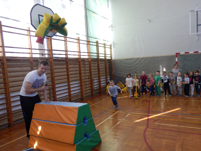 17 marca w naszej szkole gościliśmy grupę dzieci z Przedszkola „Smerfy” z Raszkowa i Przybysławic. Dzieci pięcioletnie i sześcioletnie uczestniczyły w zajęciach sportowych, które odbywały się w formie zabawy , pod hasłem „fair-play”. Organizatorem imprezy był nauczyciel edukacji wczesnoszkolnej pan Sławomir Krawczyk, który podkreślał, że ćwiczenie umiejętności ruchowych od najmłodszych lat, powtarzanie ćwiczeń, rozwijanie równowagi i koordynacji ma ogromne przełożenie na rozwój poznawczy dziecka. Przedszkolacy dzielnie i chętnie pokonywali przeszkody i doskonale się bawili. Zajęcia miały na celu przyjazną adaptacje dzieci przedszkolnych do środowiska szkolnego. Ćwiczenia uczyły stawiać czoła wyzwaniom, czerpania radości i wzmacniania swojego zdrowia fizycznego. Zapraszamy Przedszkolaków na kolejne zajęcia sportowe w naszej szkole.