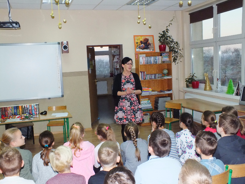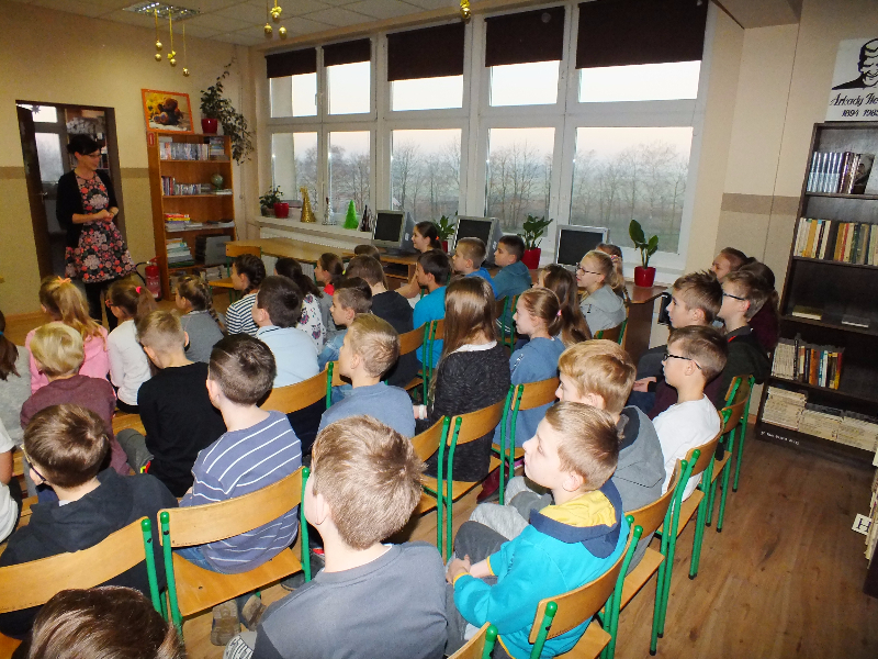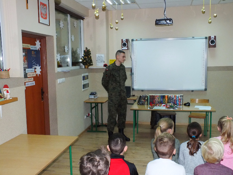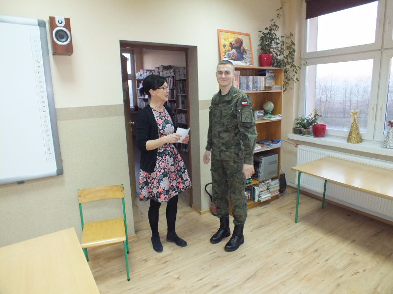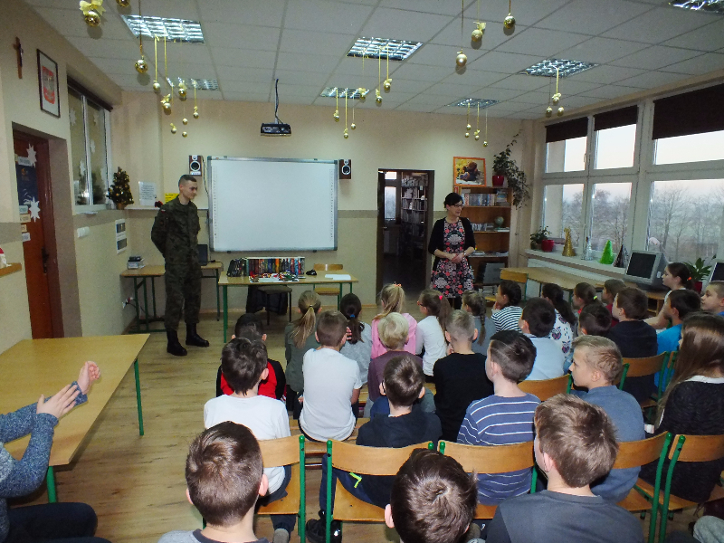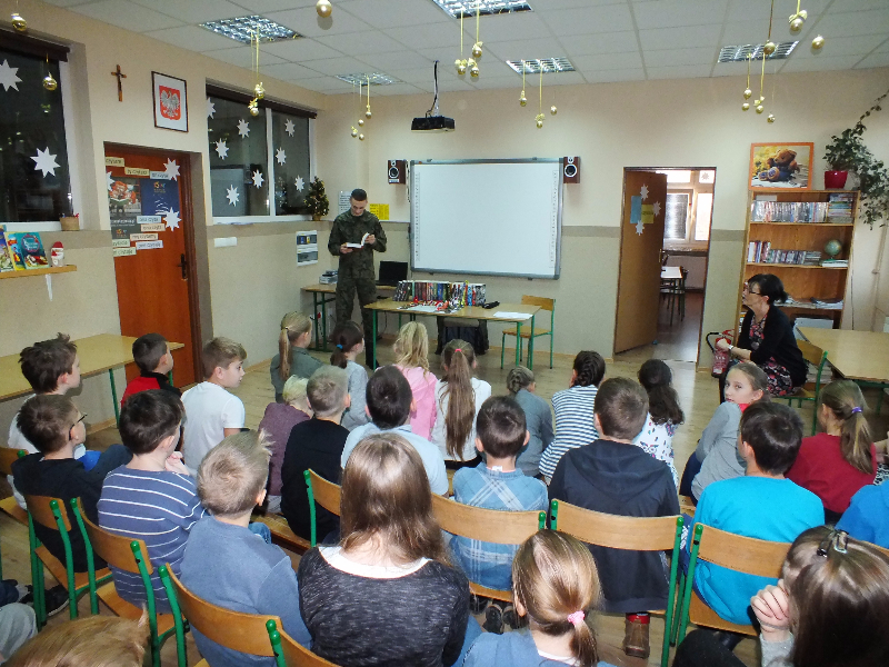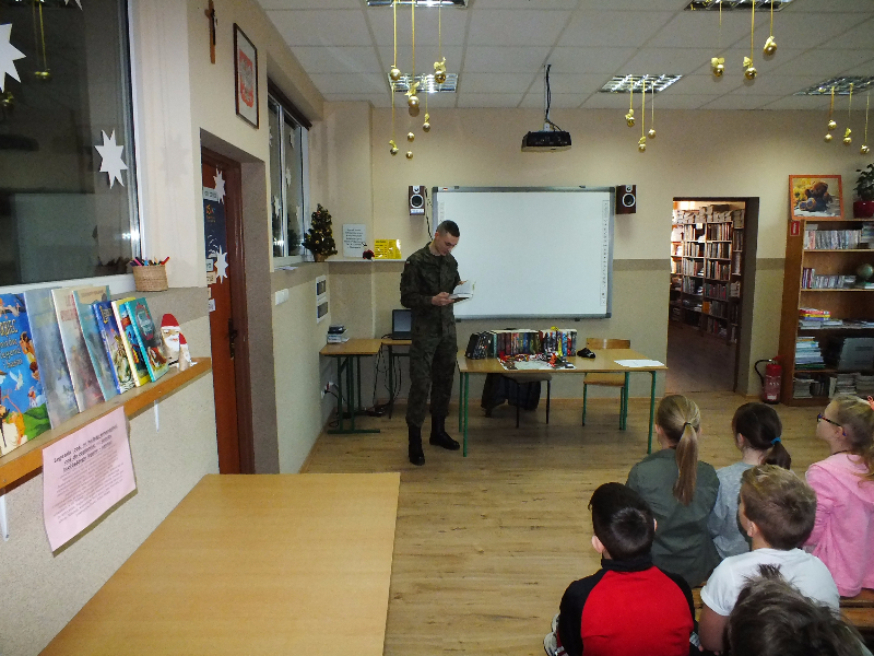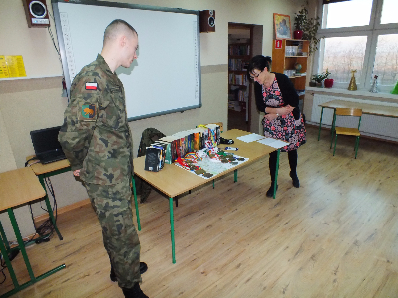 W ramach ogólnopolskiej akcji „Cała Polska czyta dzieciom” gościem biblioteki szkolnej był Mikołaj Dutkowski, absolwent naszej szkoły, obecnie żołnierz, członek kadry narodowej seniorów oraz kadry wojska polskiego. Swoją przygodę z biegami Mikołaj rozpoczął w 2001 r. - były to Biegi na Orientację. W naszej szkole, będąc uczniem klasy 6, ustanowił swój rekord życiowy – 3,15 sekund na 1 kilometr ! Od tego czasu Mikołaj tylko dopisuje sukcesy na sportowej liście: kadra wojewódzka młodzików, kadra narodowa juniorów, medale Mistrzostw Polski Juniorów (2 złote, 2 srebrne, 1 brązowy), reprezentant Polski w Mistrzostwach Europy Juniorów w Szwajcarii, reprezentant Polski w Mistrzostwach Świata Juniorów, reprezentant Polski w Mistrzostwach Europy Seniorów, starty w Pucharze Świata. Obecnie Mikołaj jest studentem I roku Akademii Wychowania Fizycznego we Wrocławiu i Żołnierzem 4 Zielonogórskiego Pułku Przeciwlotniczego w Czewieńsku/Lesznie. Przygotowuje się do udziału w Mistrzostwach Świata Wojska, które odbędą się w 2017r. w Finlandii, do cywilnych Mistrzostw Świata, które odbędą się w 2017r. w Estonii i do eliminacji w zawodach The World GAMES. Na spotkanie w bibliotece zaproszono sportowców naszej szkoły, czyli uczniów klas sportowych 4b i 5b. Zaproszony gość przyniósł ze sobą medale, mapę z biegów na orientację i ulubione, po wielokroć czytane, książki J. K. Rowling „Harry Potter”. W trakcie spotkania opowiadał o swojej pasji do biegania, o codziennych treningów, o dumie, kiedy biega się w koszulce z biało – czerwonym orłem na piersiach, odpowiadał też na pytania uczniów. Na zakończenie wizyty w bibliotece głośno przeczytał fragment książki „Harry Potter i insygnia śmierci”. Naszemu gościowi dziękujemy za ciekawą lekcję, za udzielone rady i życzymy wielu sportowych sukcesów. Trzymamy kciuki za Mikołaja w myśl hasła z jego bloga „Wysiłek sprzyja zwycięstwu, zwycięstwo kocha przygotowania”.