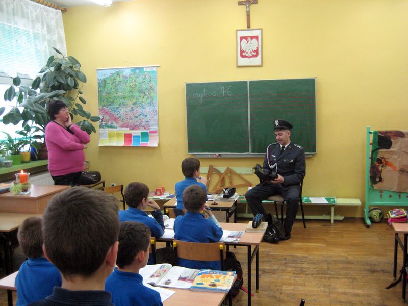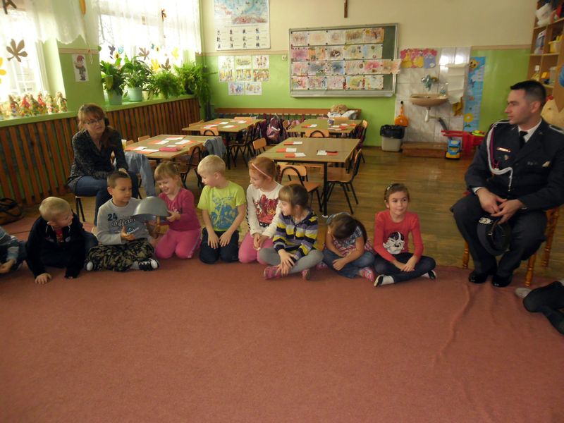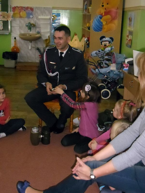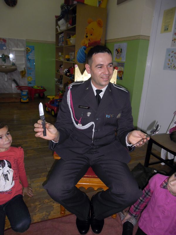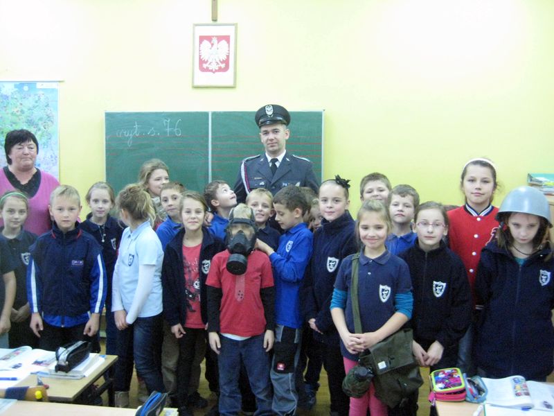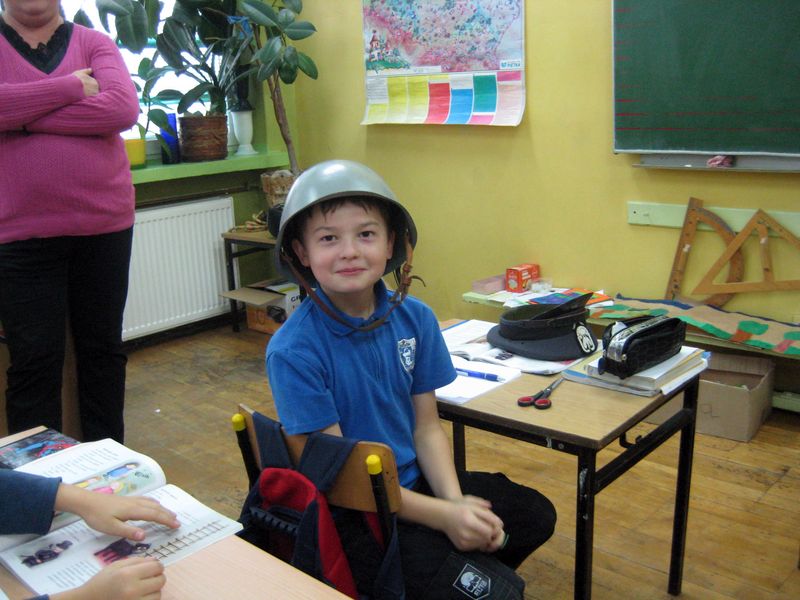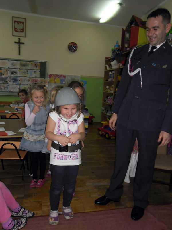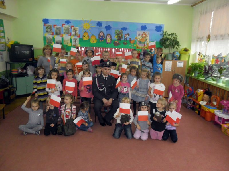 W piątek 08.11. 2013r. z okazji Narodowego Święta Niepodległości zaprosiliśmy do przedszkola pana Rafała Szczęsnego, sierżanta wojsk lotniczych w Poznaniu, ojca jednej z dziewczynek z oddziału I. Pan Rafał opowiedział dzieciom, czym zajmują się żołnierze, jak trudna i ważna jest ich praca dla naszej ojczyzny. Pokazał też dzieciom różne elementy umundurowania: czapki, berety, hełm i pas. Przedszkolaki z wielkim zaciekawieniem oglądały żołnierską menażkę i sztućce oraz maskę przeciwgazową. Chętnie przymierzały wojskowe nakrycia głowy. Rozmawiały też z panem sierżantem o wojskowych pojazdach i samolotach. Żołnierska wizyta była bardzo udana i ciekawa. Po spotkaniu z przedszkolakami Pan Rafał odwiedził też uczniów z klasy IIa i IIIa, by również starszym dzieciom opowiedzieć o wojsku i zachęcić do rozwijania postaw patriotycznych.