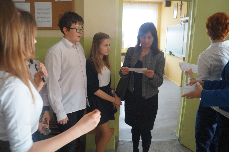 Na kilka minut przed rozpoczęciem sprawdzianu wszyscy piszący spotkali się z dyrekcją szkoły i członkami poszczególnych komisji. Naszym uczniom życzyliśmy połamania piór oraz satysfakcji z napisania sprawdzianu.