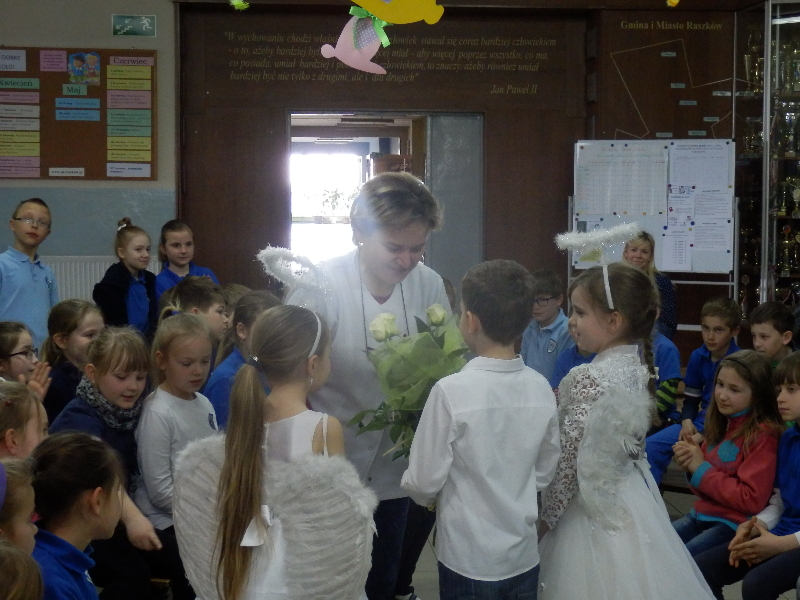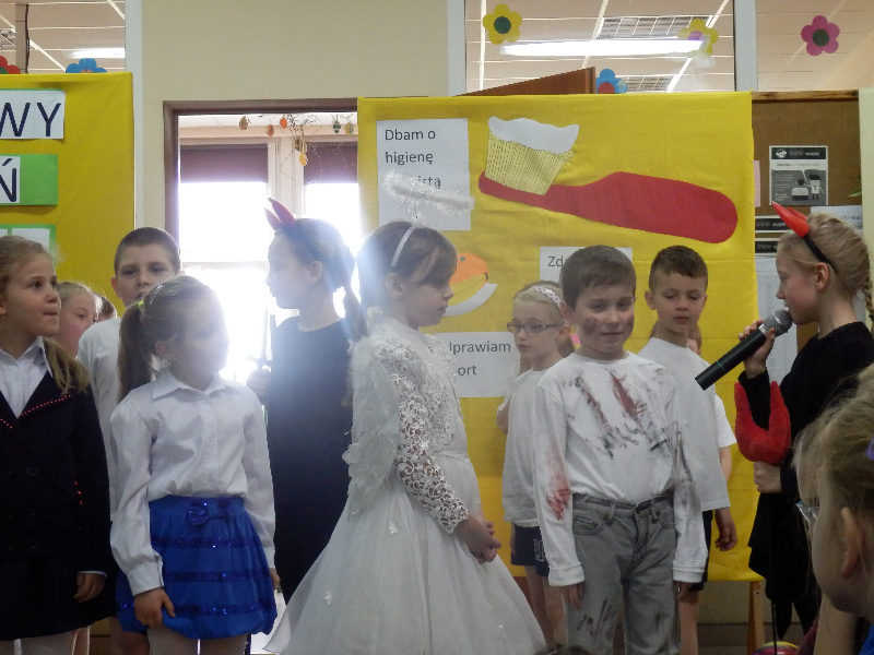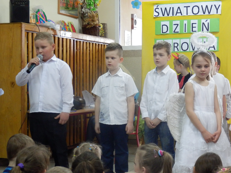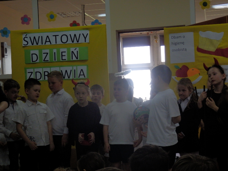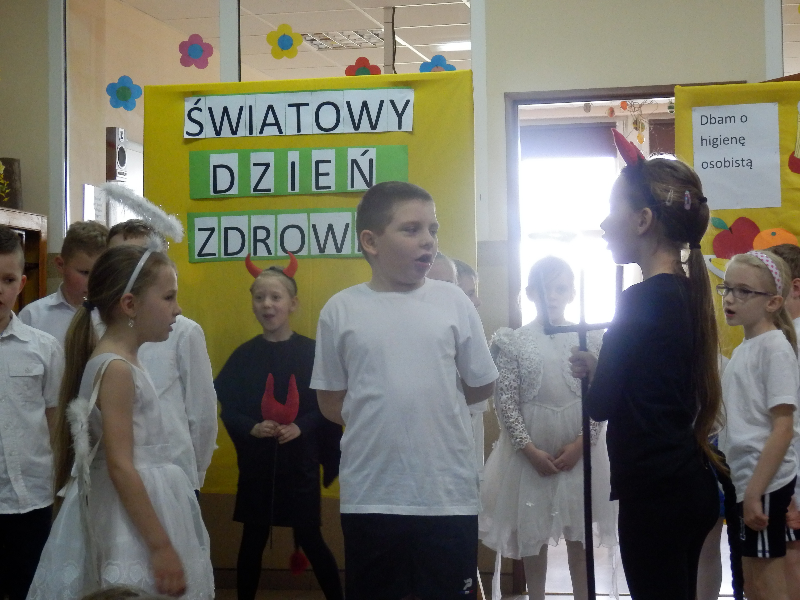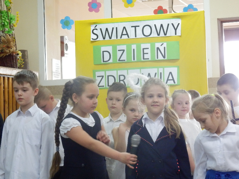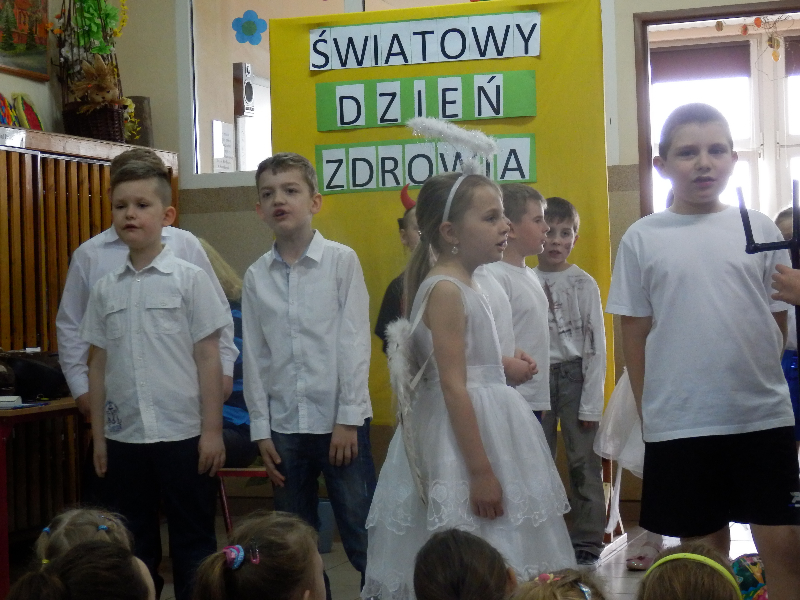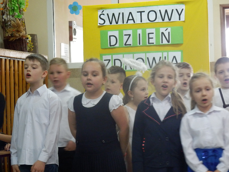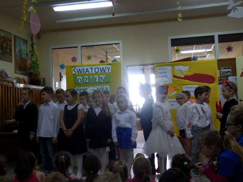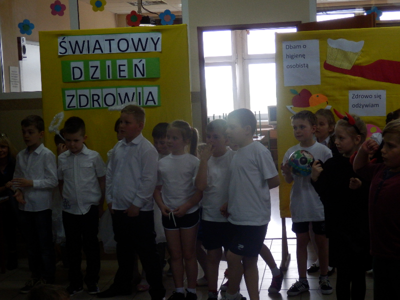 W dniu 17 kwietnia 2015 r. dzieci z klasy 1c wraz z wychowawcą Iwoną Raczak z okazji Światowego Dnia Zdrowia przygotowały spektakl pt. „Żeby zdrowym być, trzeba zdrowo żyć” dla klas młodszych. Scenariusz przedstawienia dawał receptę na zachowanie zdrowia, uwzględniając higienę osobistą, higienę jamy ustnej oraz aktywne formy spędzania wolnego czasu. Dzieci z Małego Samorządu złożyły życzenia pani pielęgniarce Donacie Wasiak i podziękowały Jej za to, że na wszystkie dolegliwości potrafi znaleźć lekarstwo i udzielić dobrych rad na temat zdrowia.