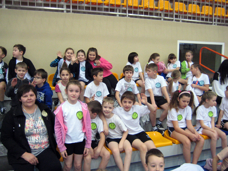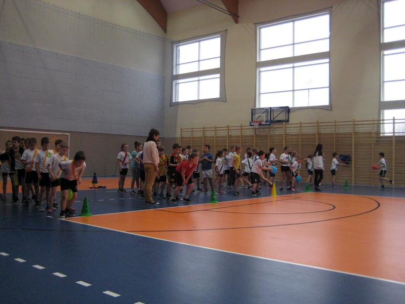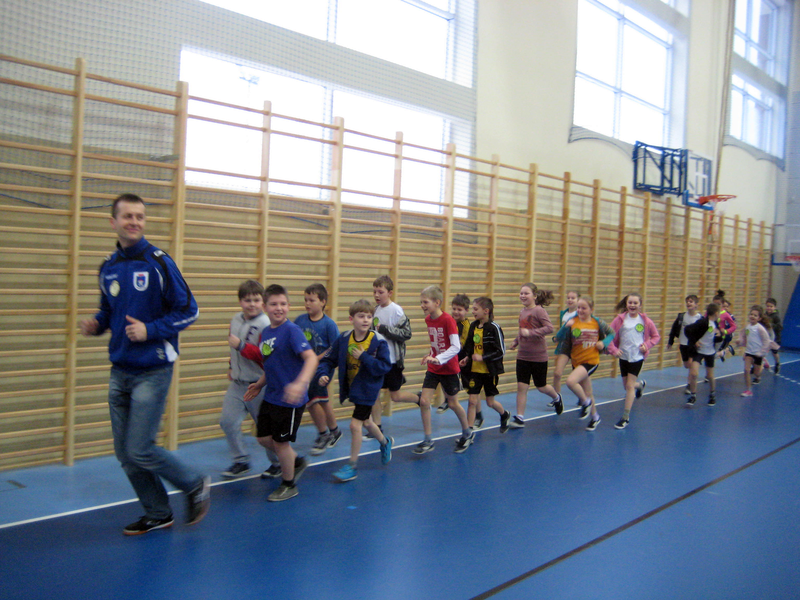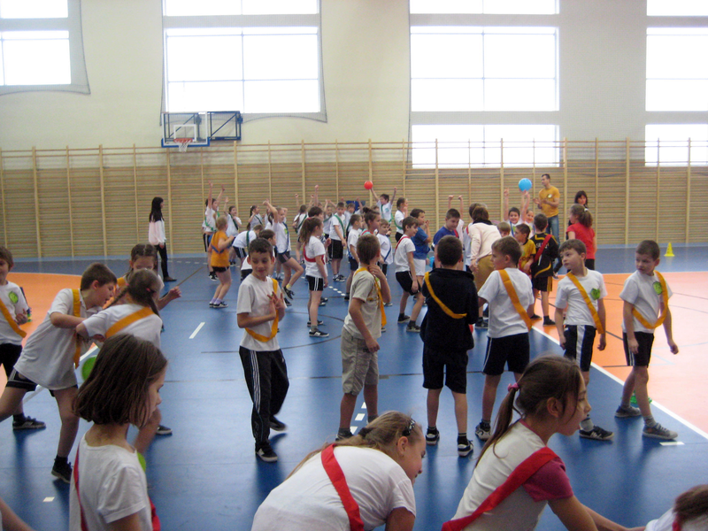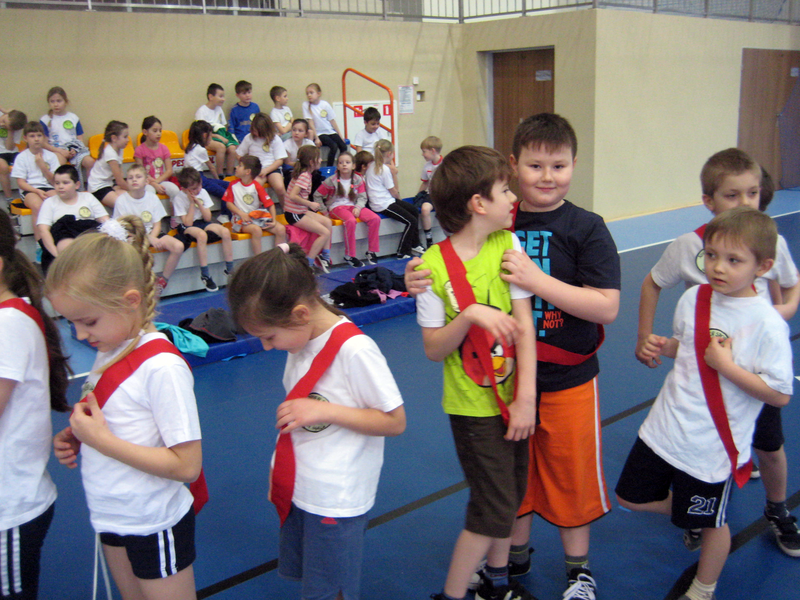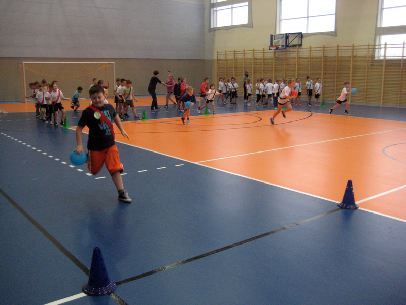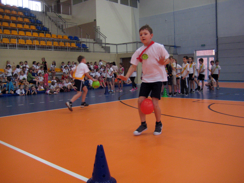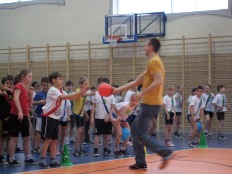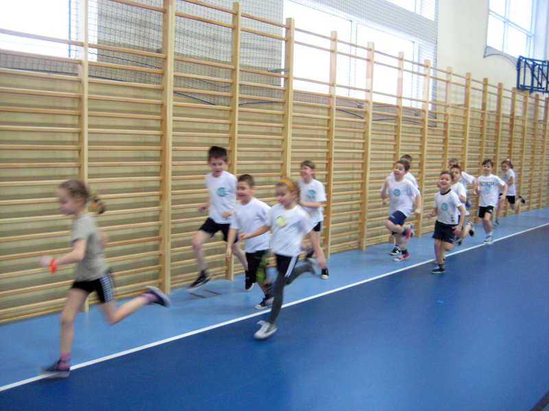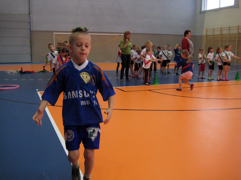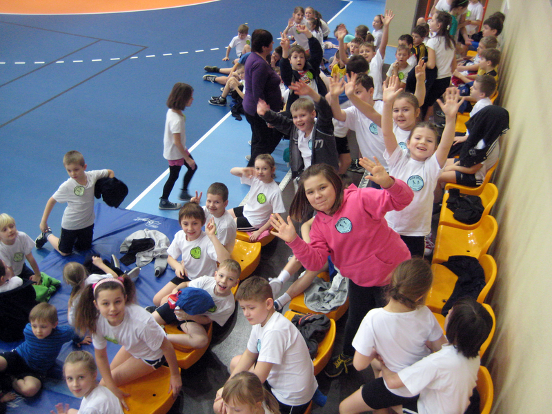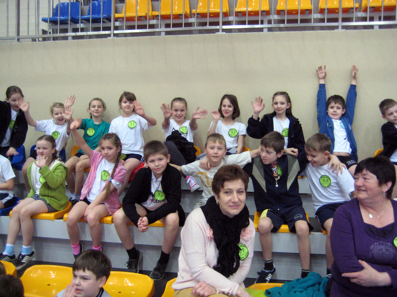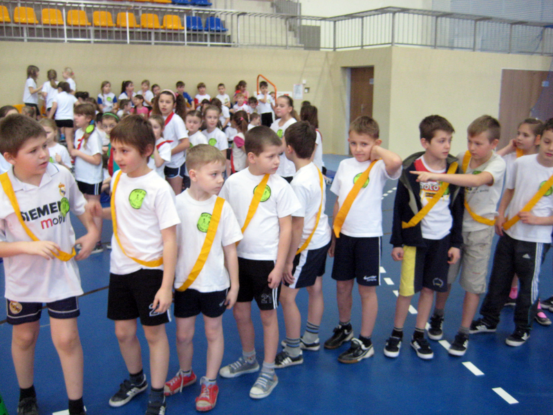 Uroczyste otwarcie hali sportowo – widowiskowej odbyło się na początku stycznia, teraz na prośbę pani dyrektor Aleksandry Krawczyk zorganizowano sportową olimpiadę dla najmłodszych uczniów naszej szkoły.  Ten dzień był wyjątkowy. Wszystkie klasy i dzieci przedszkolne rywalizowały ze sobą w różnych dyscyplinach: zawody z piłką, obręczą, z woreczkami, różne zabawy i gry zespołowe, zabawy z chustą Klanza.