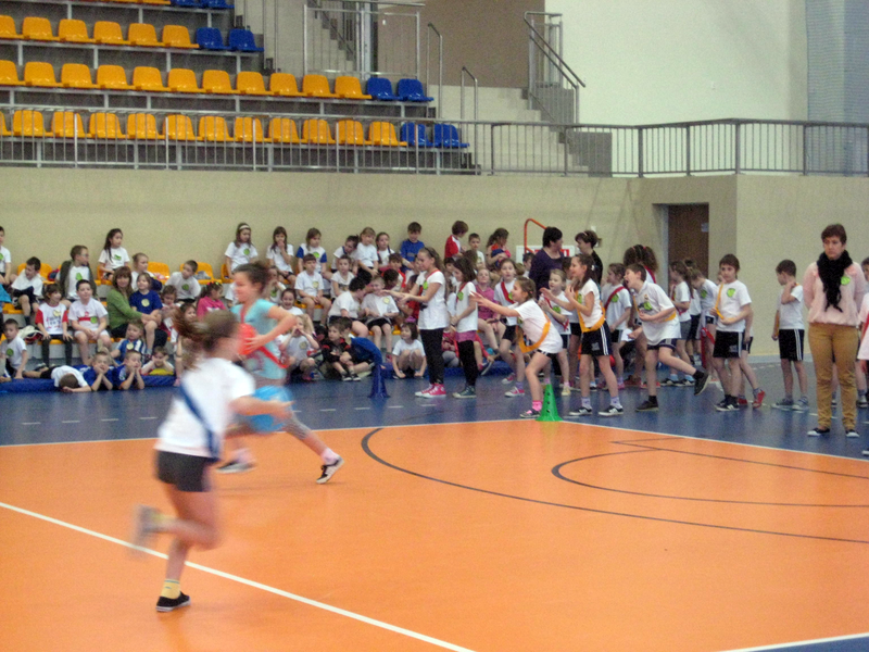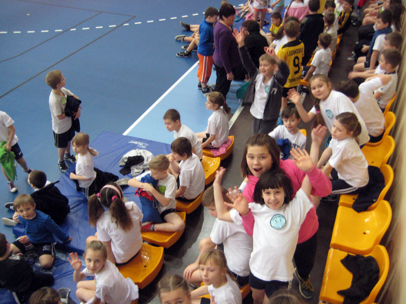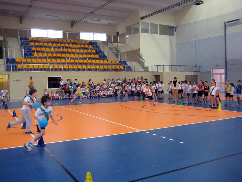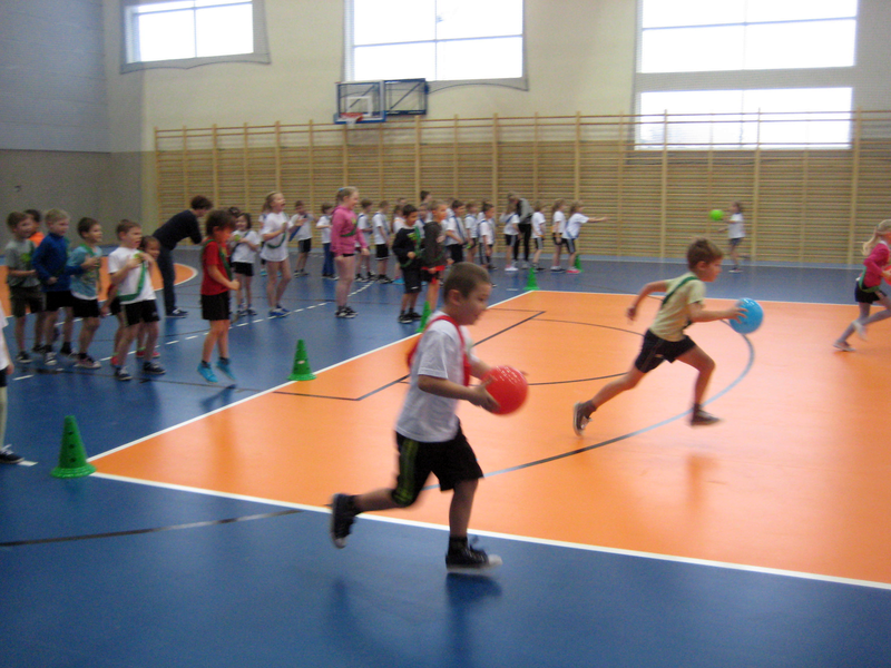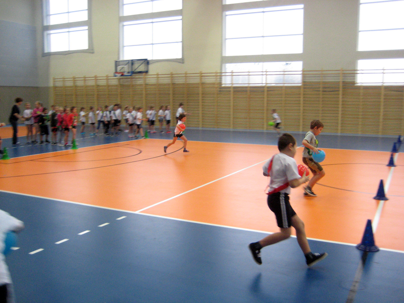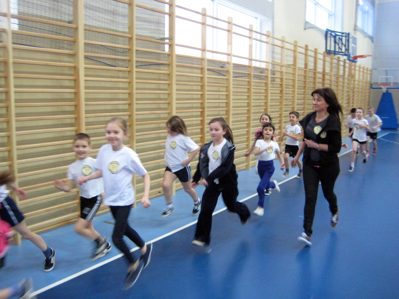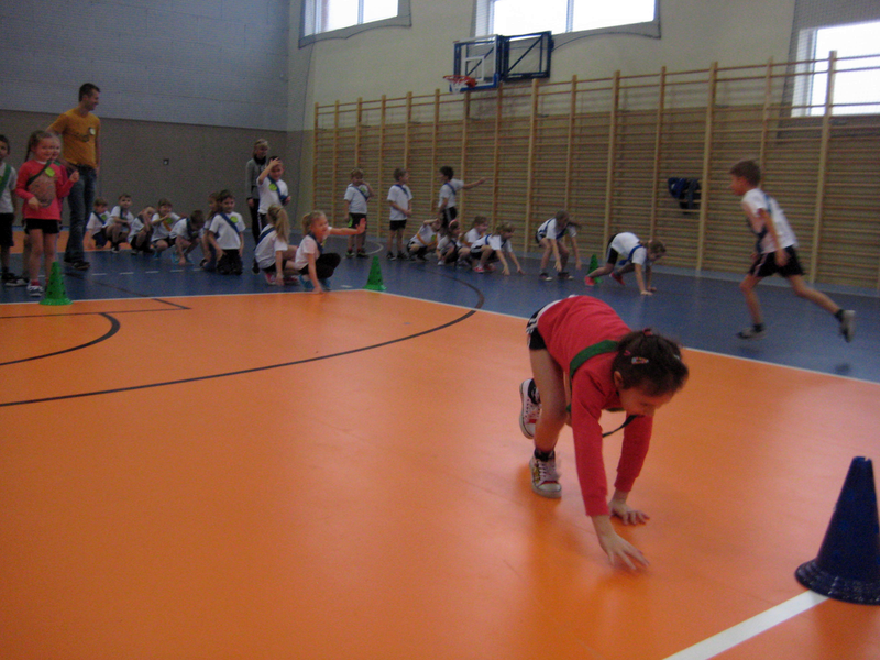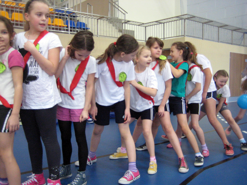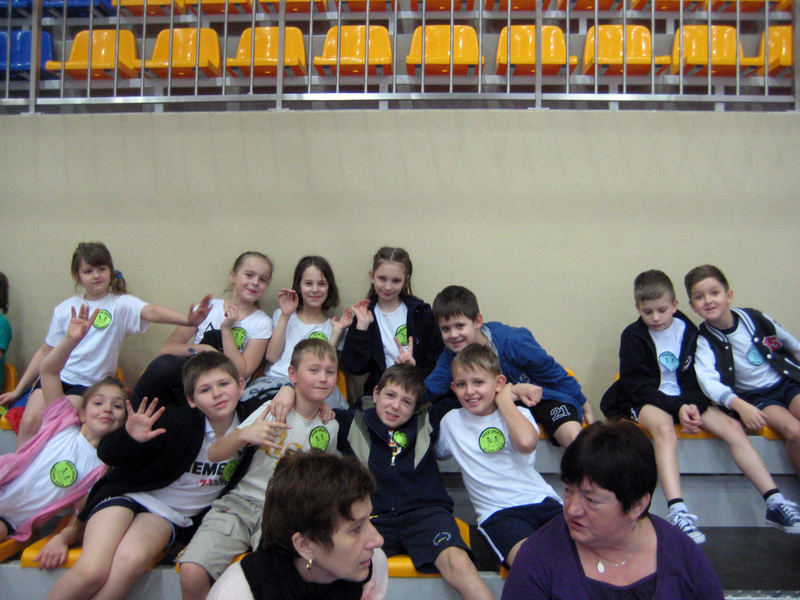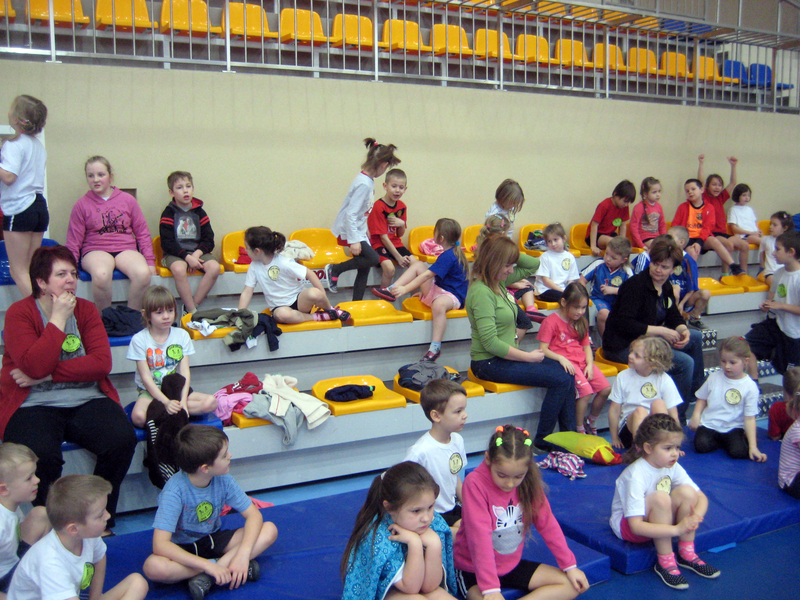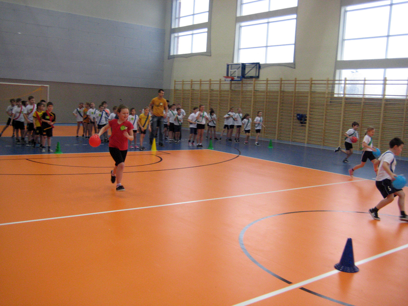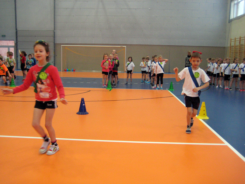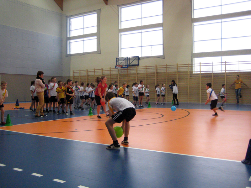 Uroczyste otwarcie hali sportowo – widowiskowej odbyło się na początku stycznia, teraz na prośbę pani dyrektor Aleksandry Krawczyk zorganizowano sportową olimpiadę dla najmłodszych uczniów naszej szkoły.  Ten dzień był wyjątkowy. Wszystkie klasy i dzieci przedszkolne rywalizowały ze sobą w różnych dyscyplinach: zawody z piłką, obręczą, z woreczkami, różne zabawy i gry zespołowe, zabawy z chustą Klanza.