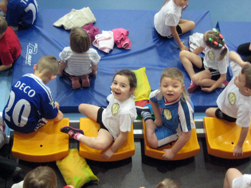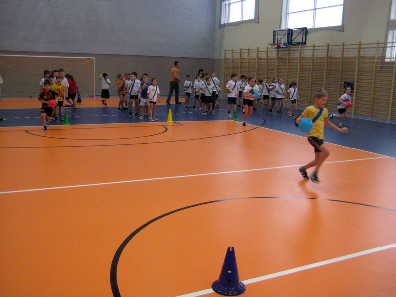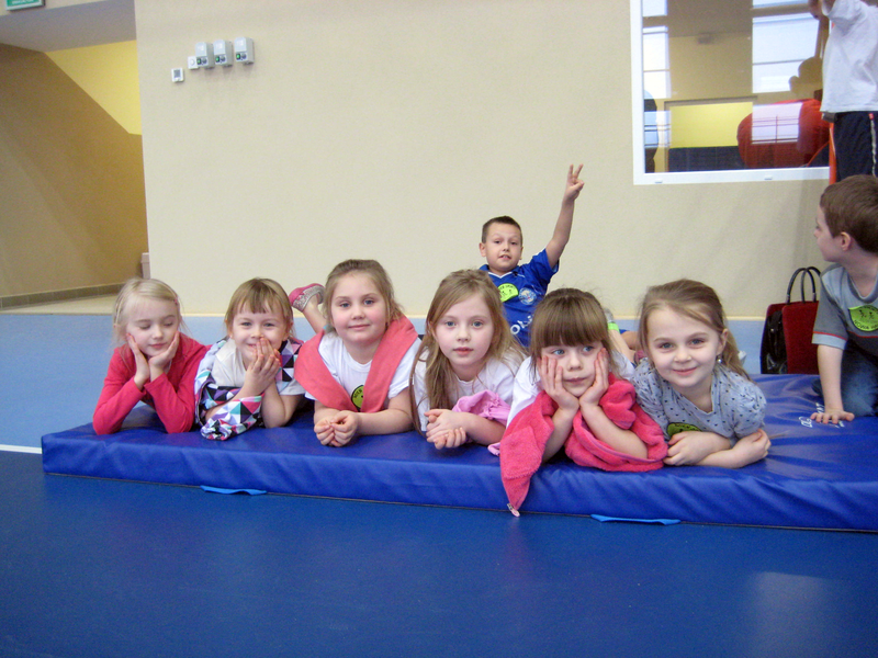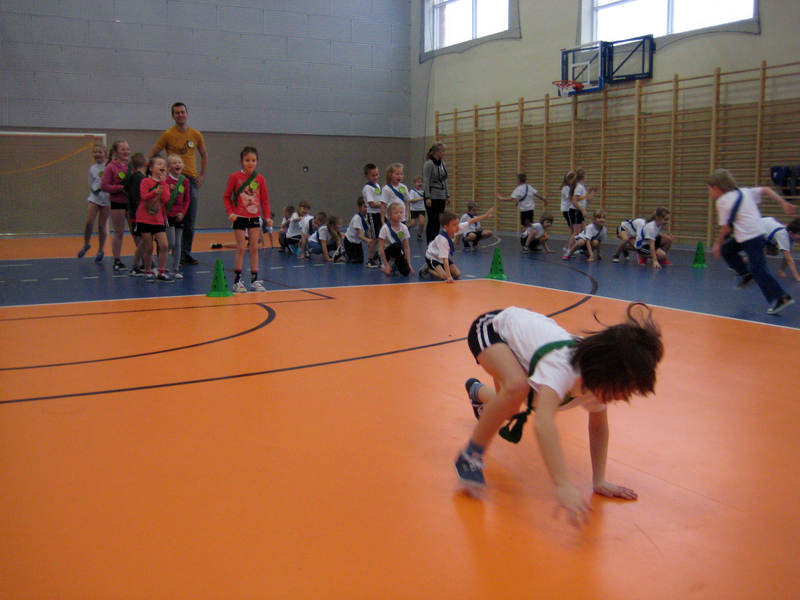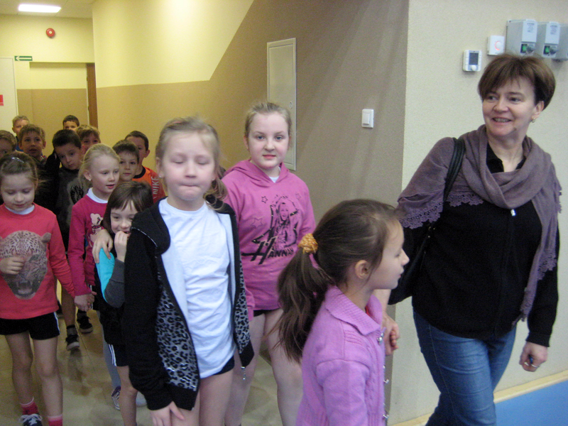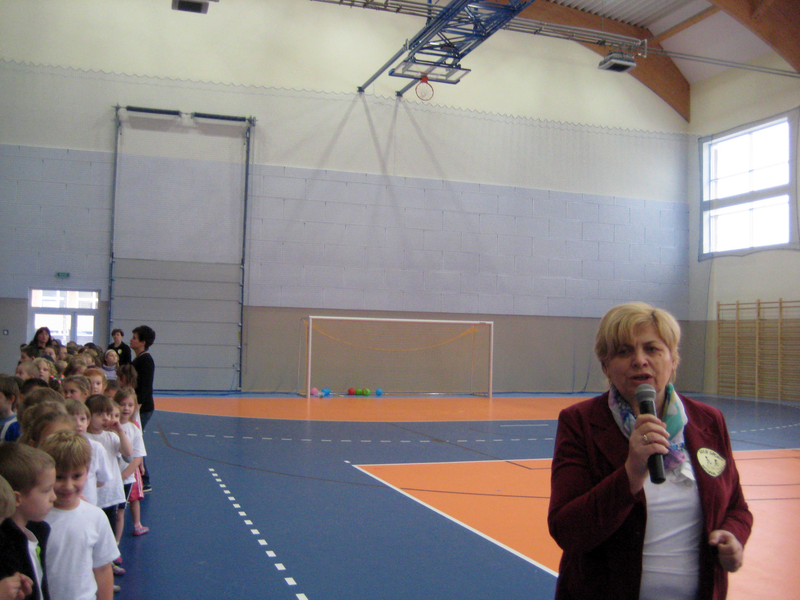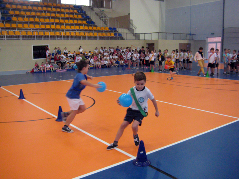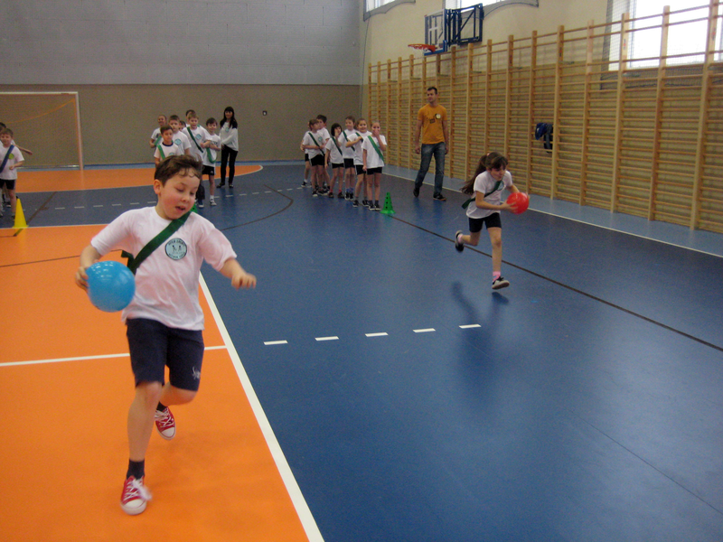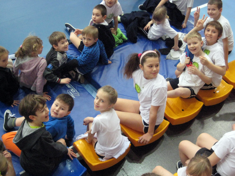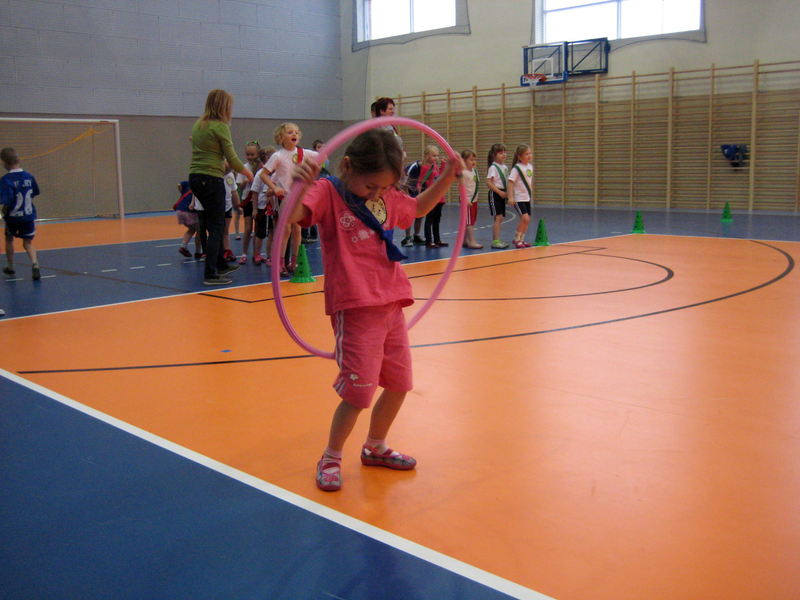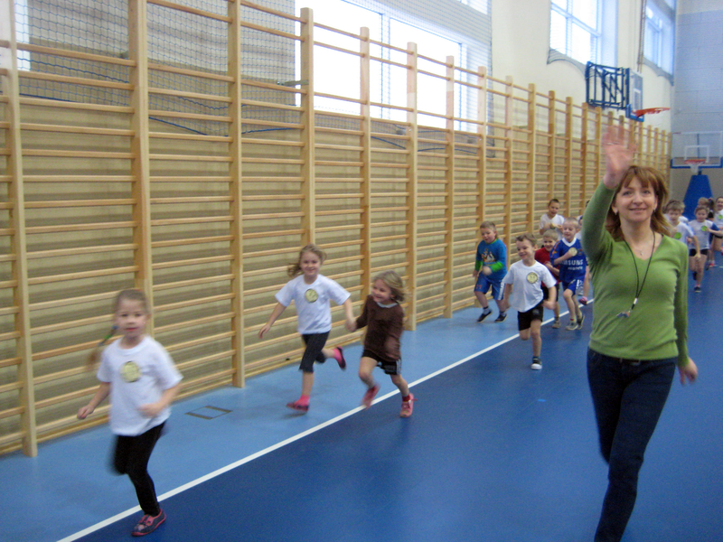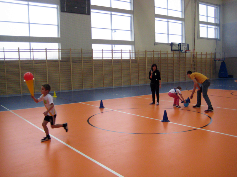 Uroczyste otwarcie hali sportowo – widowiskowej odbyło się na początku stycznia, teraz na prośbę pani dyrektor Aleksandry Krawczyk zorganizowano sportową olimpiadę dla najmłodszych uczniów naszej szkoły.  Ten dzień był wyjątkowy. Wszystkie klasy i dzieci przedszkolne rywalizowały ze sobą w różnych dyscyplinach: zawody z piłką, obręczą, z woreczkami, różne zabawy i gry zespołowe, zabawy z chustą Klanza.