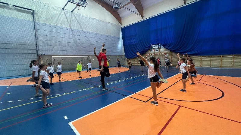 4 października 2023 r. odbył się trening klas 4 B i 6 B z piłkarzami ręcznymi – Łukaszem Gierakiem i Krzysztofem Misiejukiem – zawodnikami Arged Rebud KPR Ostrovia. Celem spotkania było propagowanie kultury fizycznej i rozwijanie zainteresowań związanych z piłką ręczną. Spotkanie zorganizował pan Sławomir Krawczyk.