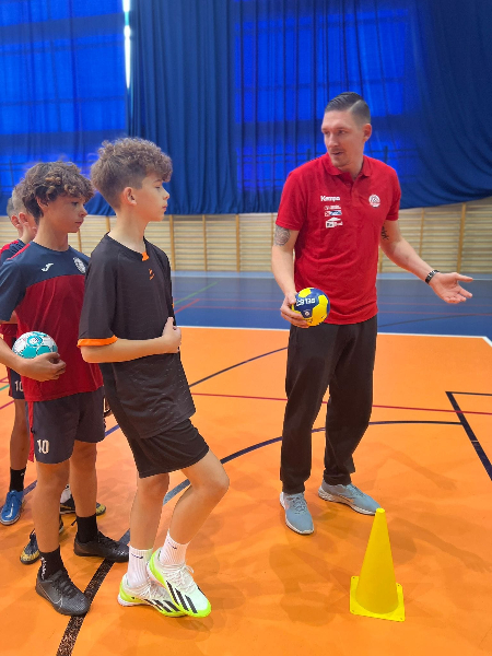Trening klas 4 B i 6 B z piłkarzami ręcznymi