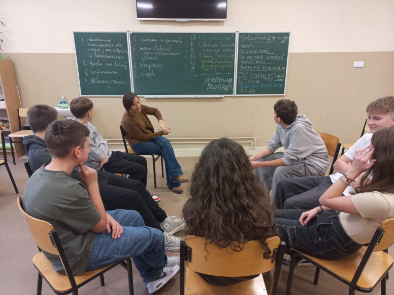 Uczniowie klas 6, 7 i 8 wzięli udział w warsztatach współfinansowanych z Urzędu Marszałkowskiego Województwa Wielkopolskiego ,,Trening zachowań asertywnych z elementami redukcji stresu”. Celem zajęć było poszerzenie wiedzy uczniów na temat różnic w zachowaniach uległych, agresywnych, biernych i asertywnych, a także zdobycie wiedzy na temat manipulacji, umiejętności jej rozpoznawania i zapobiegania. Uczestnicy warsztatów ćwiczyli wyrażanie uczuć, poglądów, i postaw w sposób stanowczy, szanując opinie i prawa innych osób. Zajęcia zostały zrealizowane przez Centrum Działań Profilaktycznych.