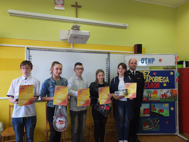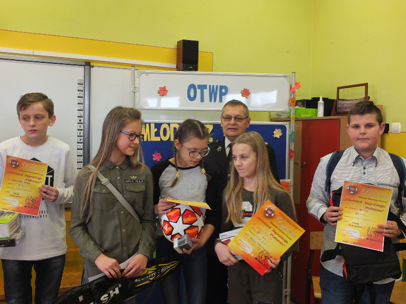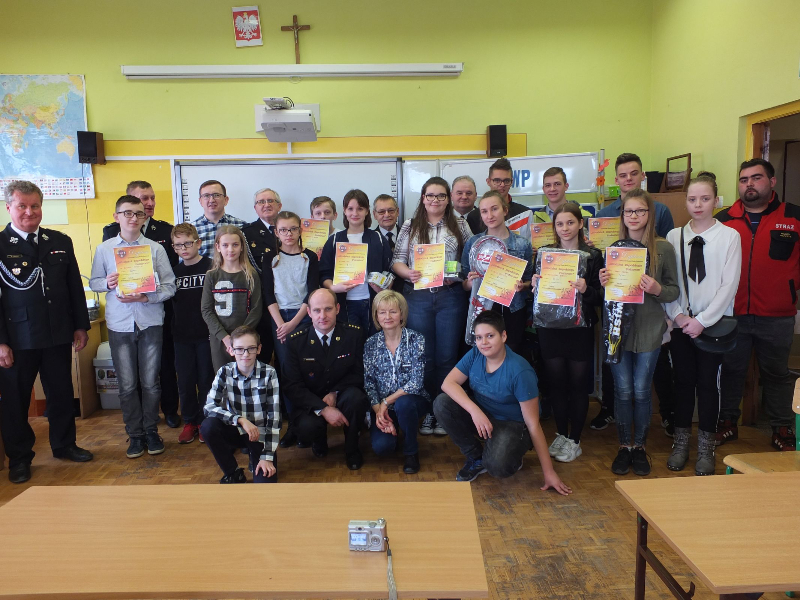 Ogólnopolski Turniej Wiedzy Pożarniczej „Młodzież zapobiega pożarom” ma na celu popularyzowanie przepisów i kształtowanie umiejętności w zakresie ochrony ludności, ekologii, ratownictwa i ochrony przeciwpożarowej. W szczególności służy popularyzacji wśród dzieci i młodzieży znajomości przepisów przeciwpożarowych, zasad postępowania na wypadek pożaru, praktycznych umiejętności posługiwania się podręcznym sprzętem gaśniczym, wiedzy na temat techniki pożarniczej, organizacji ochronny przeciwpożarowej oraz historii i tradycji ruchu strażackiego. 9 marca 2019 roku odbył się w Szkole Podstawowej w Radłowie Ogólnopolski Turniej Wiedzy Pożarniczej – etap gminny pod hasłem „Młodzież Zapobiega Pożarom„. Naszą szkołę reprezentowało 7 uczniów, którzy w grupie II zajęli następujące miejsca: