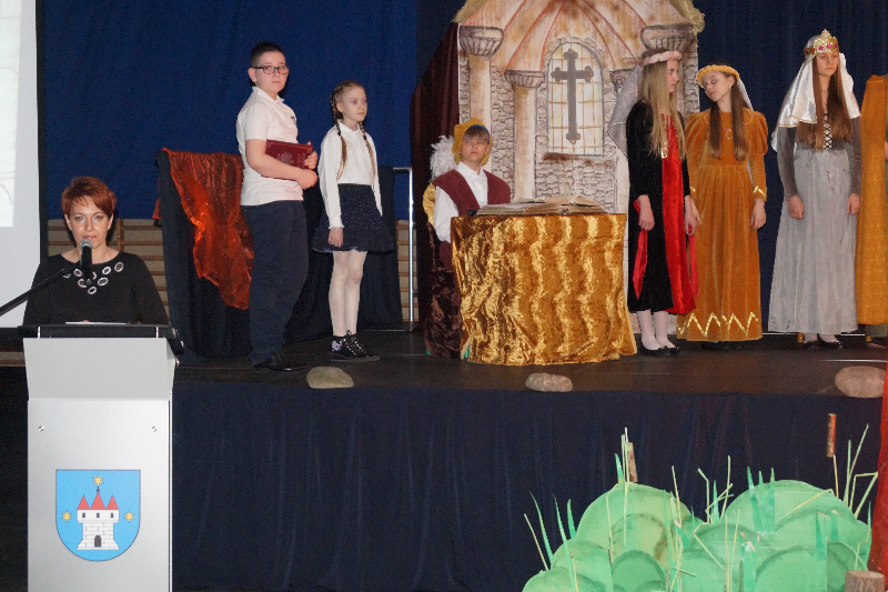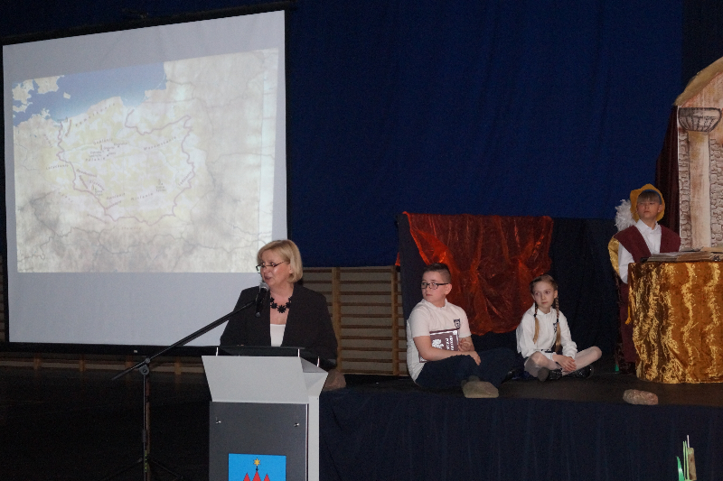 Po części artystycznej głos zabrała wicedyrektor szkoły, pani Małgorzata Hajdziony, która w kilku słowach przedstawiła ogromną rolę religii chrześcijańskiej w dziejach polskiego państwa i narodu. W swoim przemówieniu nawiązała też do słów Jana Pawła II, patrona ziemi raszkowskiej „Dzieje ojczyzny tworzone są przez każdego jej syna i każdą córkę od tysiąca lat, choćby to był człowiek bezimienny, nieznany…”