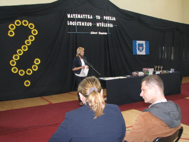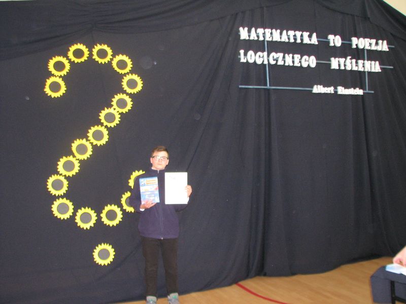 14 maja 2015r. uczeń naszej szkoły z klasy 6 a – Dawid Duczmal wziął udział w finale Powiatowego Konkursu Matematycznego. Tegoroczny konkurs odbył się pod hasłem „Matematyka to poezja logicznego myślenia”. W finale konkursu uczestniczyło 29 uczniów z powiatu. Uczniowie pisali test konkursowy składający się z 10 zadań zamkniętych oraz 5 zadań otwartych. Pierwsze miejsce w konkursie zajęła uczennica z Radłowa, której gratulujemy. Uczeń naszej szkoły – Dawid Duczmal  zajął miejsce  dziesiąte. Otrzymał z rąk pana Piotra Rokickiego – wiceburmistrza Raszkowa dyplom oraz nagrodę książkową. Cieszymy się z osiągnięć Dawida, który został finalistą tego konkursu i życzymy mu dalszych przygód z matematyką. Ucznia do konkursu przygotowała paniRenata Brajer.