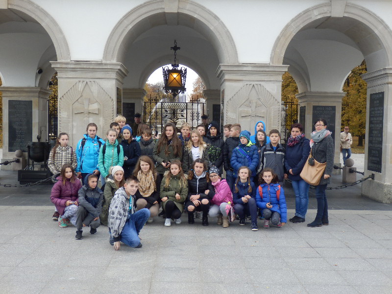W czwartkowy poranek 27 października 58 uczniów klas VI wybrało się na dwudniową wycieczkę przedmiotową do Warszawy. Do stolicy dotarliśmy w godzinach południowych i udaliśmy się do Planetarium na seans w kinie 3D ”Trzeci wymiar życia”. W trakcie pokazu uczniowie przyglądali się gwiazdom i pierścieniom Saturna, obejrzeli też krańce naszej Galaktyki. Kolejnym punktem programu był spacer po Warszawie w towarzystwie przewodniczek, pań Agnieszki i Ani. W tym dniu zwiedziliśmy: Krakowskie Przedmieście, Grób Nieznanego Żołnierza (uczestniczyliśmy w honorowej zmianie warty), Plac Józefa Piłsudskiego, Stare Miasto, Bazylikę archikatedralną św. Jana Chrzciciela i Plac Zamkowy z otaczającym go Zamkiem Królewskim. W godzinach wieczornych dotarliśmy do miejsca noclegu na warszawskich Bielanach.