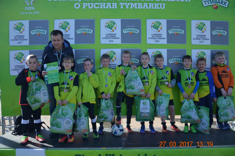 Zespół naszej szkoły już po raz drugi awansował do finału wojewódzkiego XVII edycji ogólnopolskiego turnieju piłki nożnej „Z podwórka na stadion o Puchar Tymbarka”. Nasza drużyna startowała w kategorii wiekowej U10 – czyli klasy III i IV. Po wygranych eliminacjach gminnych oraz powiatowych udało na się kolejny raz awansować do finału wojewódzkiego, który odbył się 27 marca we Wrześni. W finale uczestniczyło kilkadziesiąt chłopców i dziewcząt. W fazie grupowej Szkoła Podstawowa w Raszkowie rozegrała mecze ze szkołą w z Kuźnicy Grabowskiej i szkołą w Długiem Starem. Po świetnej grze oba mecze wygrali nasi mali piłkarze. Zajmując pierwsze miejsce awansowali do 1/8 finału, gdzie przyszło nam się zmierzyć z drużyną UKS Czwórka Kościan. Mecz był bardzo emocjonujący i wyrównany, ale w ostatecznym rozrachunku lepsi okazali się rywale z Kościana i to oni awansowali do dalszej fazy rozgrywek. Turniej ten, jak co roku, stał na bardzo wysokim poziomie i był świetnie zorganizowany. Sam udział w finale to duży sukces i wielkie przeżycie dla małych piłkarzy. Turniej o Puchar Tymbarku jest największa piłkarską imprezą dziecięcą w całej Europie! Bierze w nim udział około 300 tysięcy dziewcząt i chłopców z całek Polski. Miejsce w pierwszej szesnastce najlepszych drużyn naszego województwa jest wielkim osiągnięciem naszego zespołu. Chłopcy, którzy reprezentowali naszą szkołę: