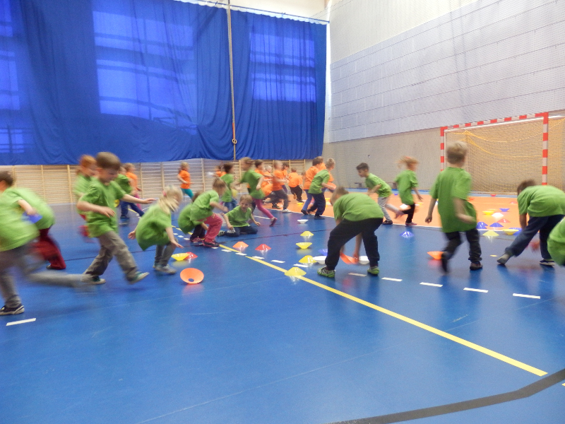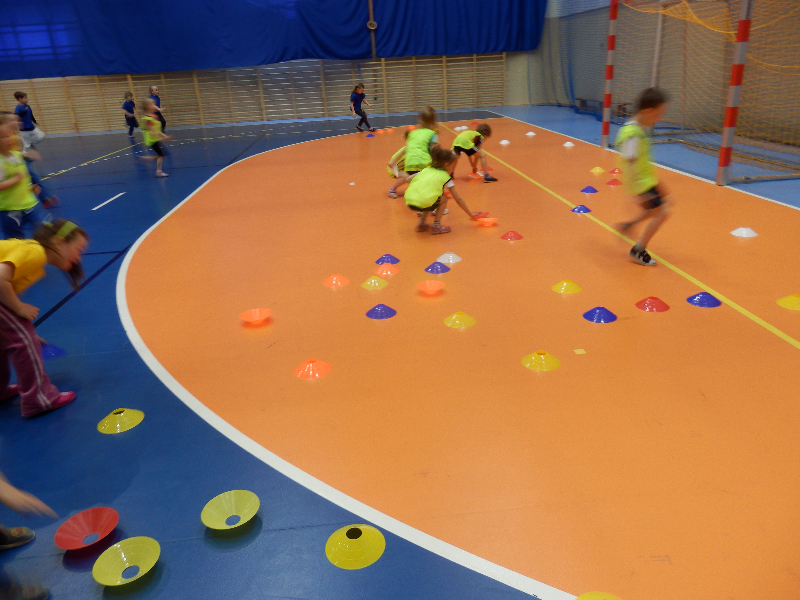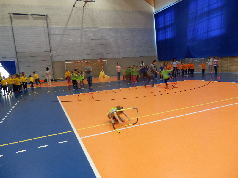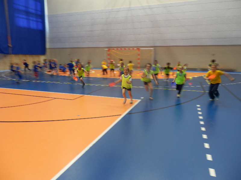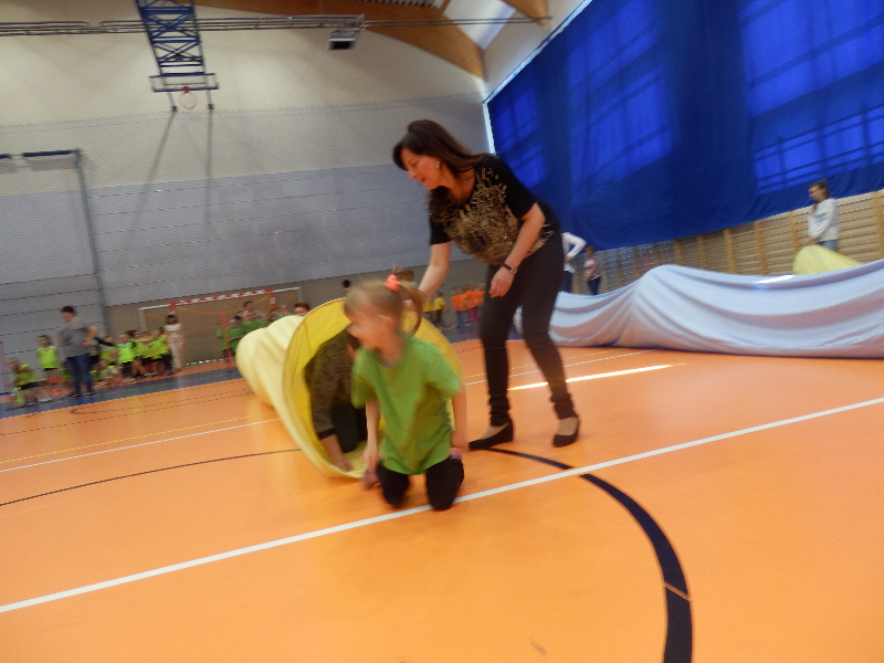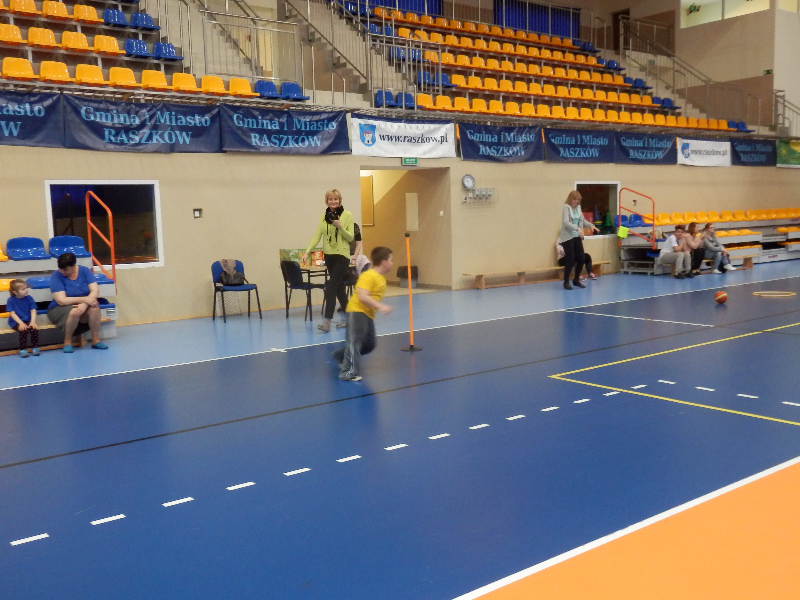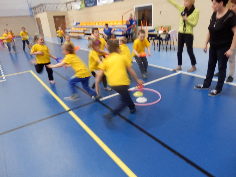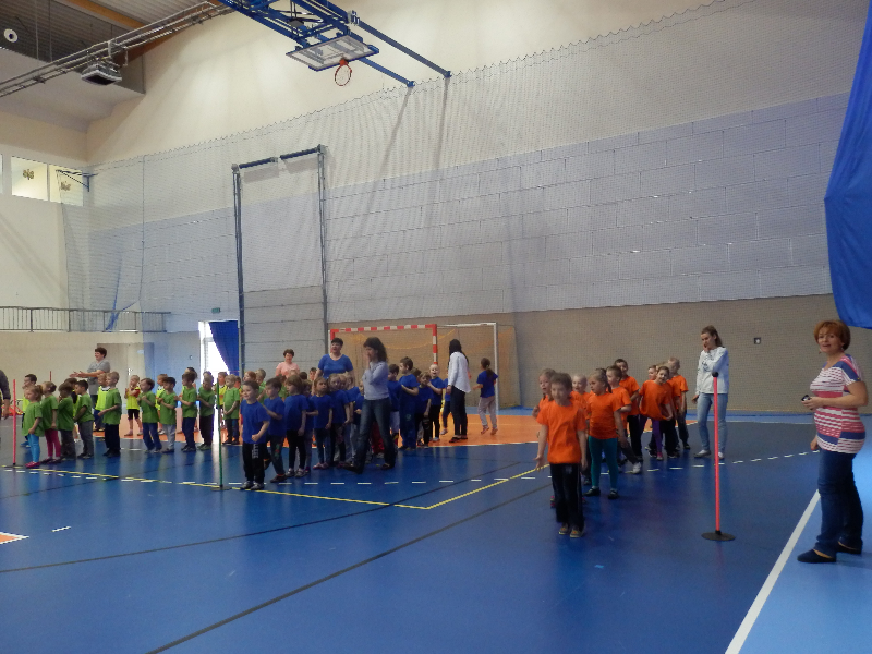 Aby umożliwić adaptację w środowisku szkolnym, w czwartek 23. 04. 2015r., gościliśmy w naszej szkole dzieci, które w roku szkolnym 2015/2016 rozpoczną naukę w klasach pierwszych. Obecnie uczęszczają one do raszkowskiego Przedszkola „Smerfy” oraz do starszej grupy Filli przedszkola w Przybysławicach, a także do oddziału przedszkolnego w naszej szkole. Towarzyszyły im panie wychowawczynie wraz z innymi paniami z przedszkoli oraz panie, które będą wychowawczyniami przyszłych klas I. Były z nami również dzieci z innych przedszkoli. Powitane przez Panią wicedyrektor Alicję Duczmal, w radosnej atmosferze, dzieci wzięły udział w sportowych konkurencjach, torach przeszkód, pomysłowo przygotowanych przez nauczyciela naszej szkoły, Pana Sławomira Krawczyka. Wesoła sportowa rywalizacja odbyła się na hali widowiskowo – sportowej. Podczas spotkania dzieci miały okazję nie tylko pobyć ze sobą i dobrze się bawić, ale także skorzystać ze sportowej bazy szkoły i integrować się w licznej grupie przyszłych pierwszoklasistów.