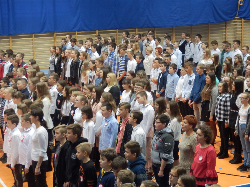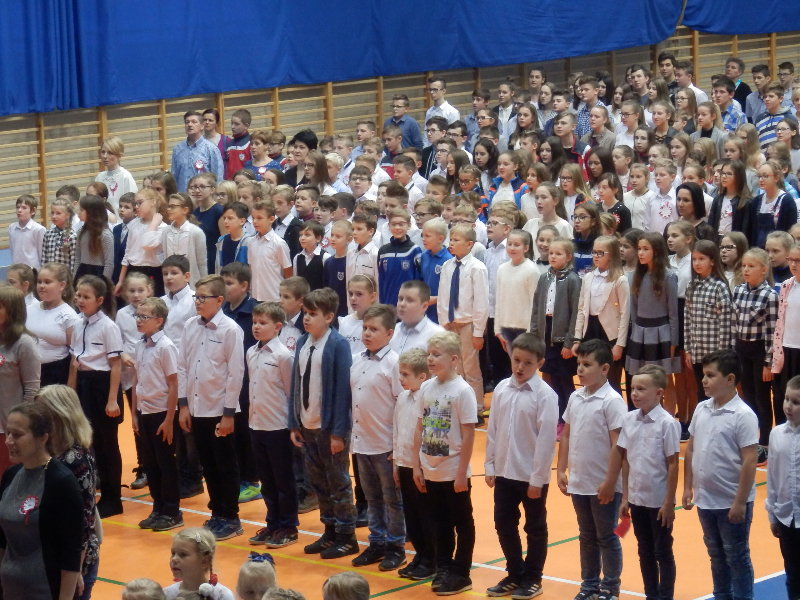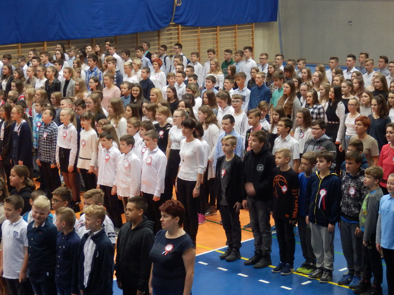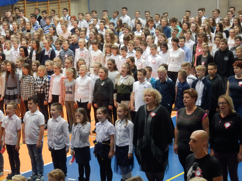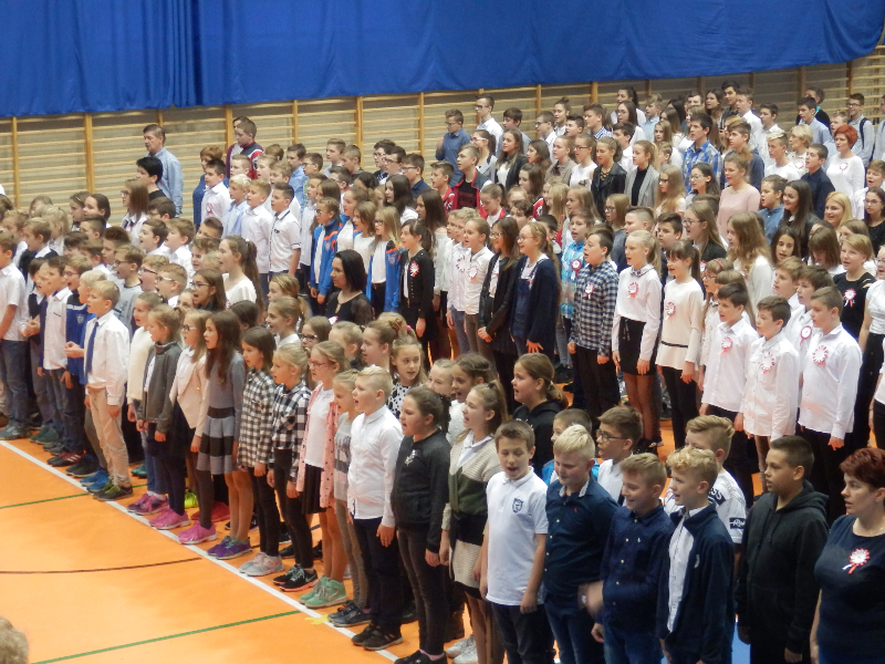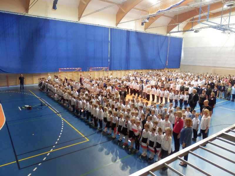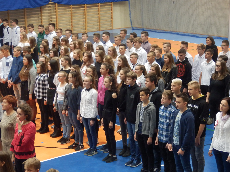 W piątek punktualnie o 11.11 ponad 5 mln uczniów i nauczycieli w całej Polsce odśpiewało „Mazurka Dąbrowskiego”. Do akcji śpiewania hymnu włączyli się oczywiście uczniowie naszej szkoły.  Pomysł bicia rekordu w śpiewaniu hymnu to akcja działającej przy MEN Rady Dzieci i Młodzieży. Jej przewodniczący Piotr Wasilewski komentował:  Cieszę się, że akcja spotkała się z takim zainteresowaniem. Jeszcze nigdy tak wielu Polaków naraz nie zaśpiewało hymnu.