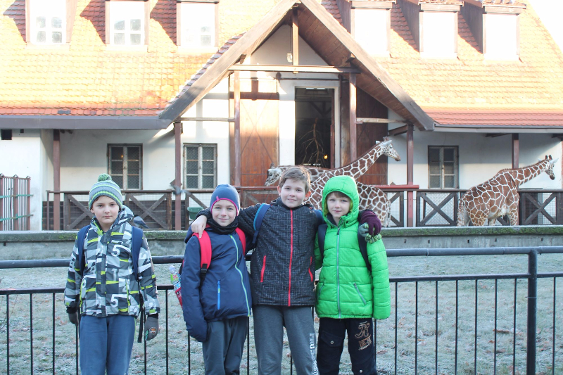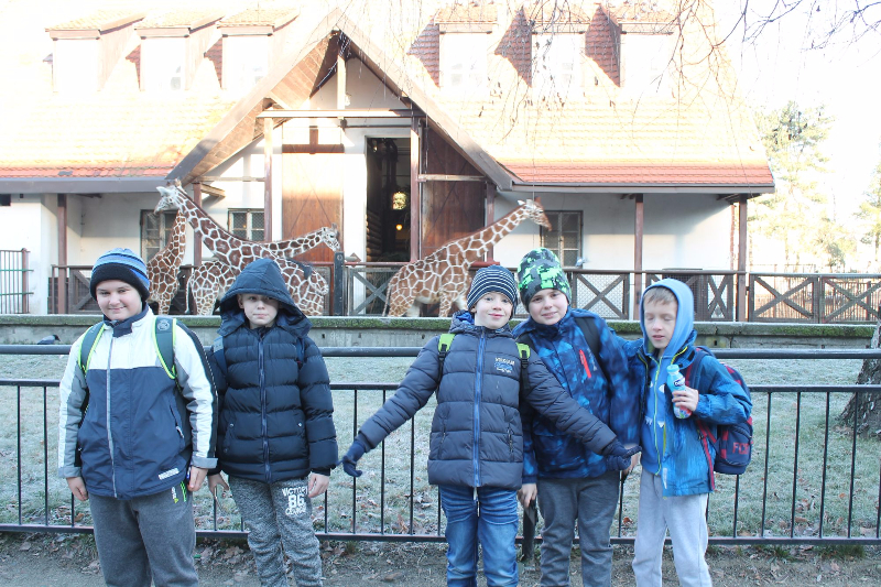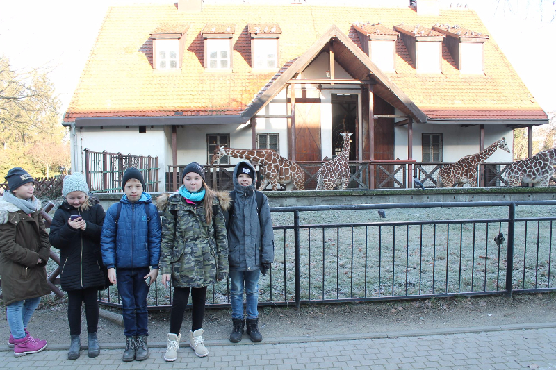 13 grudnia wszystkie klasy 4 wybrały się do ZOO we Wrocławiu, a właściwie do Afrykarium. Na wycieczkę jechaliśmy autobusem. Gdy dojechaliśmy, szybko kupiliśmy bilety i poszliśmy oglądać zwierzęta zimową porą. Na początku odwiedziliśmy pawiany, a potem w trzech grupach poszliśmy na zajęcia edukacyjne. Dwie grupy uczestniczyły w lekcji o małpach, a moja grupa skierowała się do budynku, w którym mieściły się gady. Tam dostaliśmy kartę pracy, w której musieliśmy odpowiedzieć na pytania związane z poznanymi gadami. Po wyjściu z zajęć edukacyjnych poszliśmy do Afrykarium, na co czekaliśmy cały czas. Po drodze widzieliśmy żyrafy, niedźwiedzie, wilki. I nareszcie weszliśmy do Afrykarium. W oszklonych ścianach i suficie widzieliśmy dużo różnych ryb, rekinów oraz żółwie i płaszczki. Było pięknie. Widzieliśmy też hipopotama z małym hipciem – ogromne zwierzęta. W Afrykarium pływały też inne morskie ssaki. W całym Afrykarium panował klimat jak w Afryce, było wilgotno i ciepło. Rosło też wiele ogromnych, egzotycznych roślin. Potem odwiedziliśmy sklep z pamiątkami, gdzie każdy mógł zakupić ciekawy souvenir. Odwiedziliśmy również restaurację, aby coś zjeść.