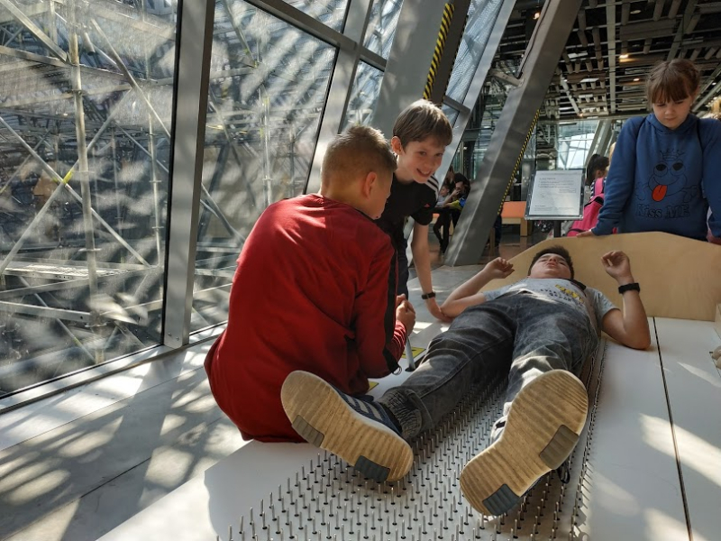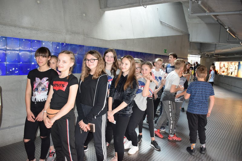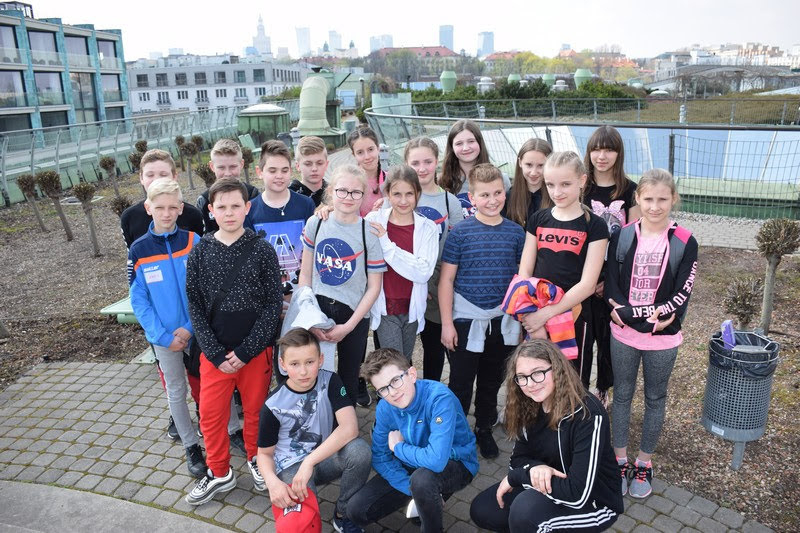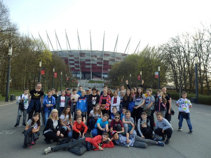 54 uczniów klas VI wybrało się w dniach 8-9 kwietnia na dwudniową wycieczkę przedmiotową do Warszawy. Do stolicy dotarliśmy w godzinach porannych i udaliśmy się na zielone tarasy Biblioteki Uniwersytetu Warszawskiego, skąd podziwialiśmy panoramę miasta. Kolejnym punktem wycieczki była wizyta w Centrum Nauki Kopernik, gdzie uczniowie mieli możliwość samodzielnego eksperymentowania. Różnorodność eksponatów zgromadzonych na kilku tysiącach metrów kwadratowych stworzyła przestrzeń, w której każdy ze zwiedzających miał szansę dokonać ciekawego odkrycia. Braliśmy również udział w seansie w kinie 3D pt. ”Astronauta” w Planetarium „Niebo Kopernika”. W trakcie pokazu uczniowie dowiedzieli się jak wyglądają przygotowania do pobytu na stacji kosmicznej, jak trudnym i wyczerpującym doświadczeniom są poddawani astronauci, zanim wyruszą na wyprawę życia. Następnie udaliśmy się na Stadion Narodowy, który jest miejscem najlepszych i największych wydarzeń sportowych, rozrywkowych i biznesowych w Polsce.