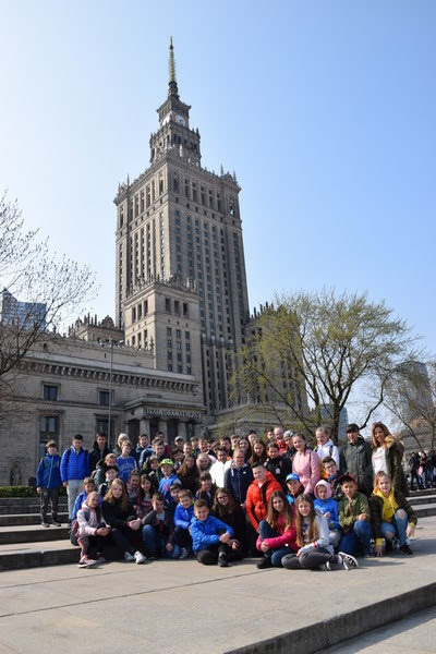 Drugi dzień był również pełen turystycznych atrakcji. Zaczęliśmy zwiedzanie od spaceru po warszawskiej Starówce. Zobaczyliśmy: Krakowskie Przedmieście, Grób Nieznanego Żołnierza (uczestniczyliśmy w honorowej zmianie warty), Plac Józefa Piłsudskiego, Stare Miasto, Bazylikę archikatedralną św. Jana Chrzciciela i Plac Zamkowy z otaczającym go Zamkiem Królewskim. Ostatnim punktem wycieczki było zwiedzanie Pałacu Kultury i Nauki, który jest najwyższym budynkiem w Polsce. Wszyscy byli zachwyceni widokiem z tarasu widokowego na 30 piętrze.