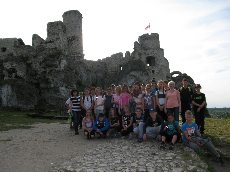 Trzydziestu uczniów z klas 6a i 6c wyjechało na dwudniową wycieczkę w Jurę Krakowsko – Częstochowską, w dniach 13-14 czerwca 2016 roku. Pierwszy dzień rozpoczął się od spaceru po Pustyni Błędowskiej. Następnie udaliśmy się do Ogrodzieńca, gdzie zwiedziliśmy przedzamcze i przepiękny zamek. Drugi dzień wycieczki rozpoczął się od spaceru po Skałkach Rzędkowickich oraz wizyta w Centrum Dziedzictwa Przyrodniczego i Kulturowego Jury z wejściem do Jaskini Głębokiej. Kolejnym punktem dnia był spacer od ruin zamku Mirów do zamku Bobolice. Ostatnim punktem wycieczki było zobaczenie źródła rzeki Warty w Zawierciu – Kromołowie. Uczniowie pełni wrażeń, zadowoleni i z miłymi wspomnieniami wrócili do domu. Opiekę nad uczniami sprawowały panie Małgorzata Hajdziony, Renata Brajer i Justyna Żurkiewicz.
