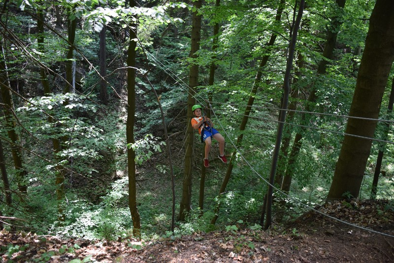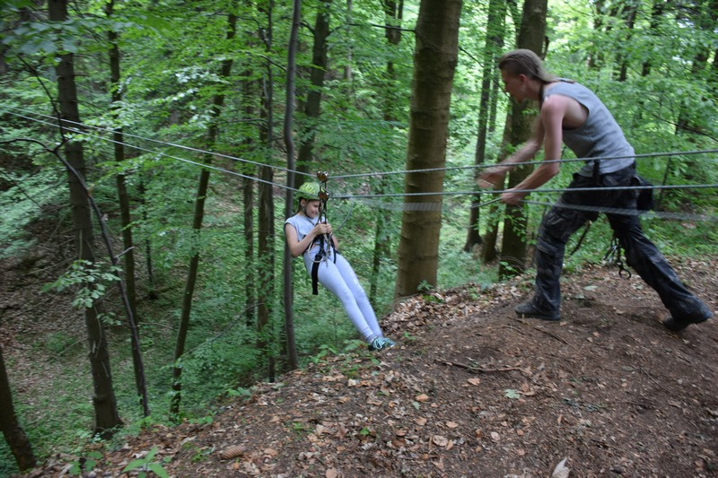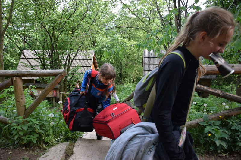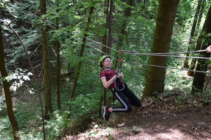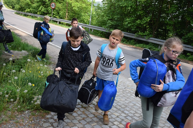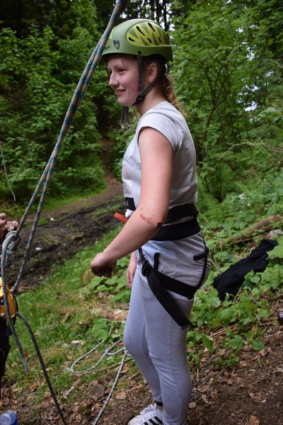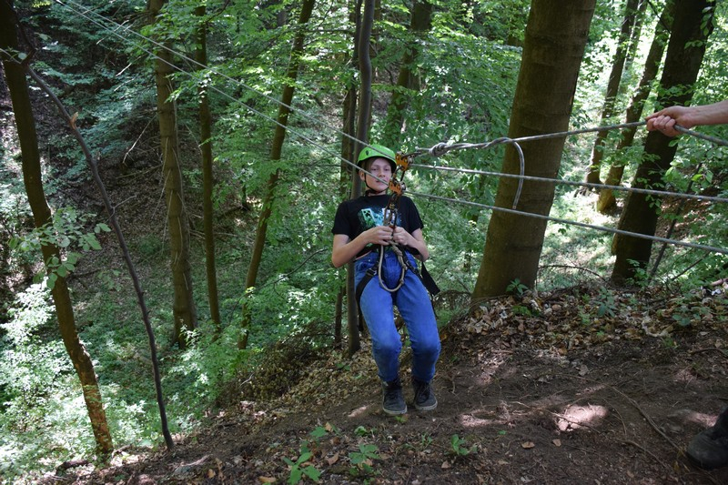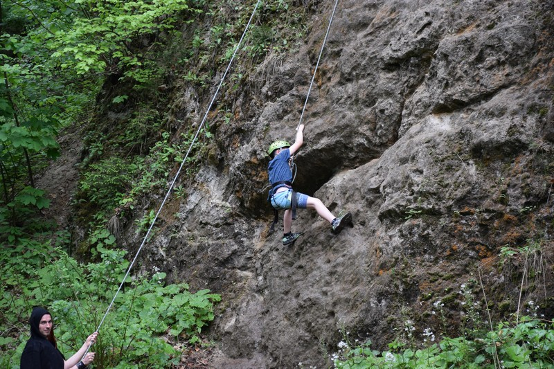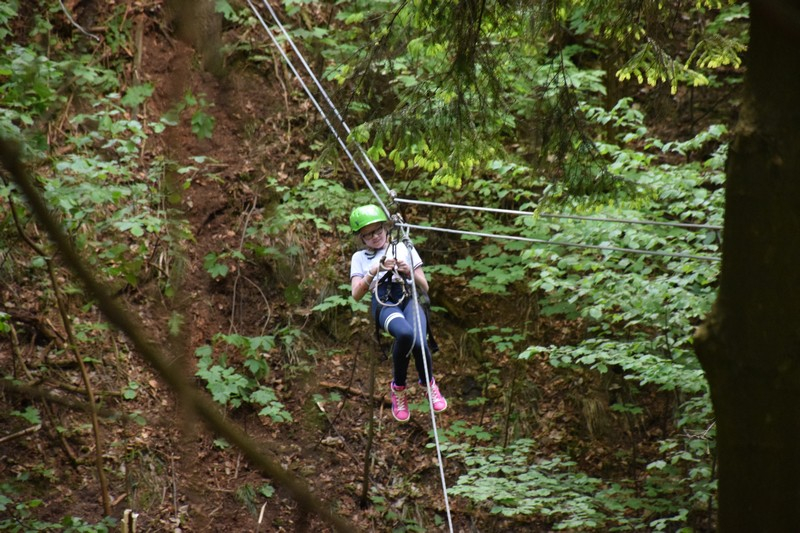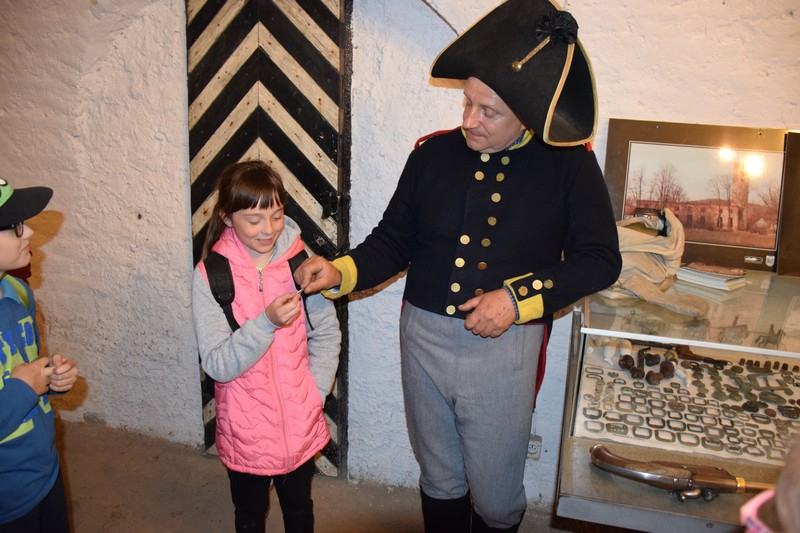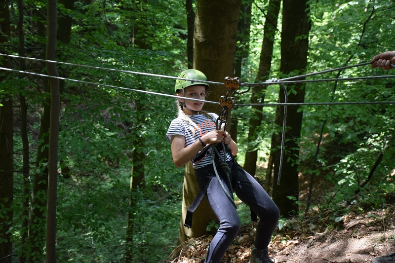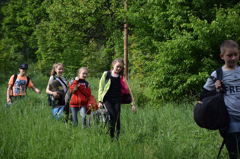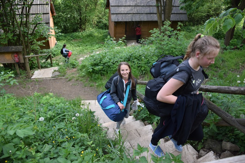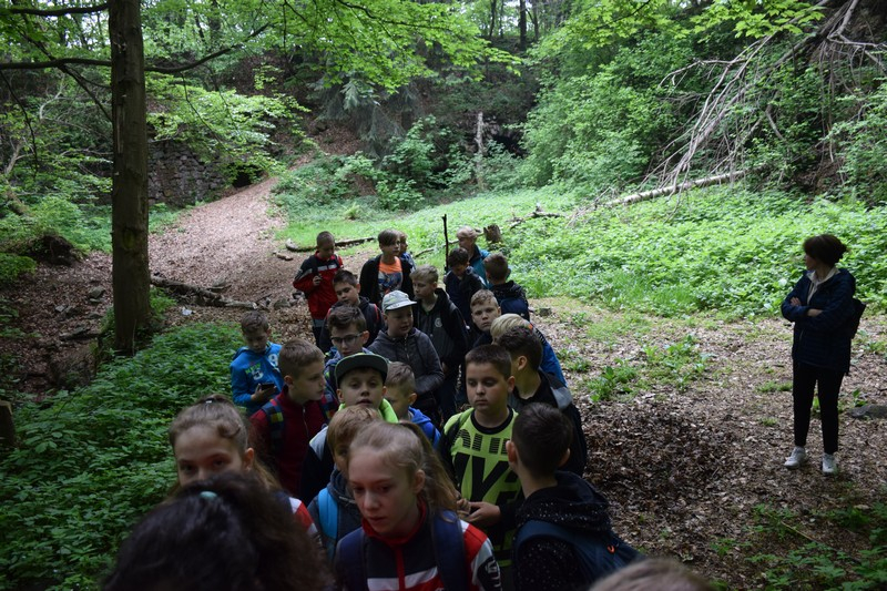 Kolejna wycieczkowa atrakcja to nocne gry terenowe. Na drugi dzień, 11 maja,  odbyła się bitwa łuczników, tu dopiero były emocje. Drużyny trzyosobowe w specjalnych, ochronnych ubraniach strzelały do siebie z łuków, które na strzałach zamiast grotu miały gumowe płaskie nakładki.  Po wyczerpującej bitwie poszliśmy na długi spacer zwiedzić  ruiny twierdzy. Przed wyjazdem do domu smażyliśmy kiełbaski na wcześniej przygotowanym ognisku. I tak zakończyła się nasza wycieczka, która dostarczyła nam wielu  wiadomości i emocji z „ dreszczykiem”.