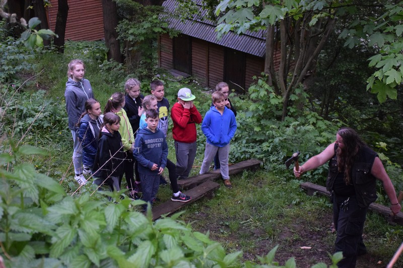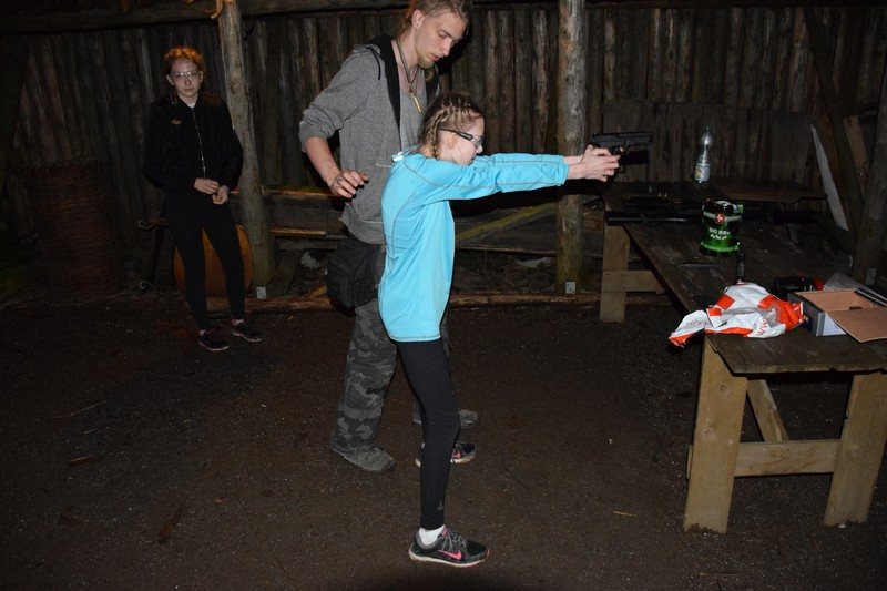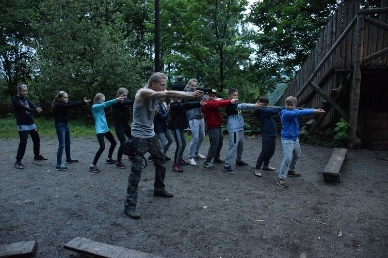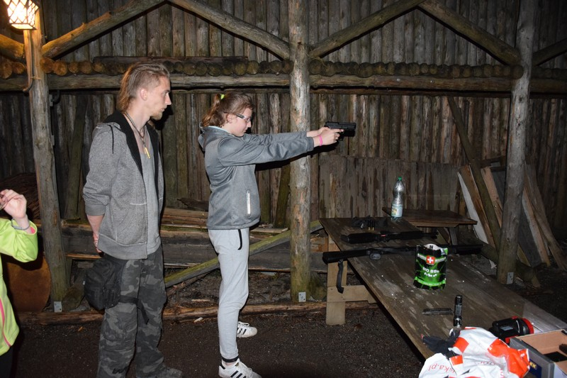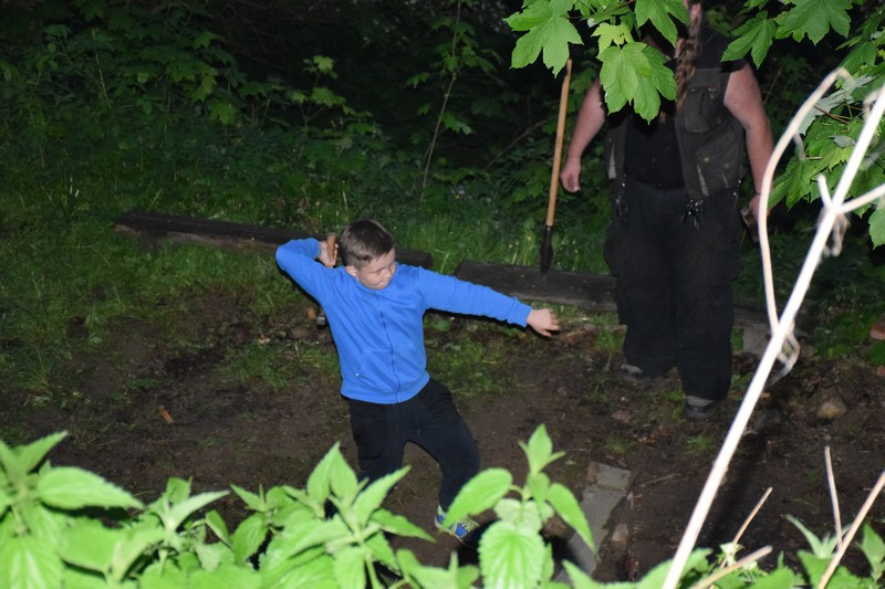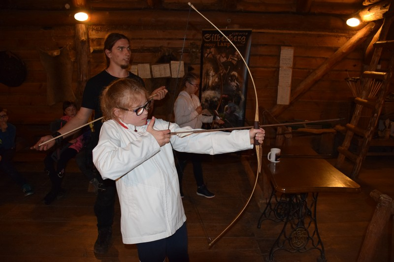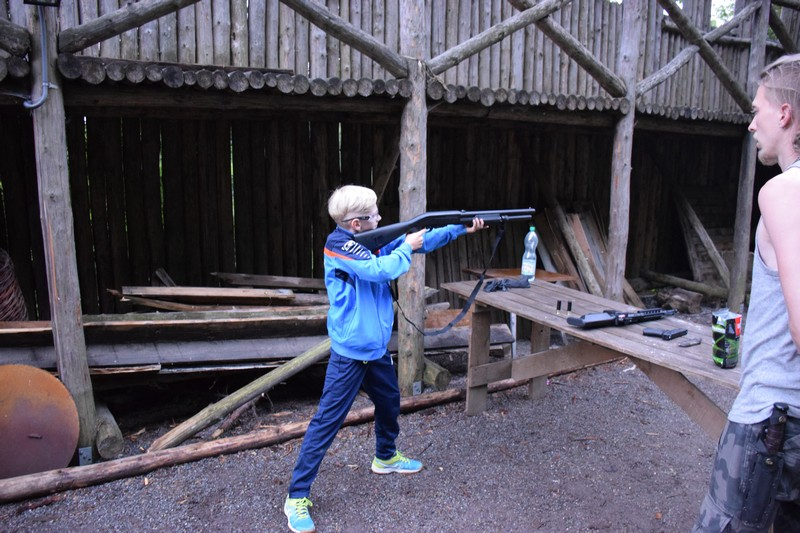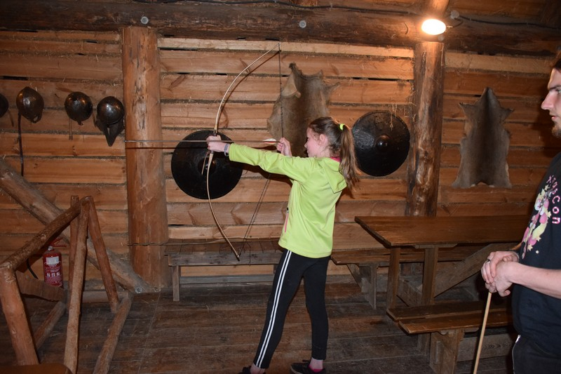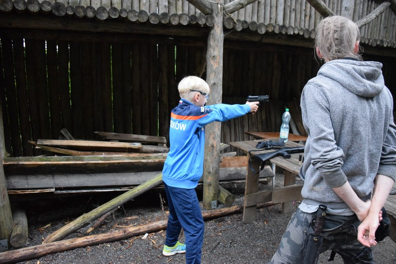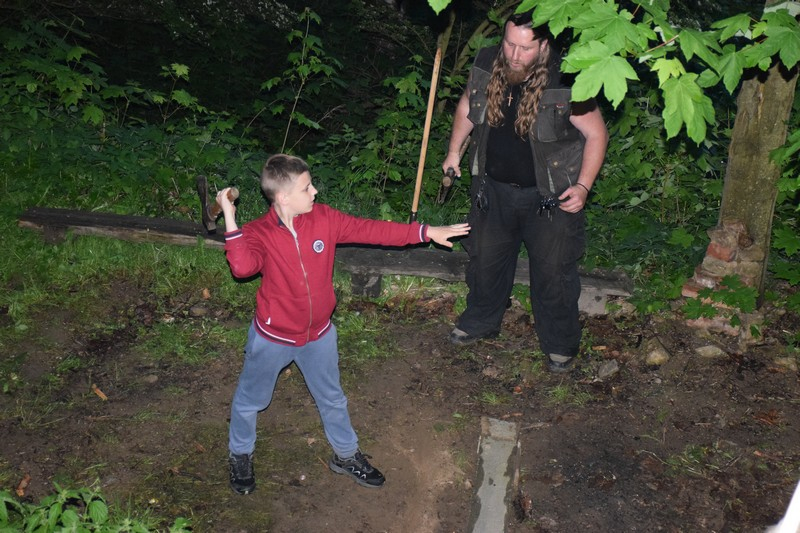 Wieczorem czekało na nas strzelanie z łuku, rzut toporkiem i włócznią oraz strzelanie z replik broni palnej. Zadania wcale nie były łatwe, trzeba było wykazać się dużą zręcznością i precyzją.