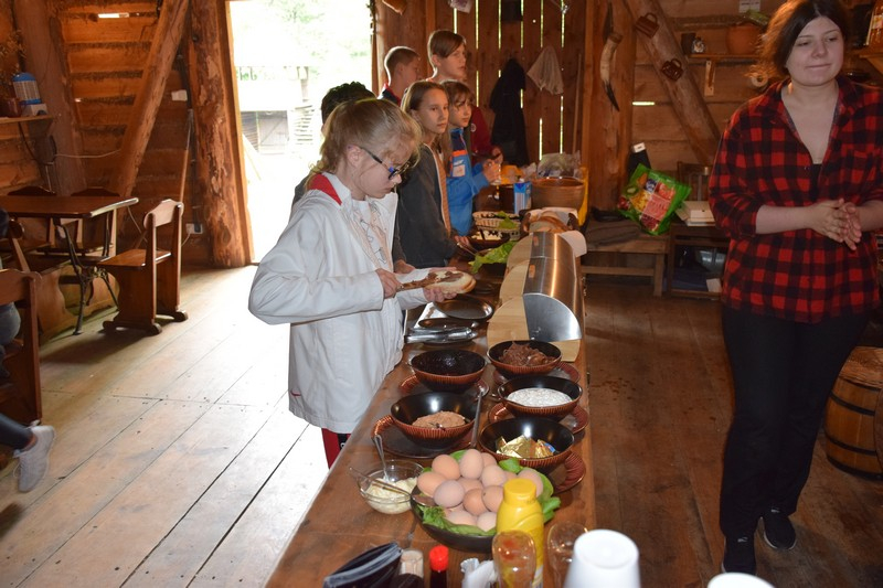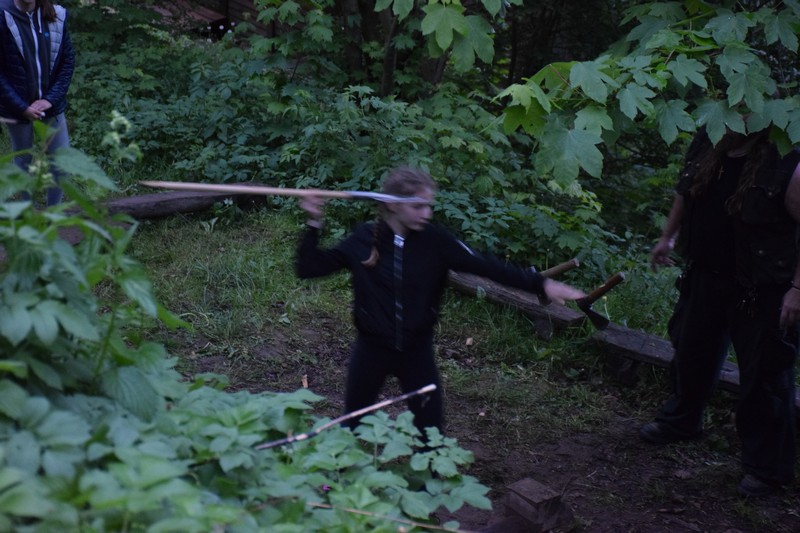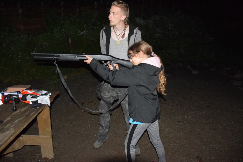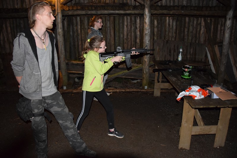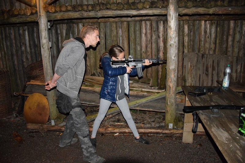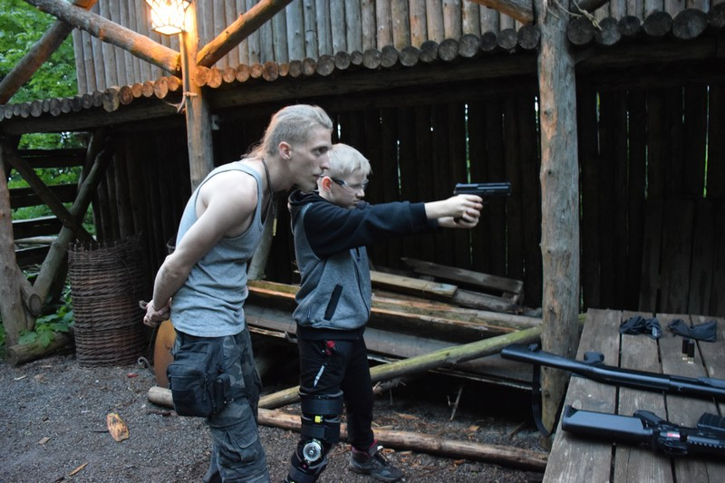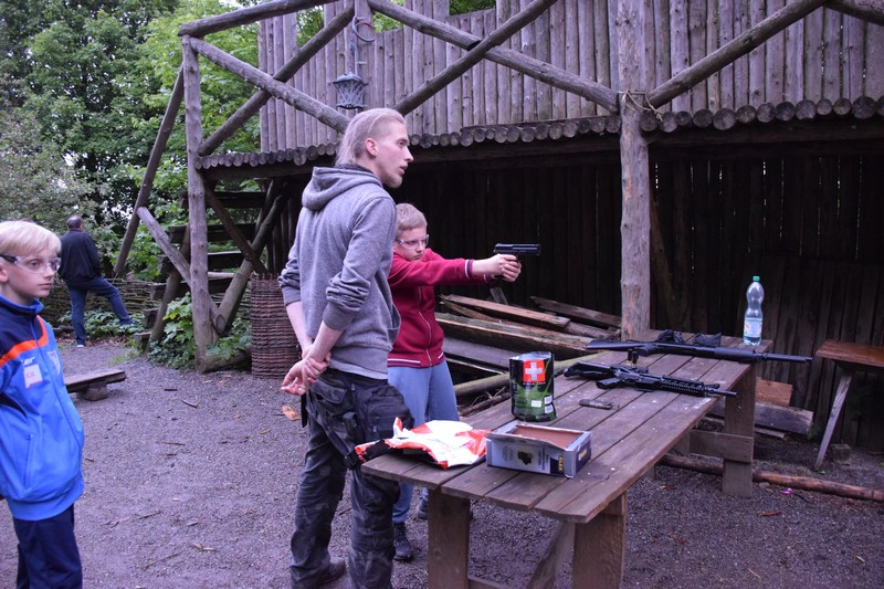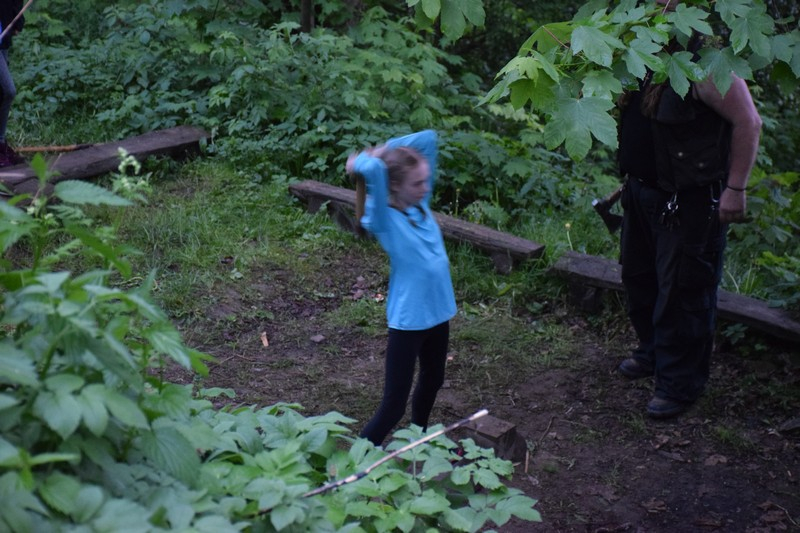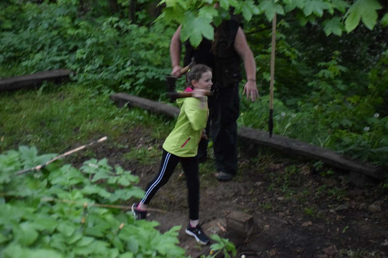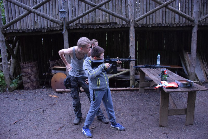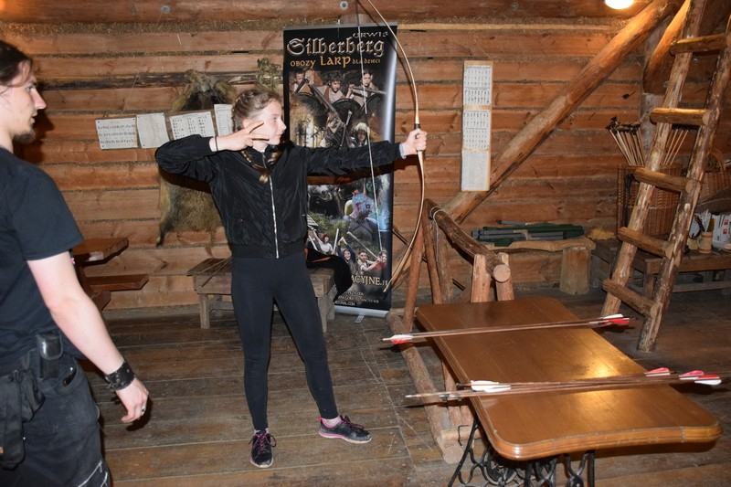 Wieczorem czekało na nas strzelanie z łuku, rzut toporkiem i włócznią oraz strzelanie z replik broni palnej. Zadania wcale nie były łatwe, trzeba było wykazać się dużą zręcznością i precyzją.