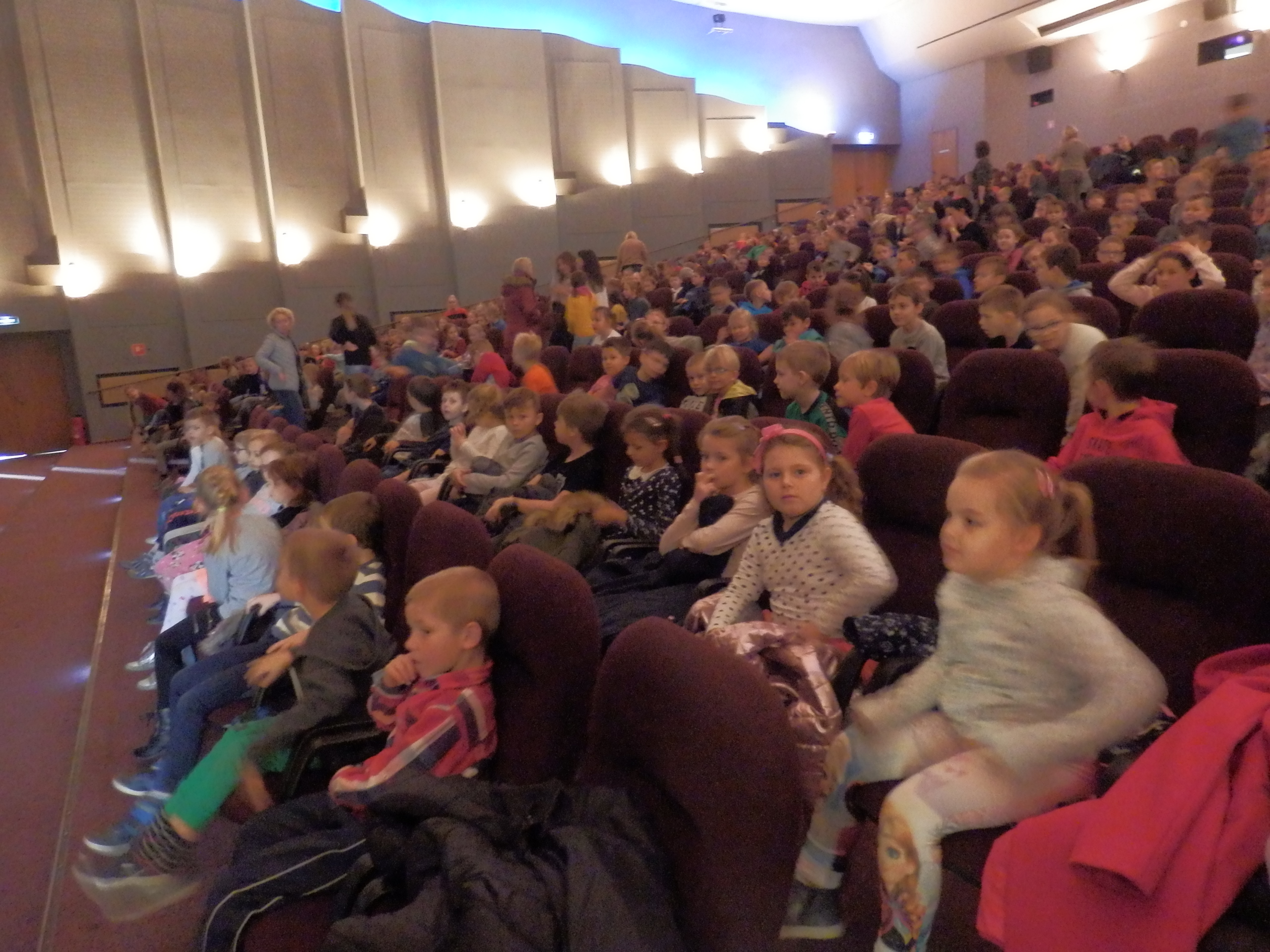 6 listopada w środę uczniowie klas 0–III wyjechali do kina Komeda w Ostrowie Wielkopolskim na przedstawienie pt. „Piotruś i wilk” przygotowane przez aktorów Teatru Artenes z Wrocławia. Spektakl oparty został na baśni Sergiusza Prokofiewa o tym samym tytule. Opowiada o przygodach chłopca Piotrusia i grupy jego przyjaciół, w tym Kaczuszki i Kotka. Dzieci żyją nieopodal lasu, postanawiają więc wyjść na wycieczkę. Tam urządzają zabawę, w czasie której niespodziewanie pojawia się nieznany nikomu gość – Wilk. Pomimo zdziwienia, gościnni przyjaciele życzliwie zapraszają go do swojego grona, ufając miłym słowom i pozytywnym deklaracjom. Po wspólnej zabawie wszyscy kładą się spać w leśnej chatce. Tymczasem Wilk ujawnia niecne zamiary i przywołuje resztę swojego stada. Szczęśliwie Piotruś budzi się i podsłuchuje ich rozmowę, po czym kryje się wraz z przyjaciółmi przed watahą. Pomimo zagrożenia, zaradny chłopiec wymyśla sposób na pojmanie Wilka. Z nastaniem dnia plan udaje się wspólnymi siłami zrealizować, co sprawia, że reszta stada, pozbawiona swojego przywódcy, ucieka. Pojmany Wilk musi się wytłumaczyć, dlaczego, pomimo serdecznego przyjęcia, okłamał i chciał skrzywdzić dzieci. Rozumie swój błąd i obiecuje poprawę. Chciał zaszkodzić radosnej gromadce, gdyż pozazdrościł im przyjacielskości, życzliwości i szczerej zabawy. W finale radość przyjaciół ze wspólnego sukcesu, podkreślenie wartości dobra, przyjaźni i wzajemnego zaufania. Spektakl promował takie wartości jak: odwaga, praca zespołowa, zaradność i niepoddawanie się w trudnych chwilach. W warstwie muzycznej widowiska pojawiają się odniesienia brzmienia instrumentów klasycznych do charakterystycznych dźwięków wydawanych przez zwierzęta. Wyjazd na spektakl zorganizowała pani Anna Frąszczak.