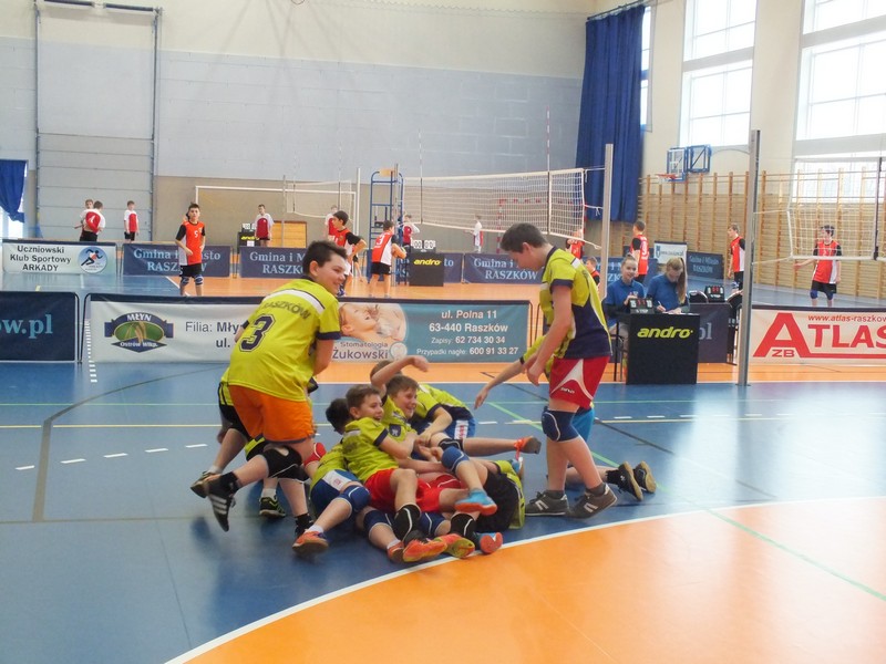 26.02.2016 w Szkole Podstawowej w Raszkowie nauczyciele wychowania fizycznego Justyna i Adam Dutkowscy zorganizowali Mistrzostwa Powiatu Ostrowskiego w siatkówce chłopców. Turniej zorganizowano we współpracy z Ostrowskim Szkolnym Związkiem Sportowym. Otwarcia turnieju dokonała pani dyrektor SP Raszków mgr Aleksandra Krawczyk. Turniej był bardzo zacięty. Grano do dwóch zwycięskich setów, ale dużo meczy kończyło się wynikami 2-1, czyli rozgrywano tie-break. Poziom zespołów był bardzo wyrównany i każdy mógł zostać Mistrzem Powiatu. Najlepiej w turnieju, mimo trzech trzysetowych meczy zaprezentowali się uczniowie SP Raszków przygotowani przez Justynę i Adama Dutkowskich, którzy po ambitnej walce zajęli pierwsze miejsce, zostali Mistrzami Powiatu i uzyskali awans do Mistrzostw Rejonu Kaliskiego. Należy dodać, że chłopcy obronili tytuł zdobyty rok temu!!!!